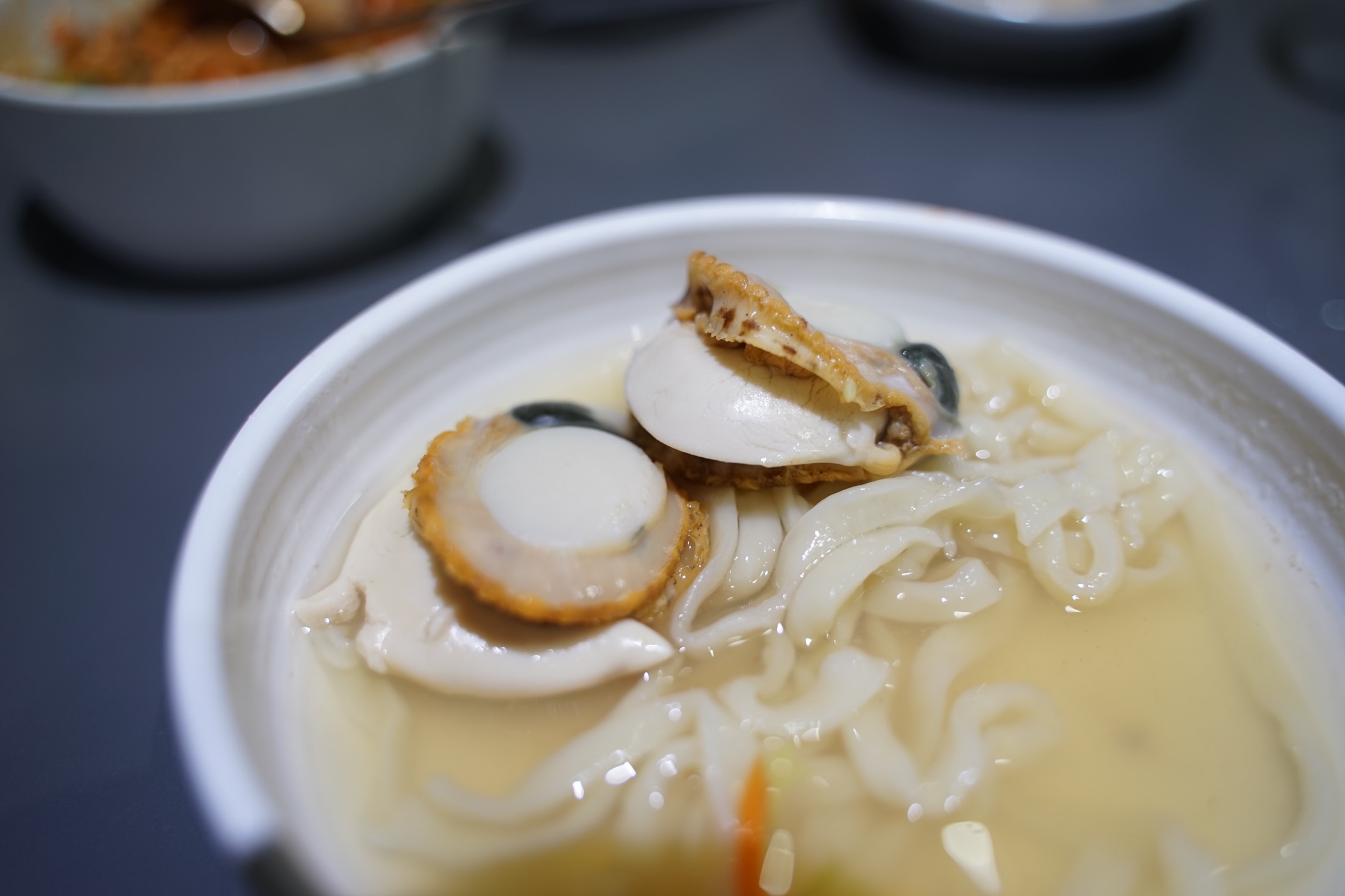 드디어 메인인 가리비 칼국수가 나왔습니다.
