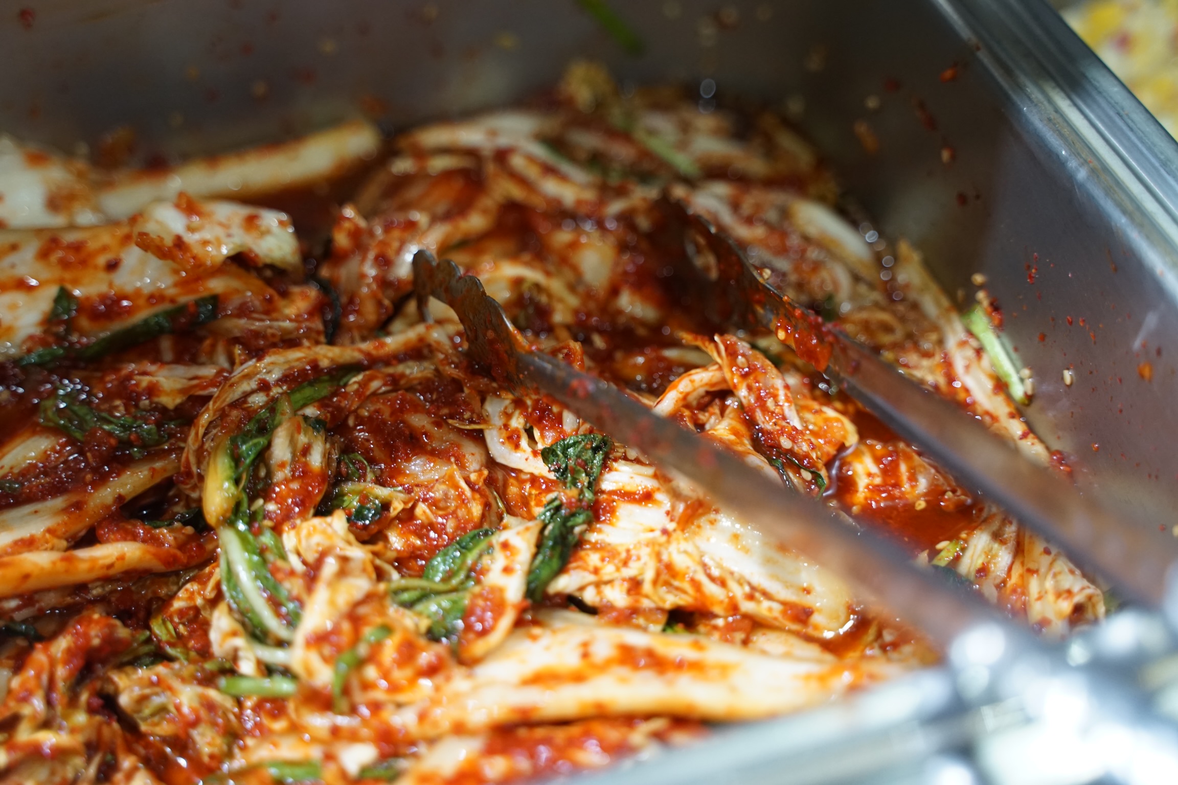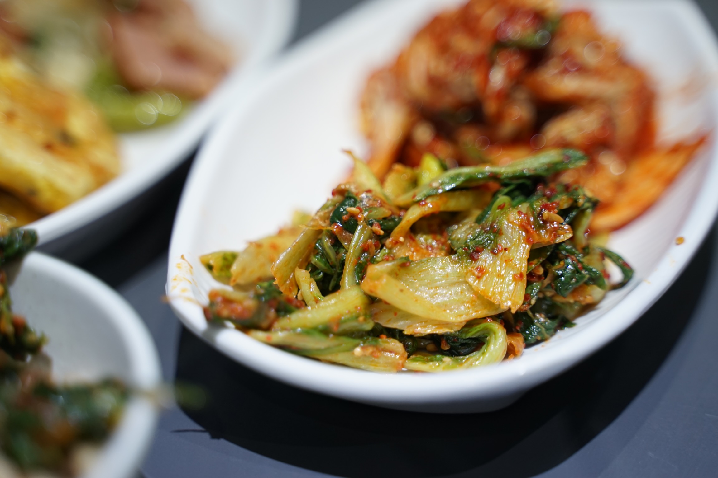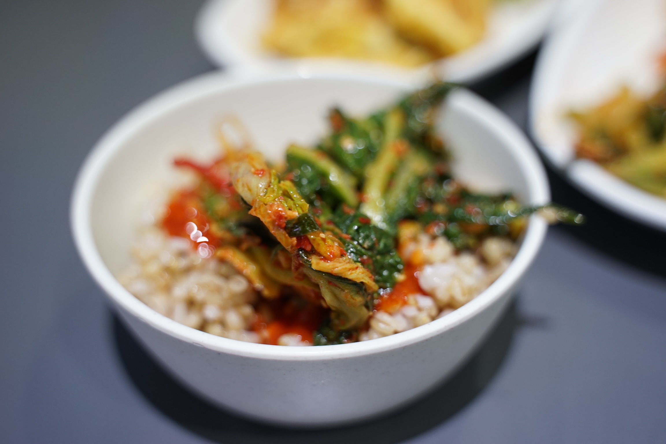 보리밥과 떡볶이, 김치 등이 있는데 와 일단 김치 비주얼이 장난 아닙니다.