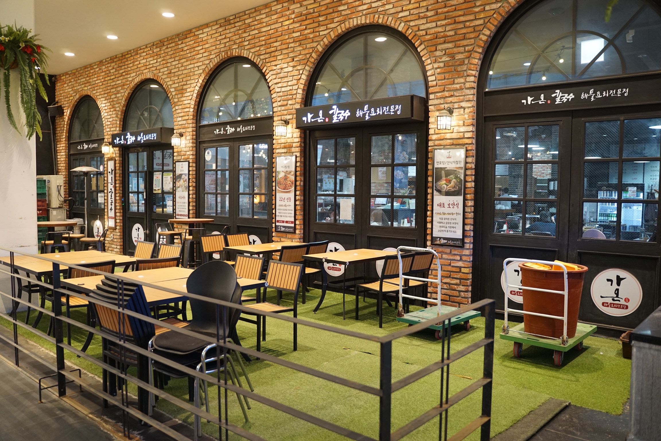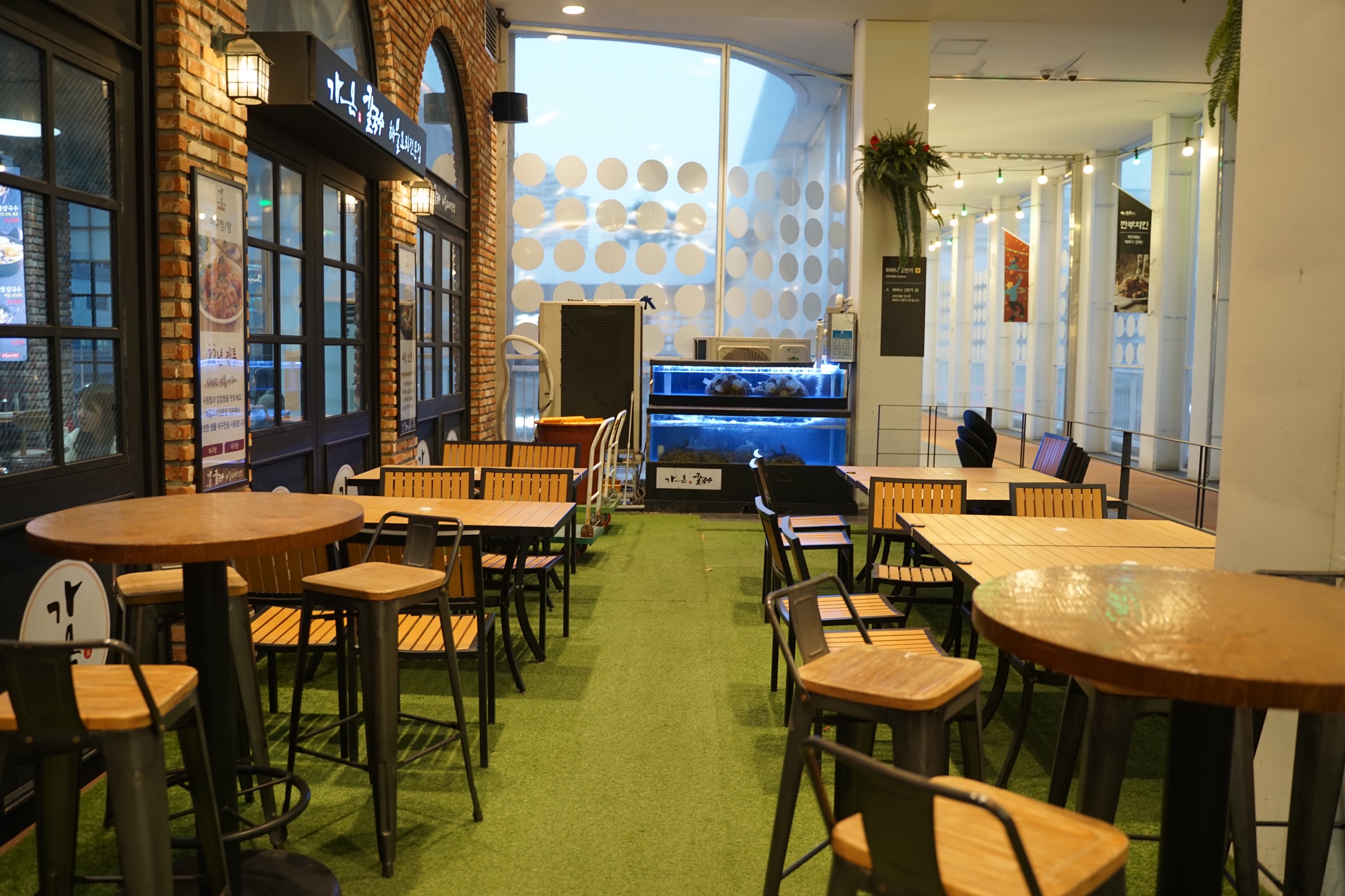 밖에도 자리가 있는데 굳이 밖에 앉을 일은 없을 것 같기는 합니다.
