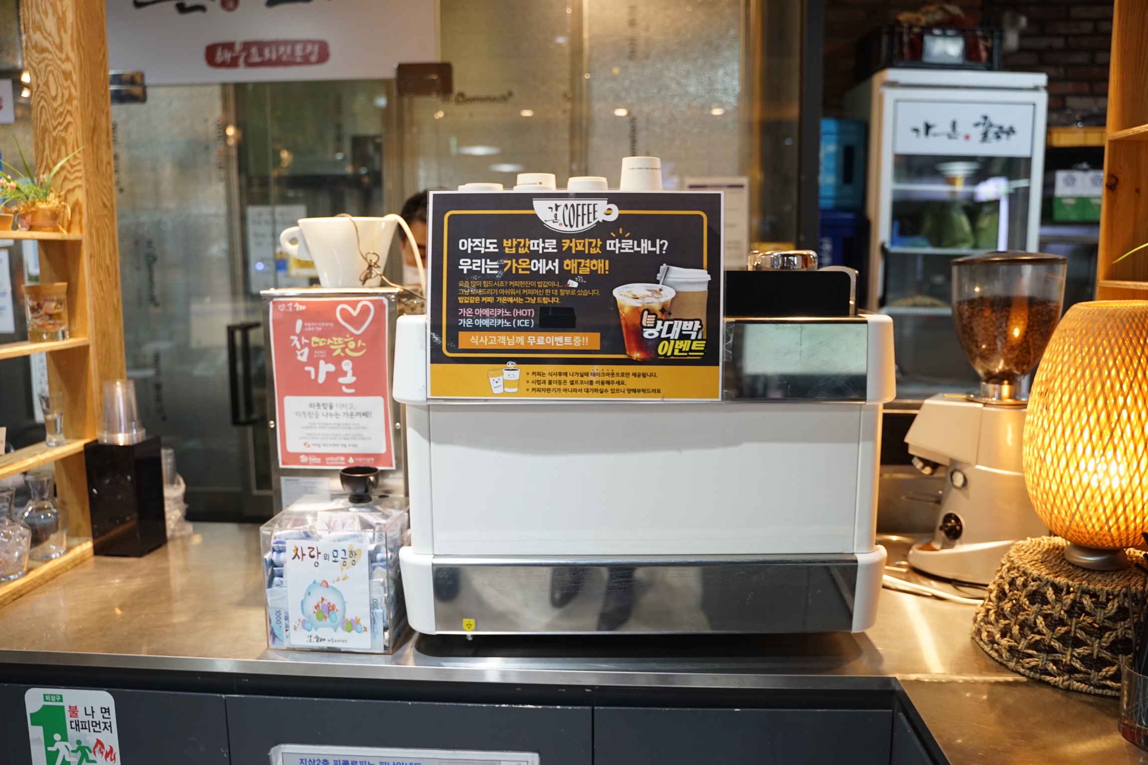 계산하고보니 이런 게 있더라구요 !!! 카페에 있을 법한 엄청난 커피머신으로 사장님께서 직접 아메리카노를 내려주십니다.