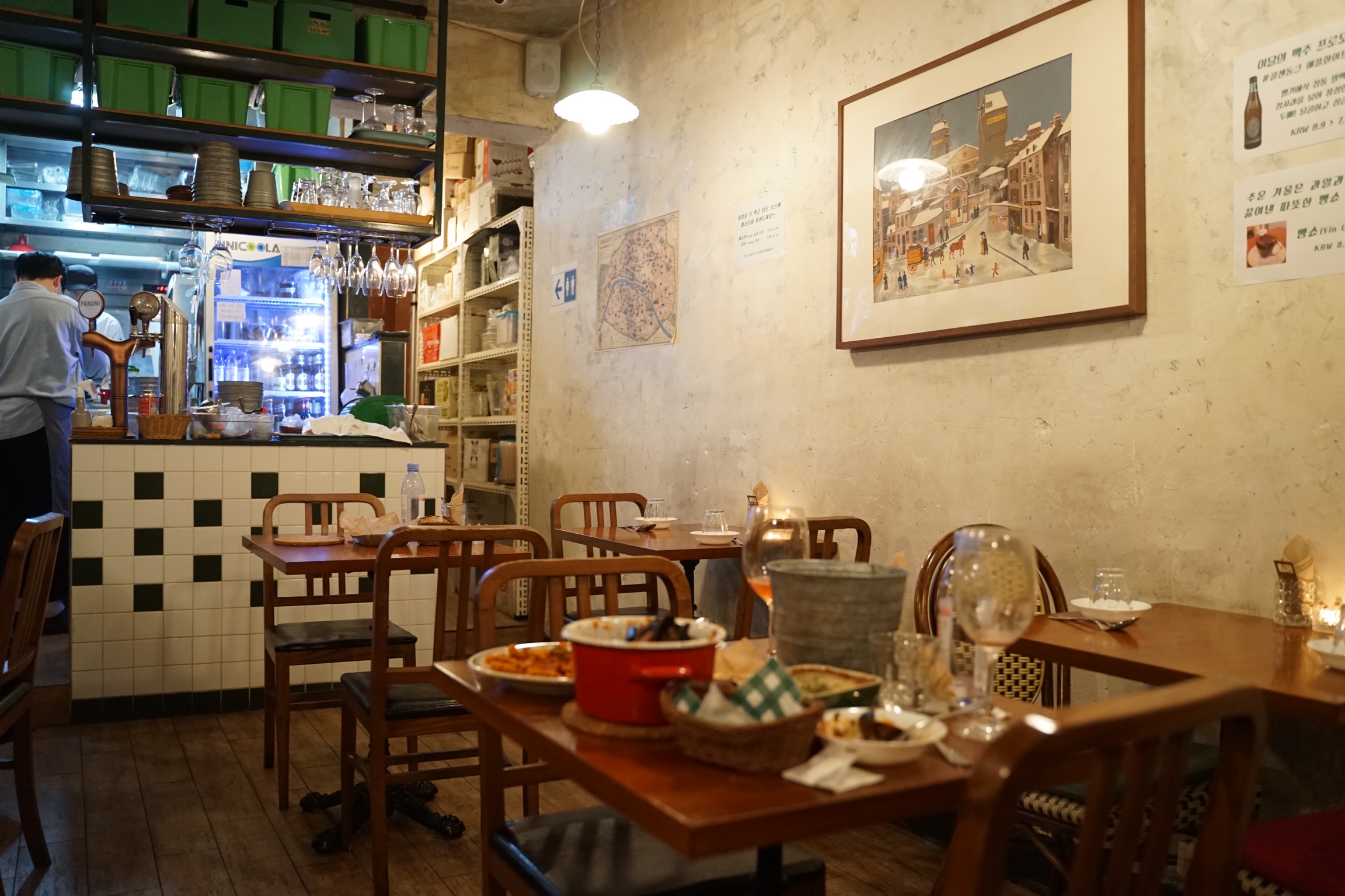 테이블이 한 6개 정도? 들어가는 규모인데, 테이블 간격이 좁은 편은 아니어서 같이 간 사람과 얘기하기에 나쁘지 않습니다.