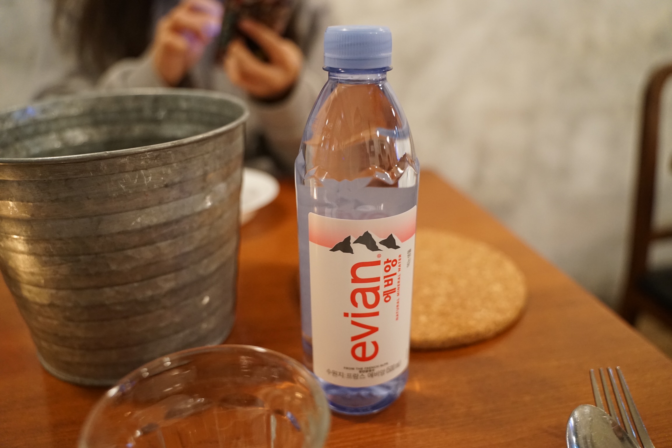 그냥 물을 줘도 될텐데 그래도 에비앙을 주니 좀 더 대접받는 느낌? 아 괜찮은 식당에 왔구나 하는 느낌이 듭니다. 이게 바로 브랜드의 힘 ...