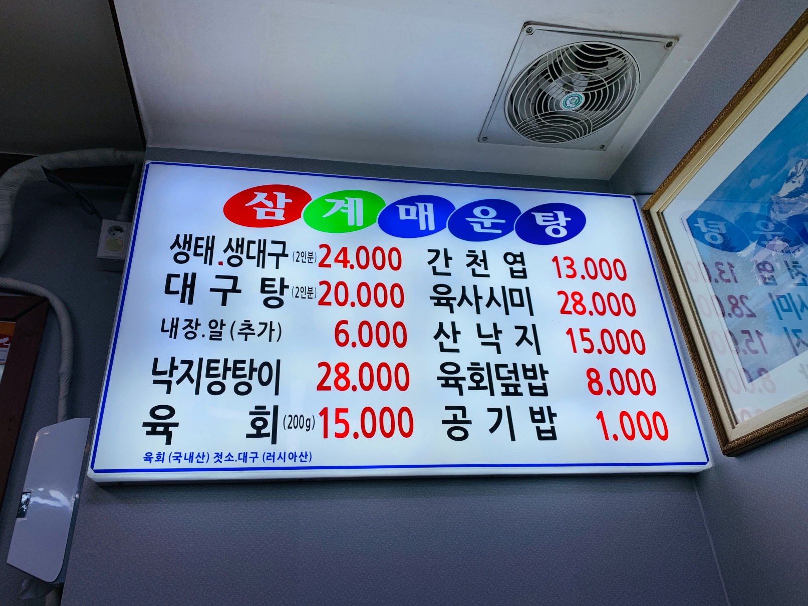 아무래도 냉동에 비해 생대구탕은 가격이 조금 더 비쌉니다. 그치만 여기까지 왔는데 4000원 더 비싼 거야 뭐 ㅎㅎ 당연히 생대구탕으로 먹어야죠!