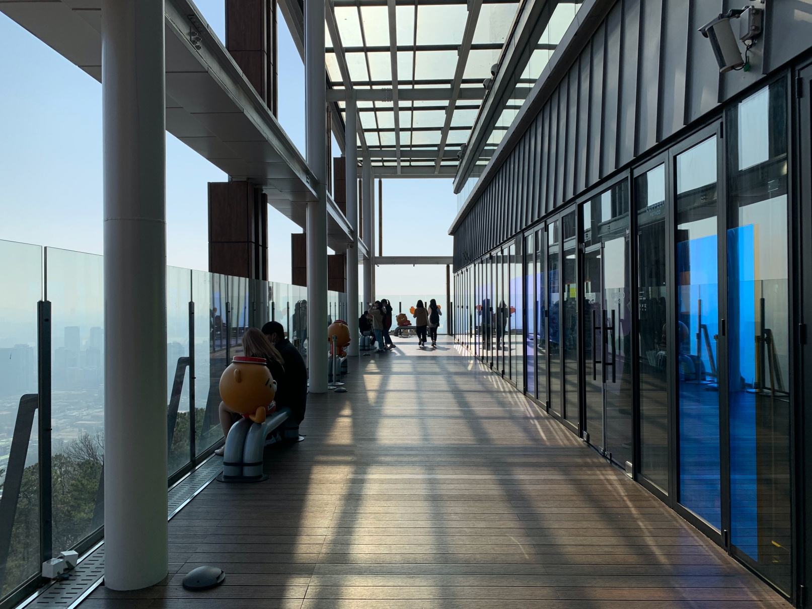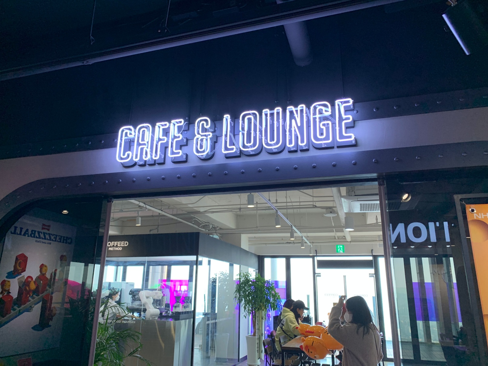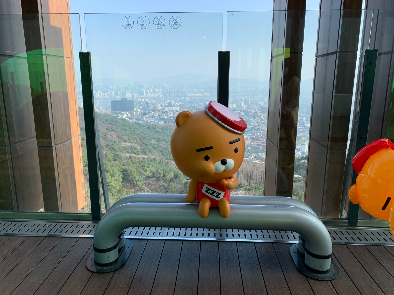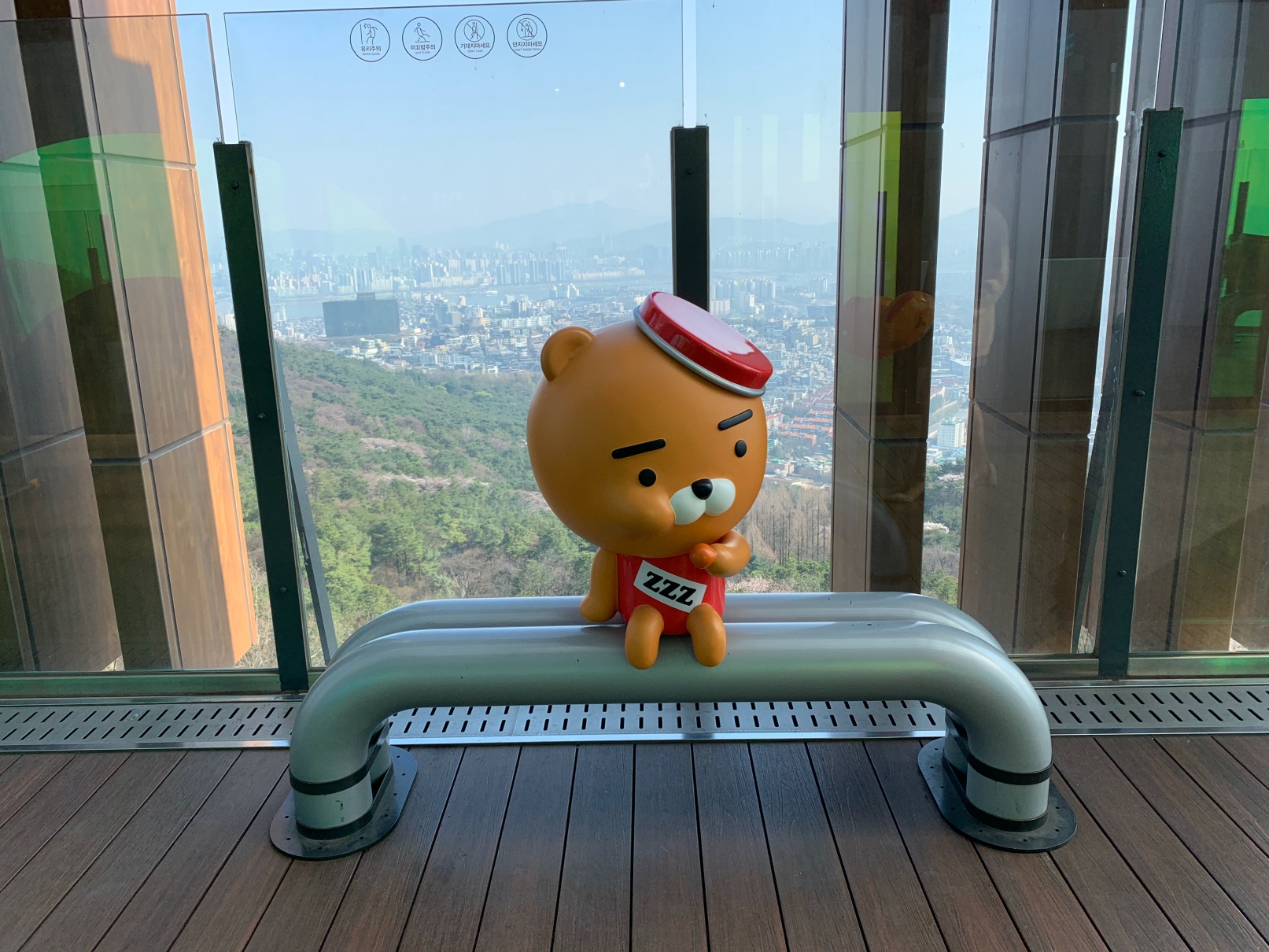 바깥에는 남산 전경을 내려다볼 수 있는 전망대 같은 자리도 있습니다. 저기 라이언 옆에 앉아서 시원한 바람 쐬면 좋습니다.