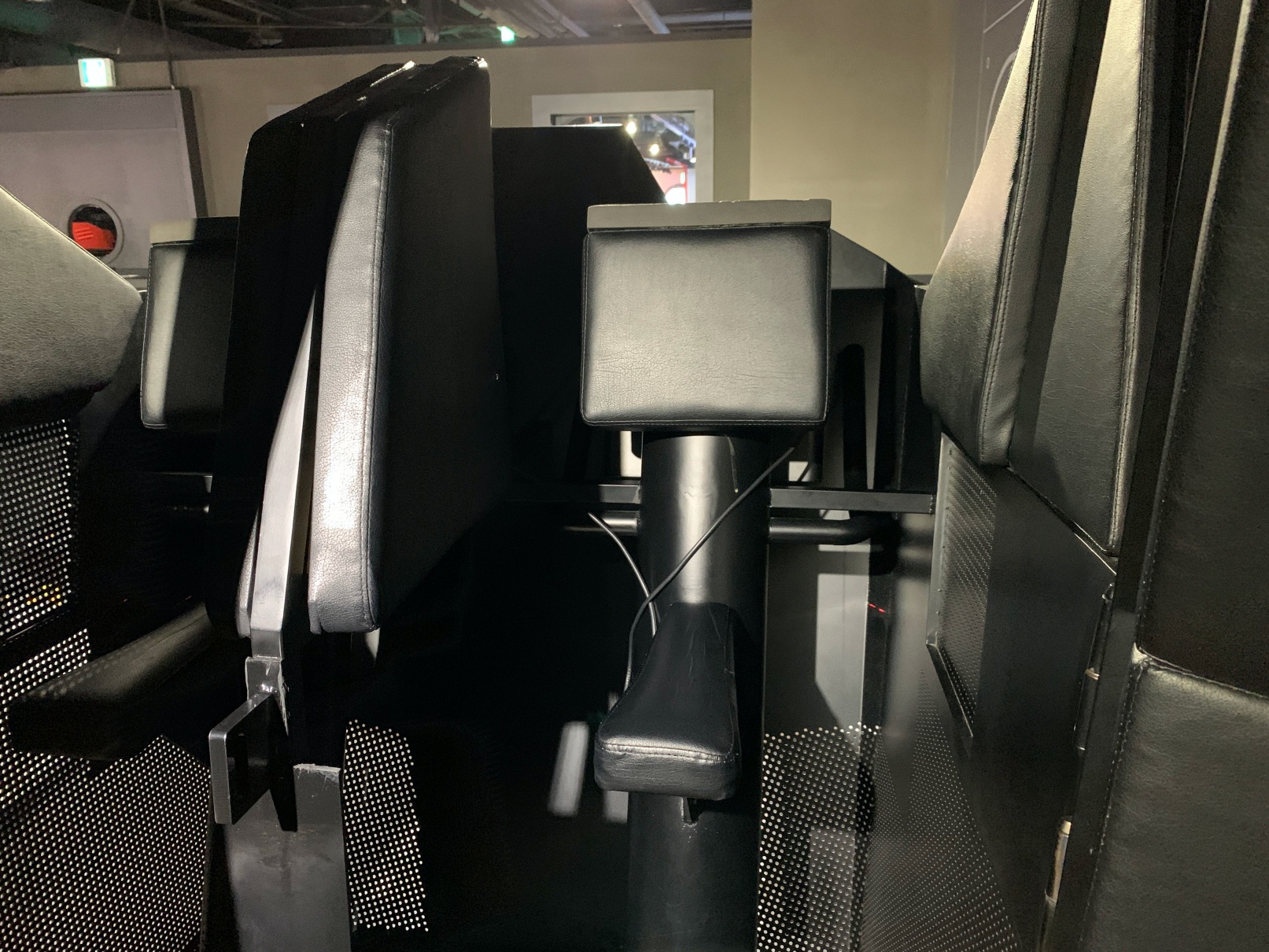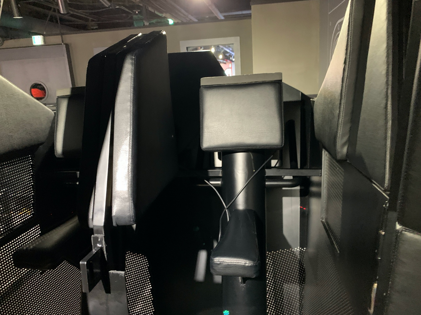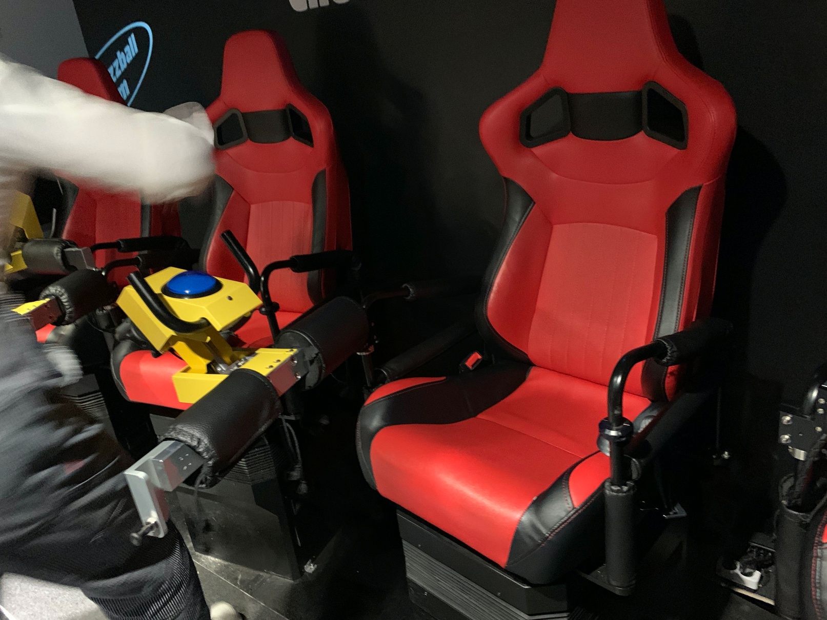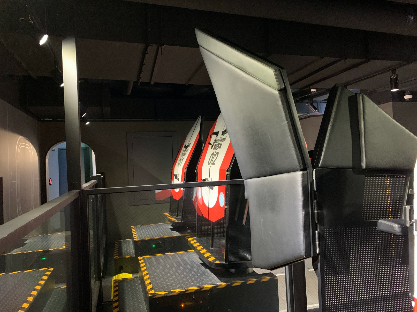 이건 세번째 놀이기구인데, 보시는 것처럼 브이알을 쓰고 저 놀이기구 위에 올라타서 왔다갔다 하기도 하고 돌아가기도 하는 그런 놀이기구입니다. 그렇게 위험하지는 않은데 셋 중에서 제일 동적인? 기구에요.