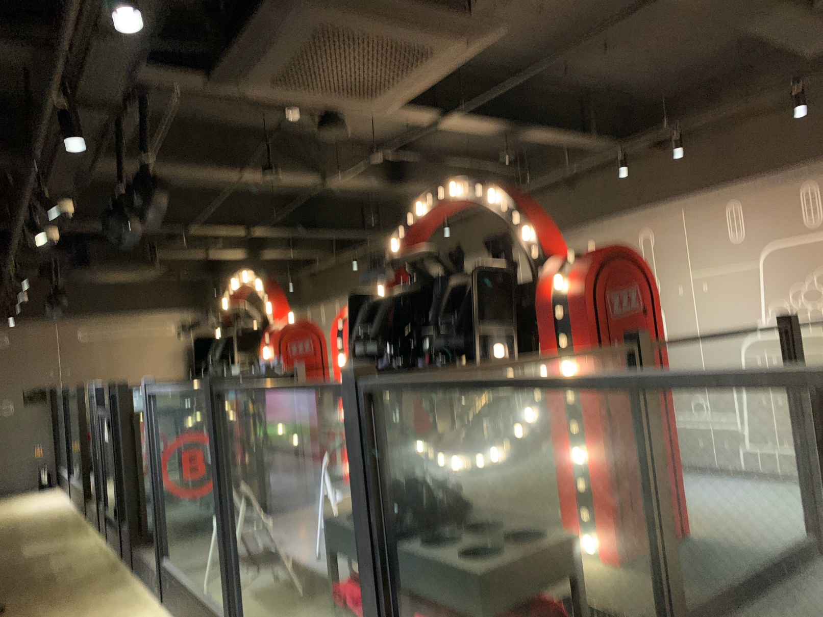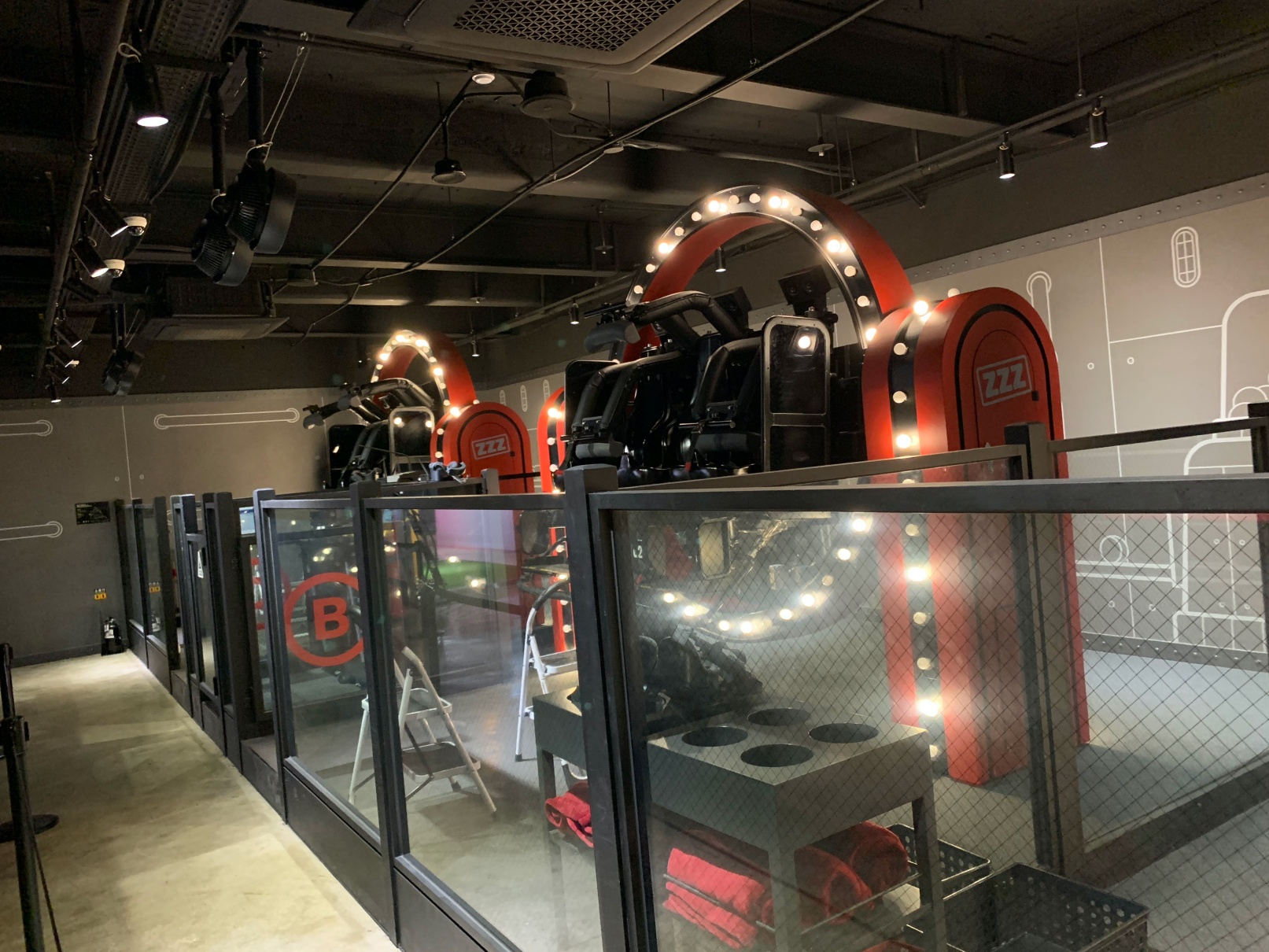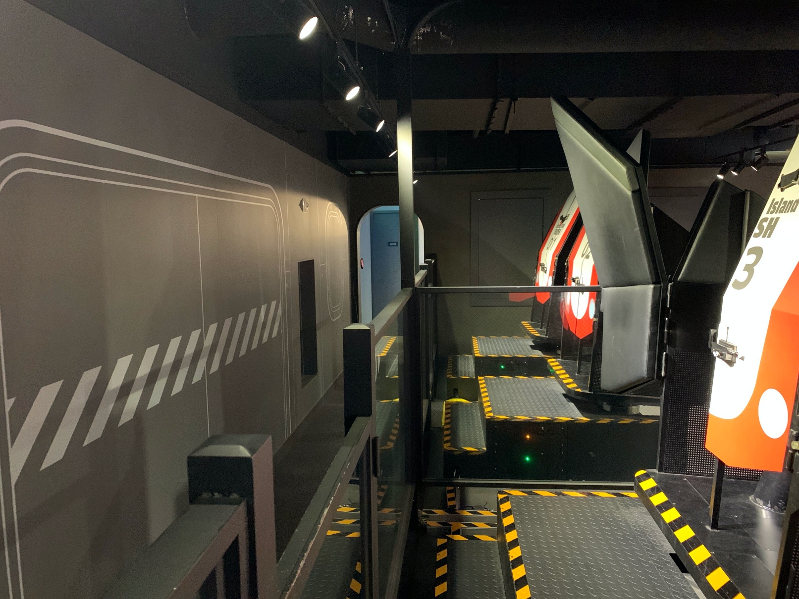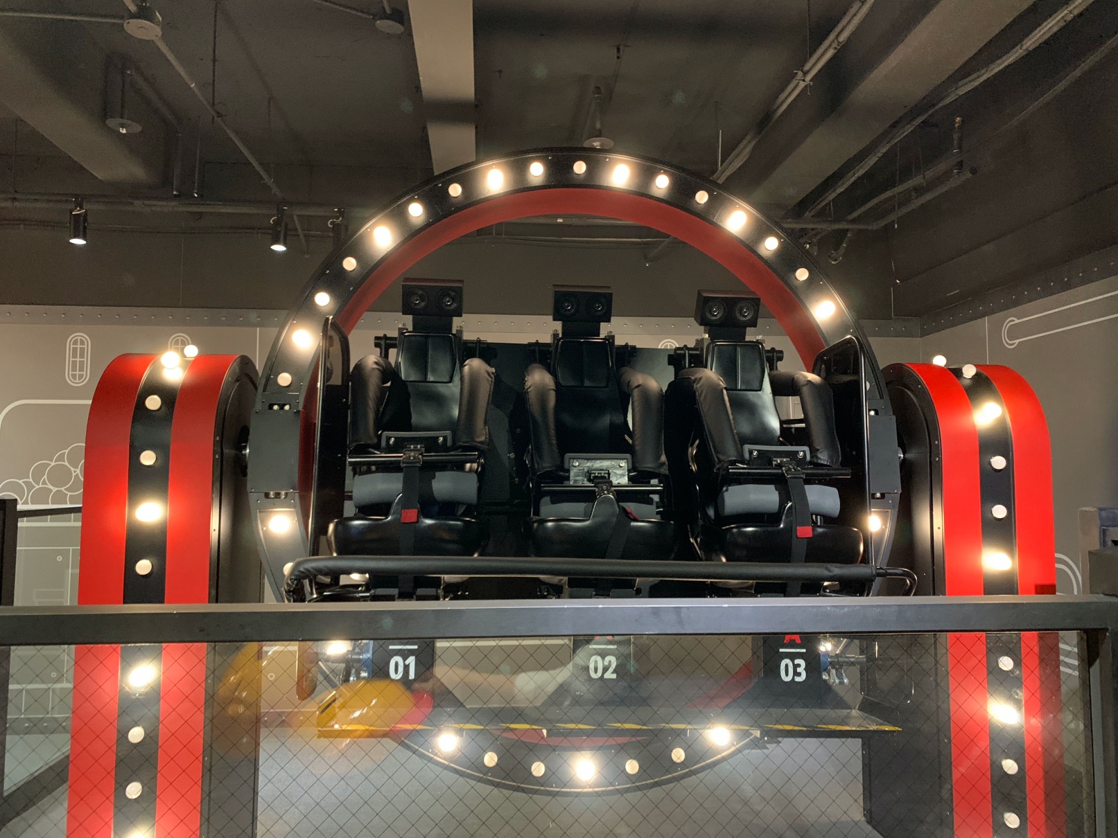 일단 첫번째 놀이기구를 타러 들어왔습니다. 이건 저 파란색 버튼을 누르면서 치즈볼을 쏴서 맞추는 그런 게임인데, 브이알을 쓰지 않고 하는 게임인데도 상당히 스릴 있고 재밌었습니다.