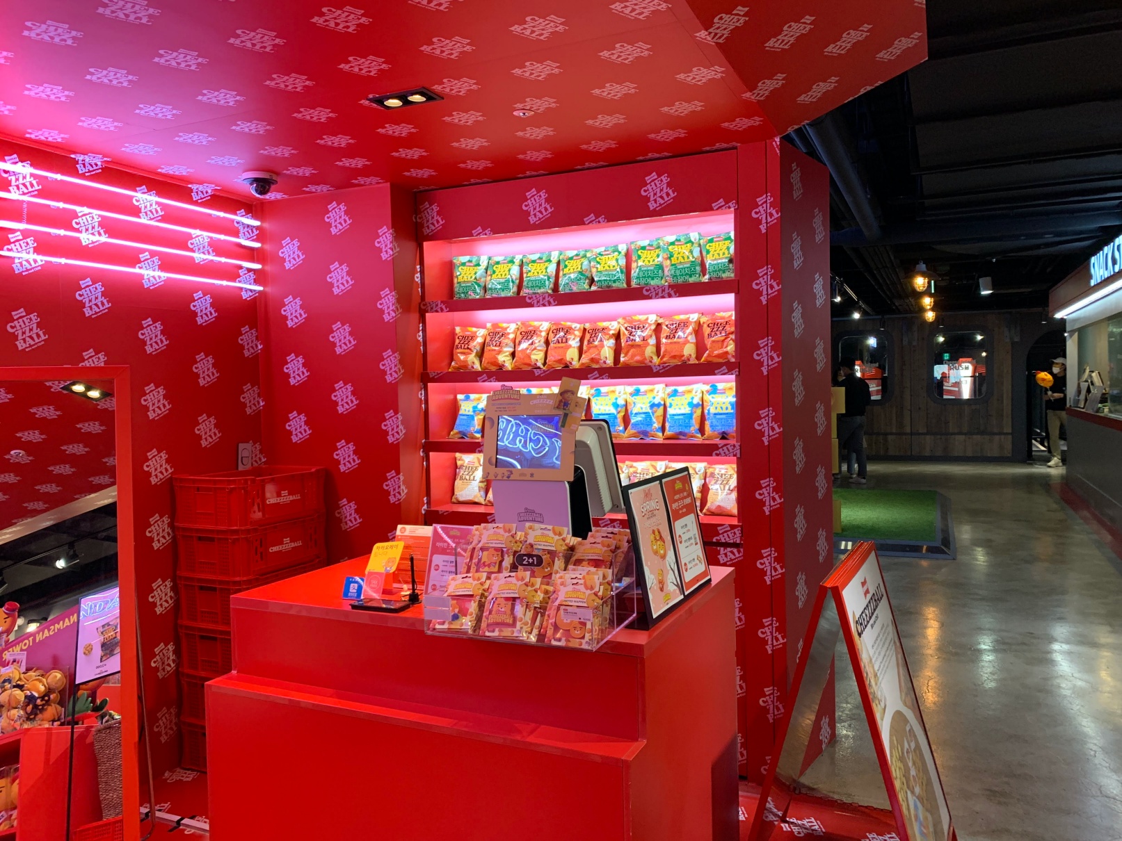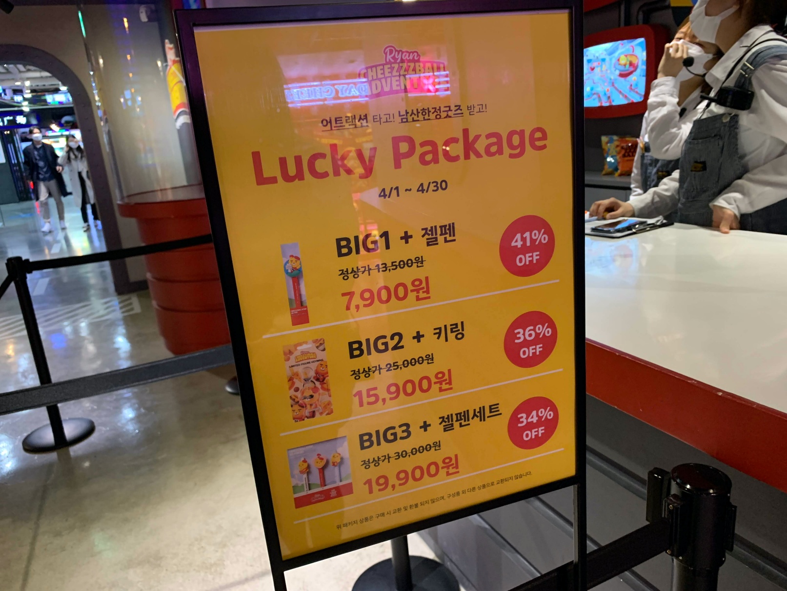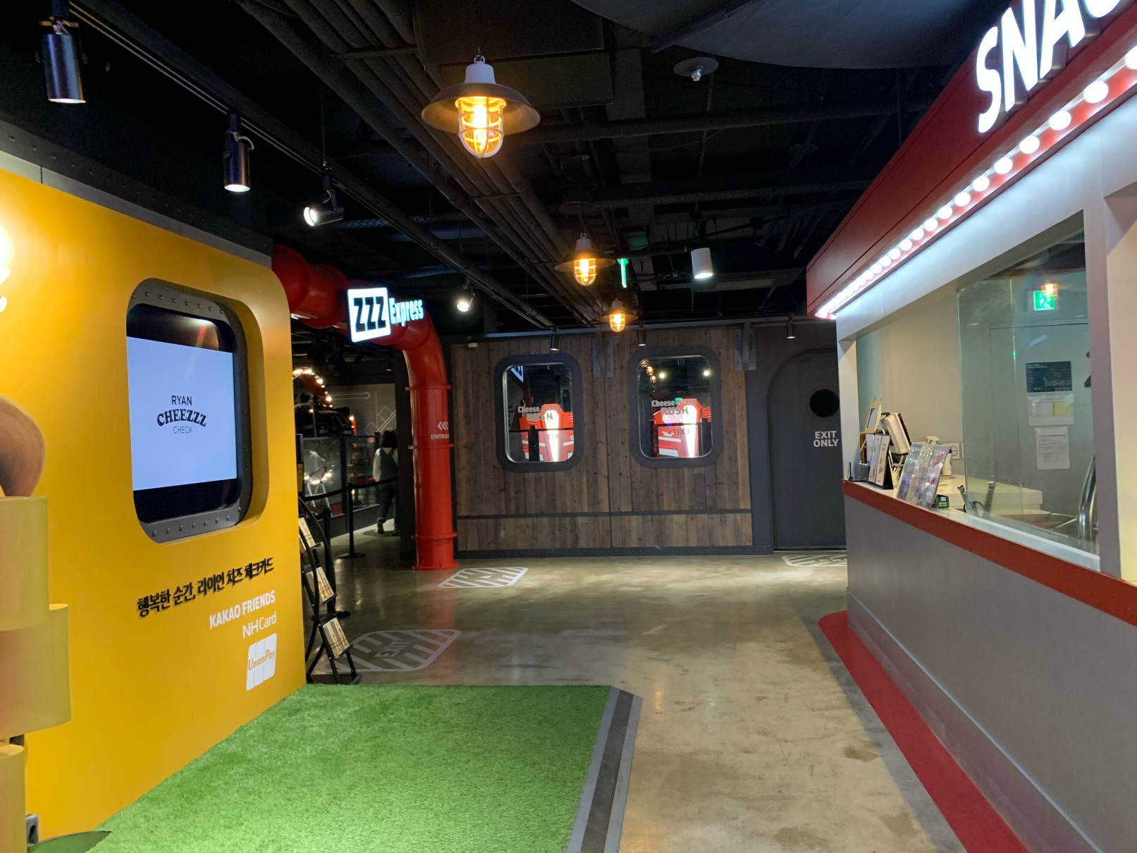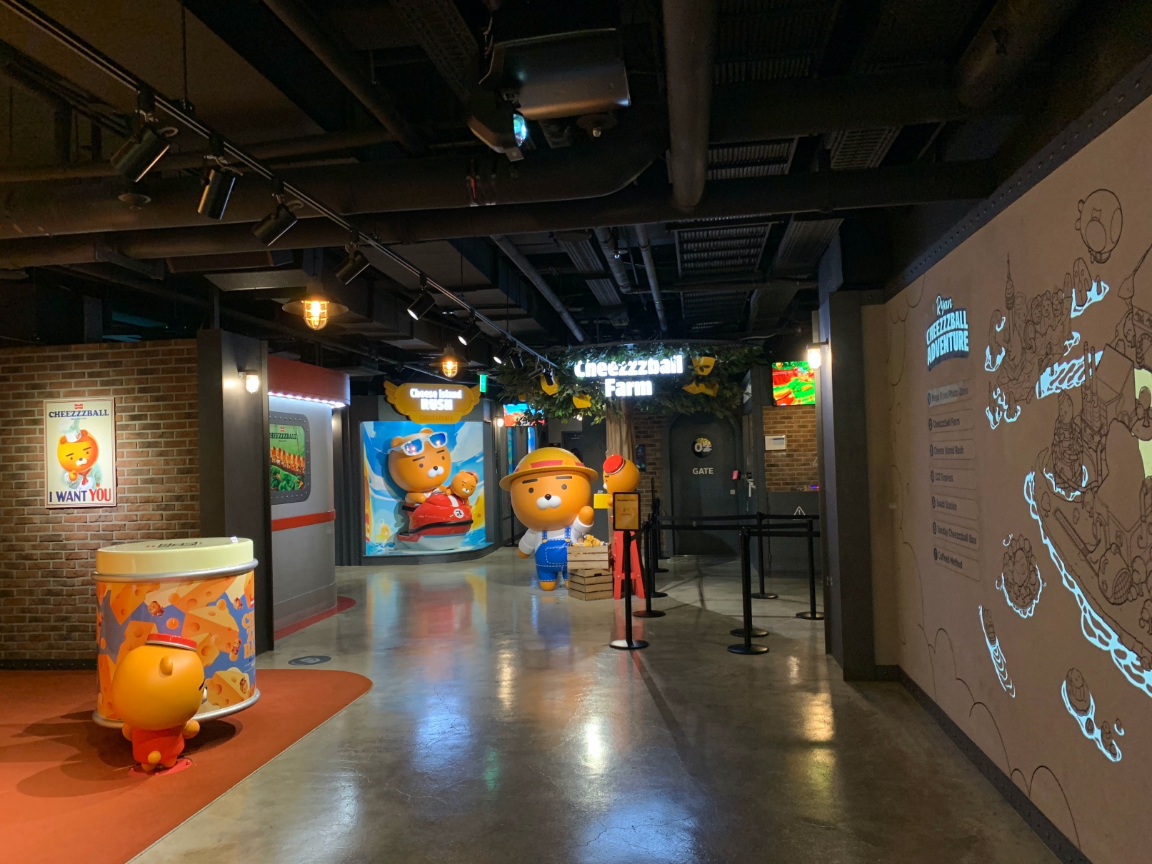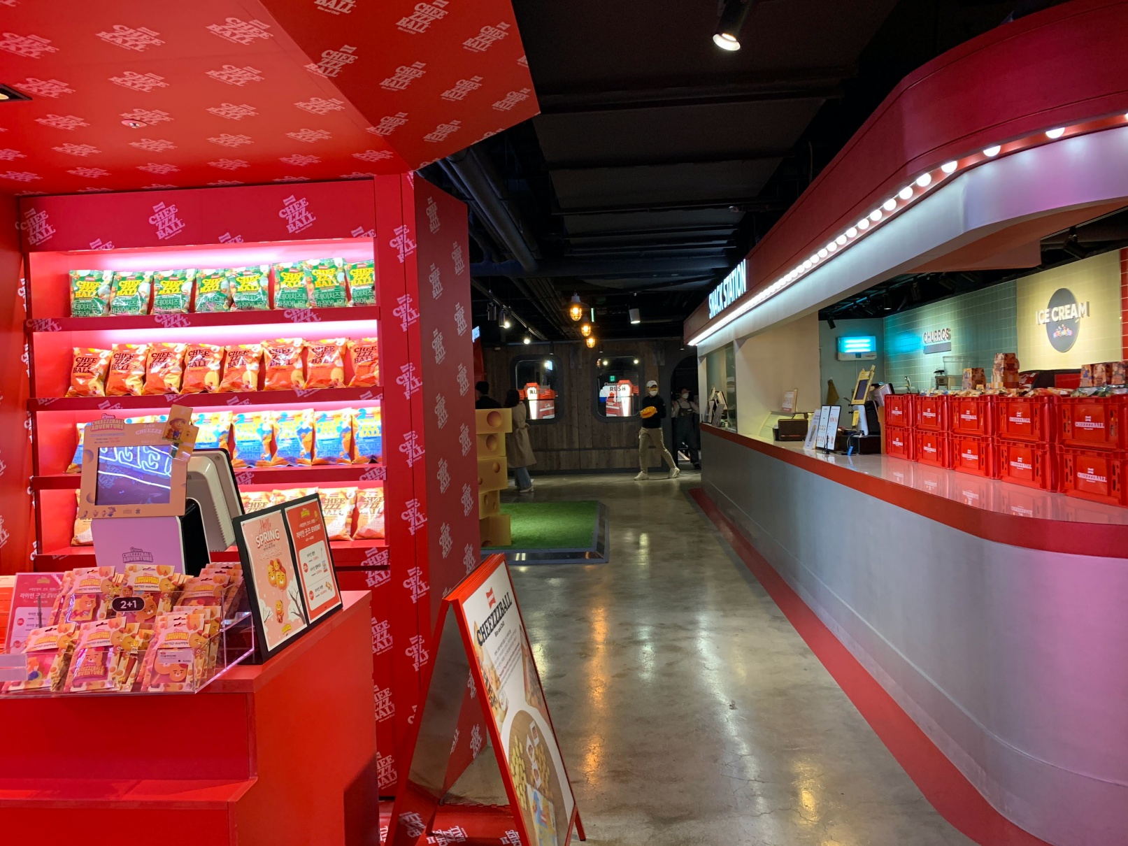 이건 두번째 놀이기구인데 브이알을 쓰고 치즈볼 동산을 탐험하는? 그런 컨텐츠였는데 개인적으로는 이게 제일 재밌었습니다.
