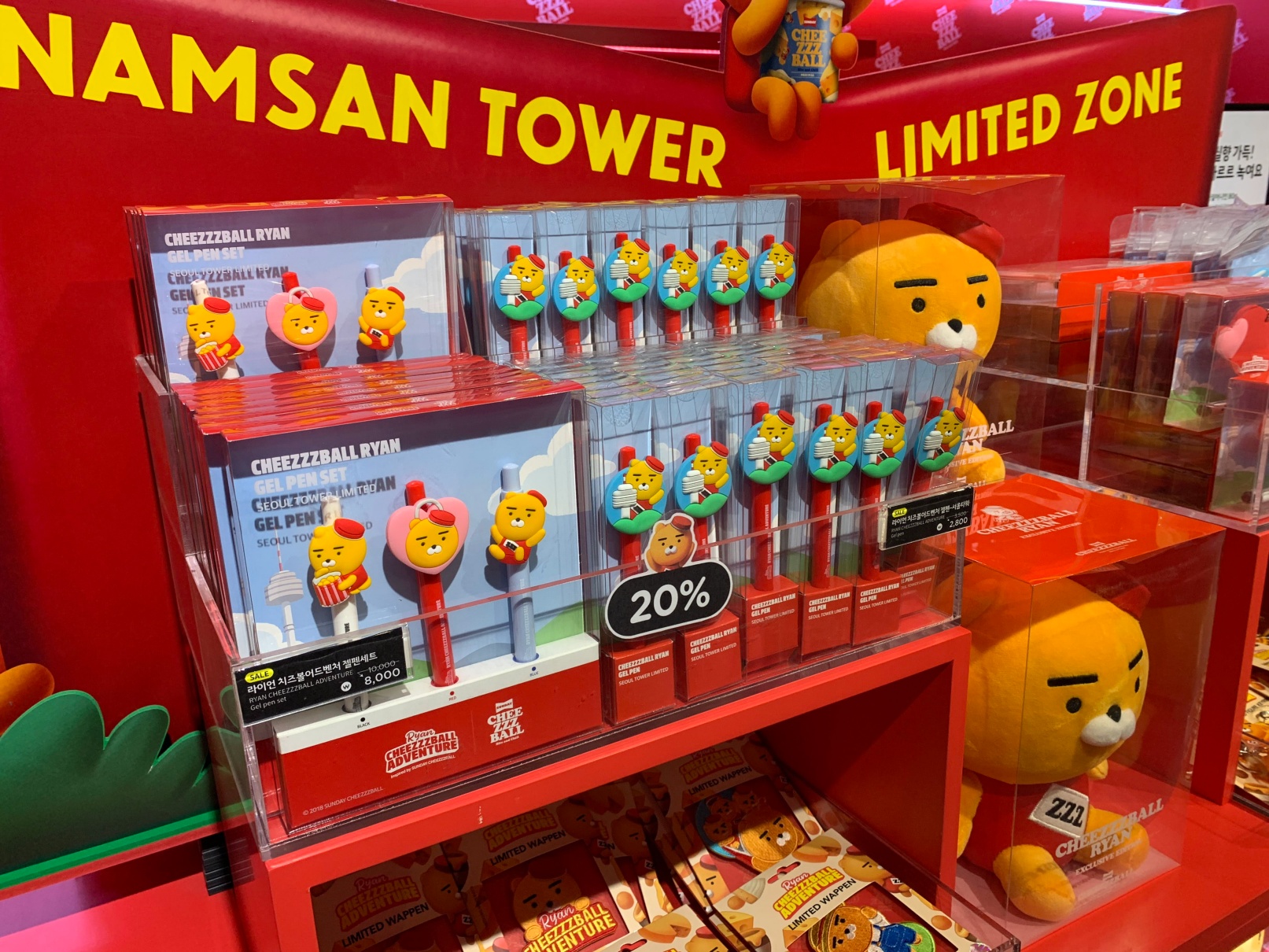 안쪽에는 이런 식으로 각종 라이언과 관련된 굿즈를 판매하는 곳이 있습니다. 참고로 놀이기구 이용권을 끊으시면 저 볼펜 세개가 들어있는 볼펜 세트를 선물로 줍니다 !!!