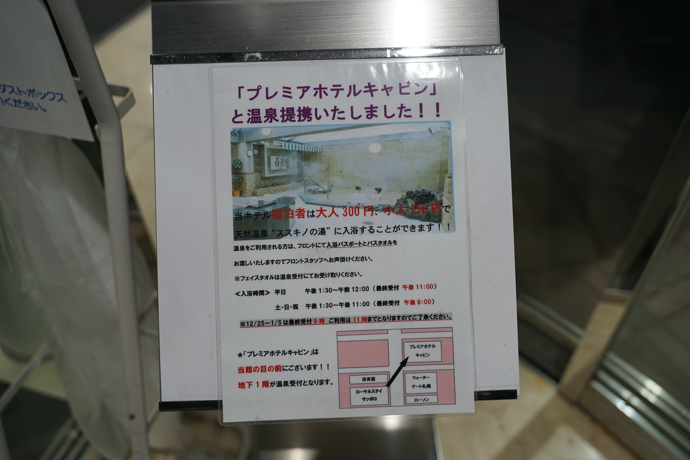 호텔로 들어가는 길에 보니까 사우나를 할 수 있는 곳이 있다고 해서 저는 저녁에 혼자 가서 하고 왔는데 300엔에 매우 매우 만족스러웠습니다 !!!