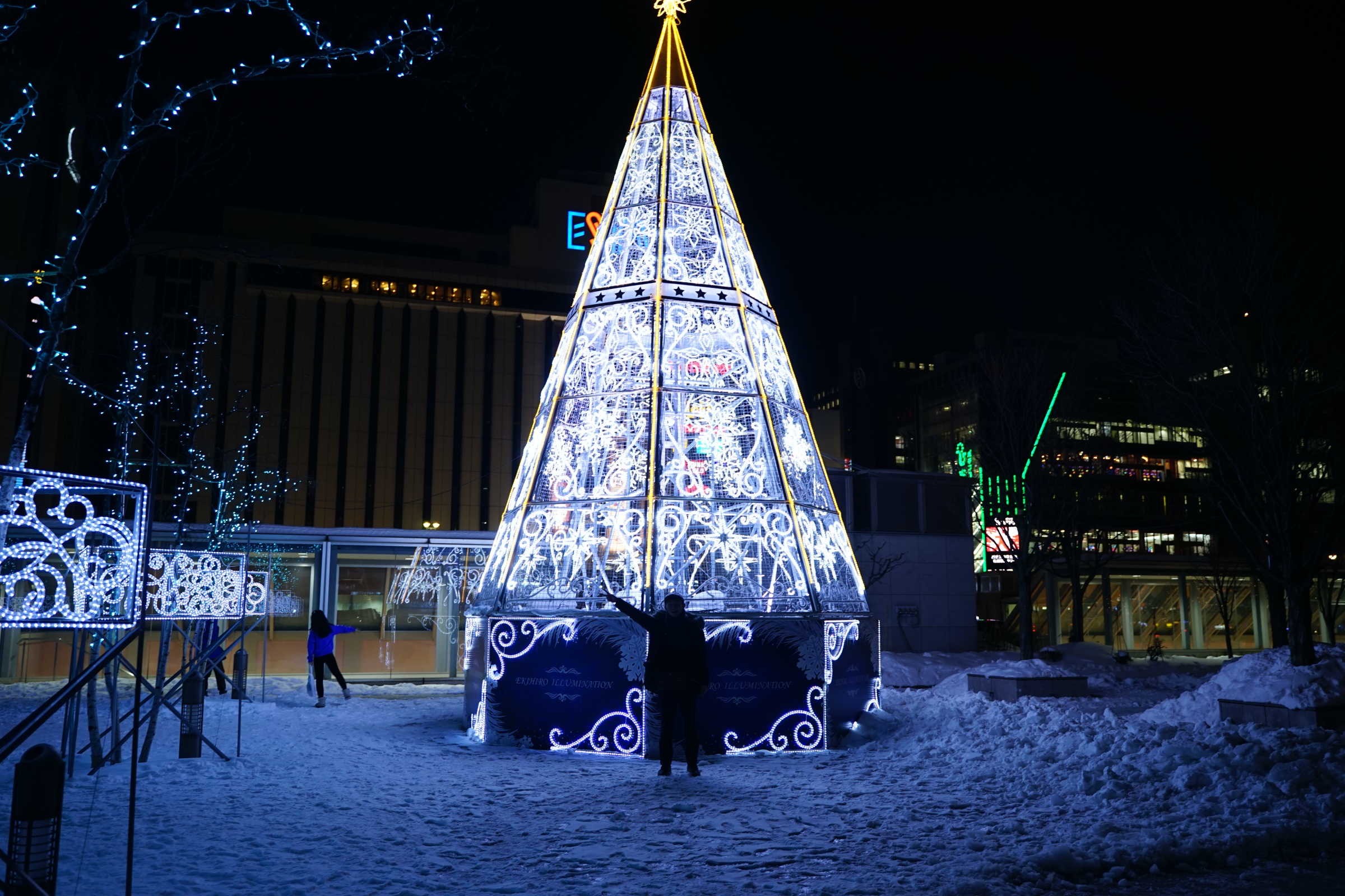 JR타워 앞에 이런 거대한 트리가 설치되어 있엇 사진 한 컷.