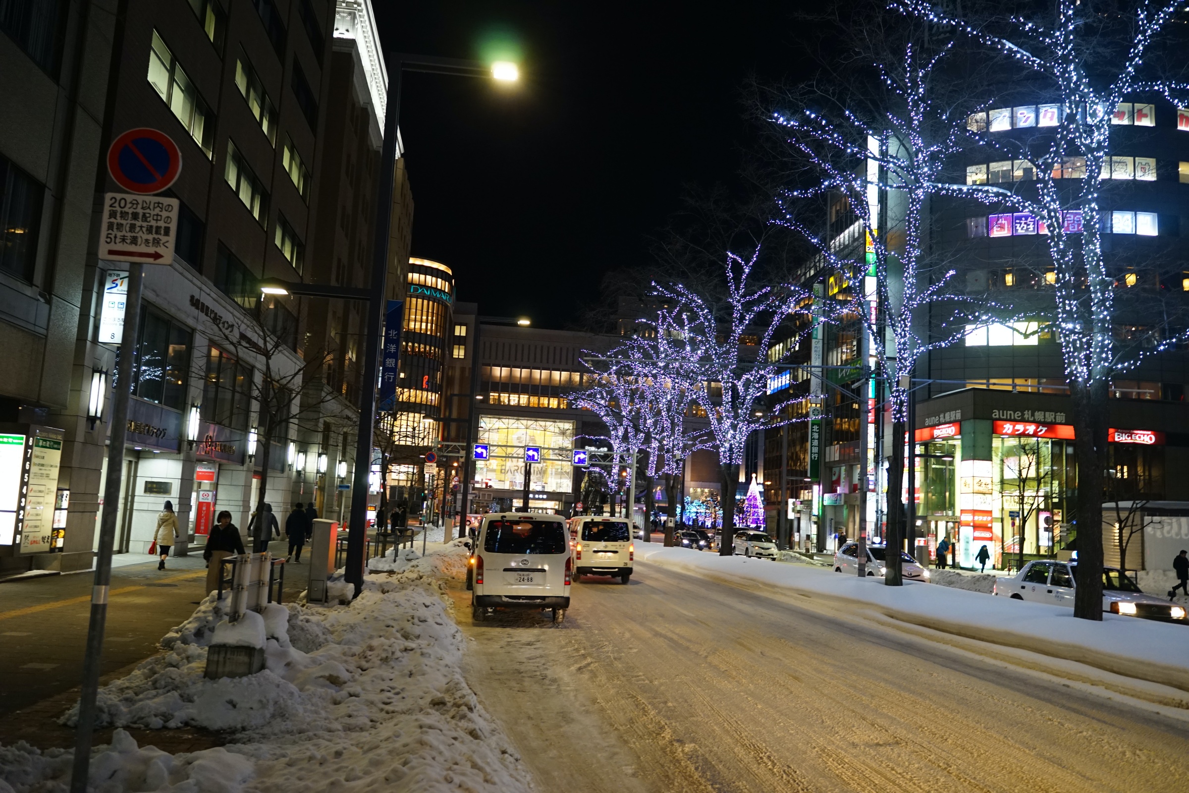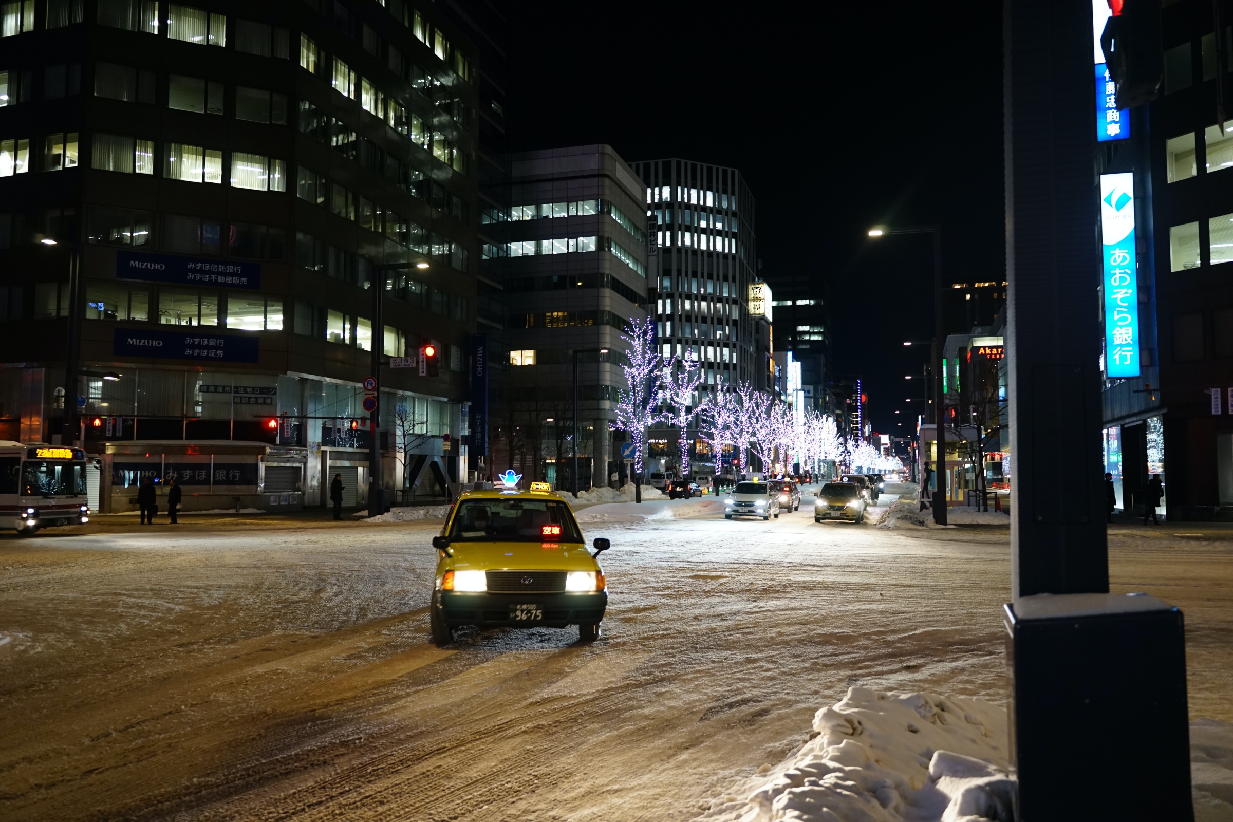 삿포로가 아무래도 일본에서는 변방(?) 지역이다보니 조금만 저녁이 돼도 금방 도로에는 차들이 없어지더라구요.