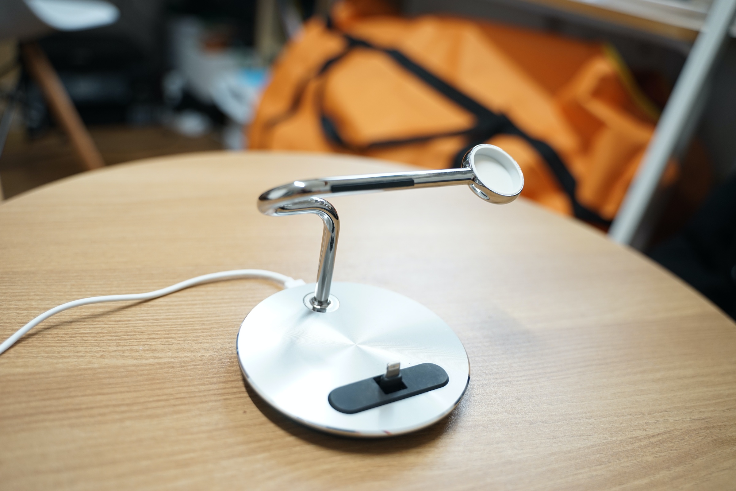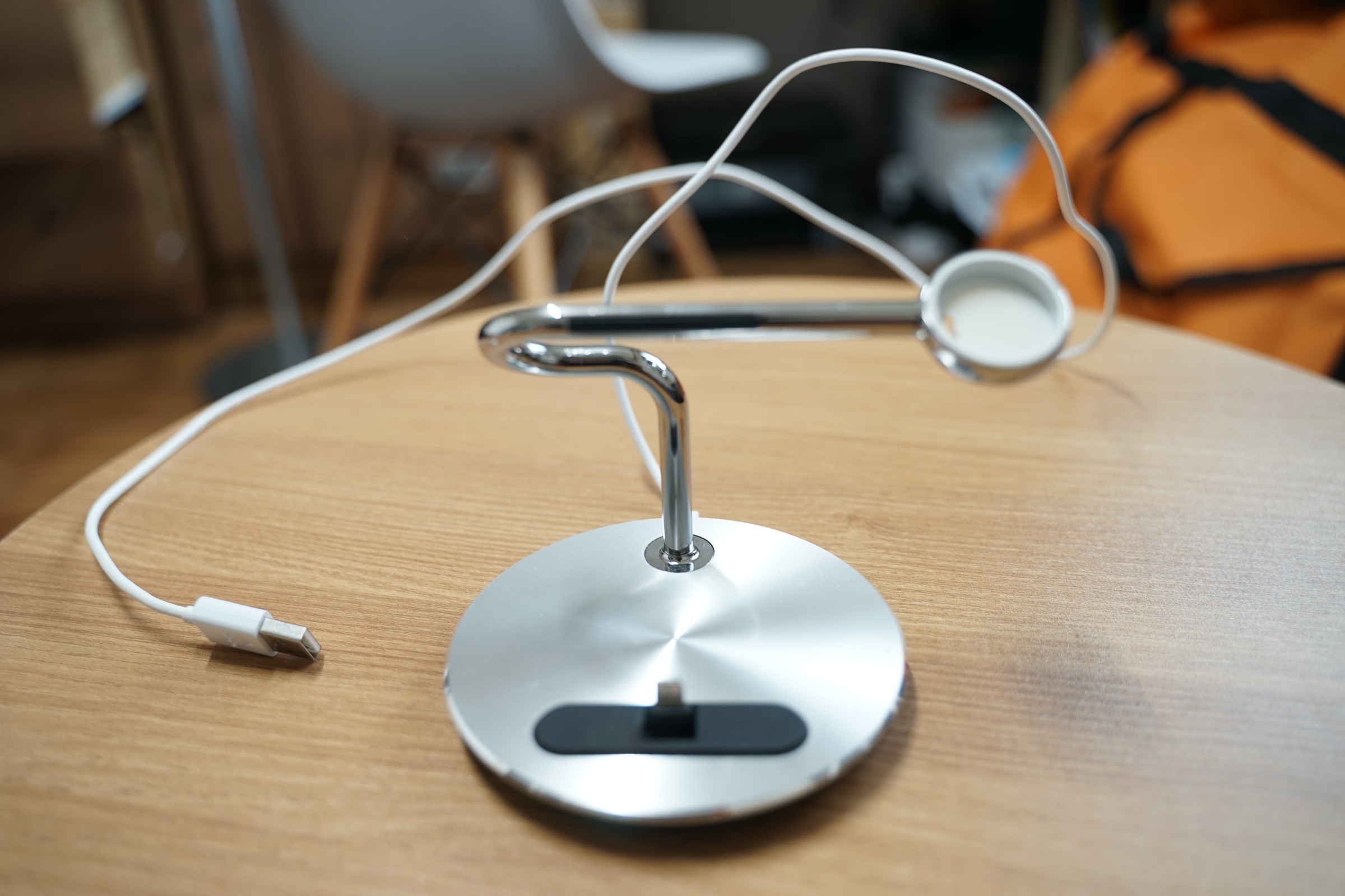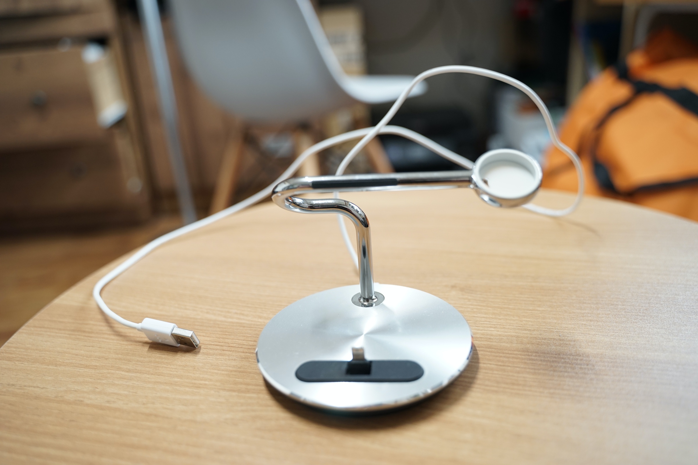 사진에는 잘 안 보이지만 저 은색 알루미늄으로 된 기둥에 애플워치 케이블을 딱 곶아서 정리할 수 있습니다.
