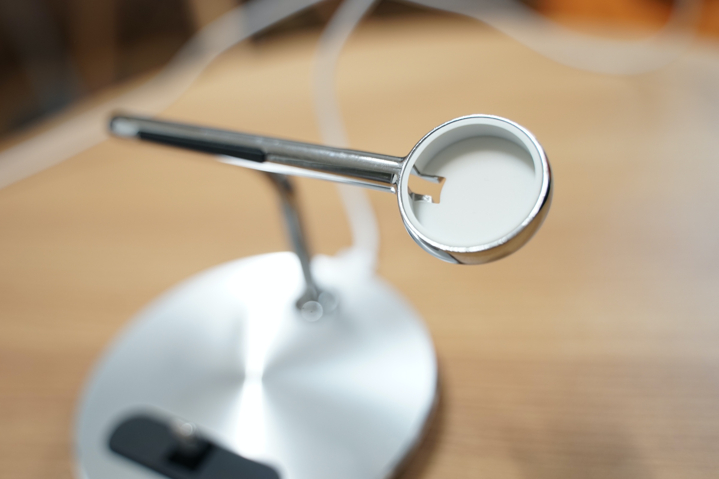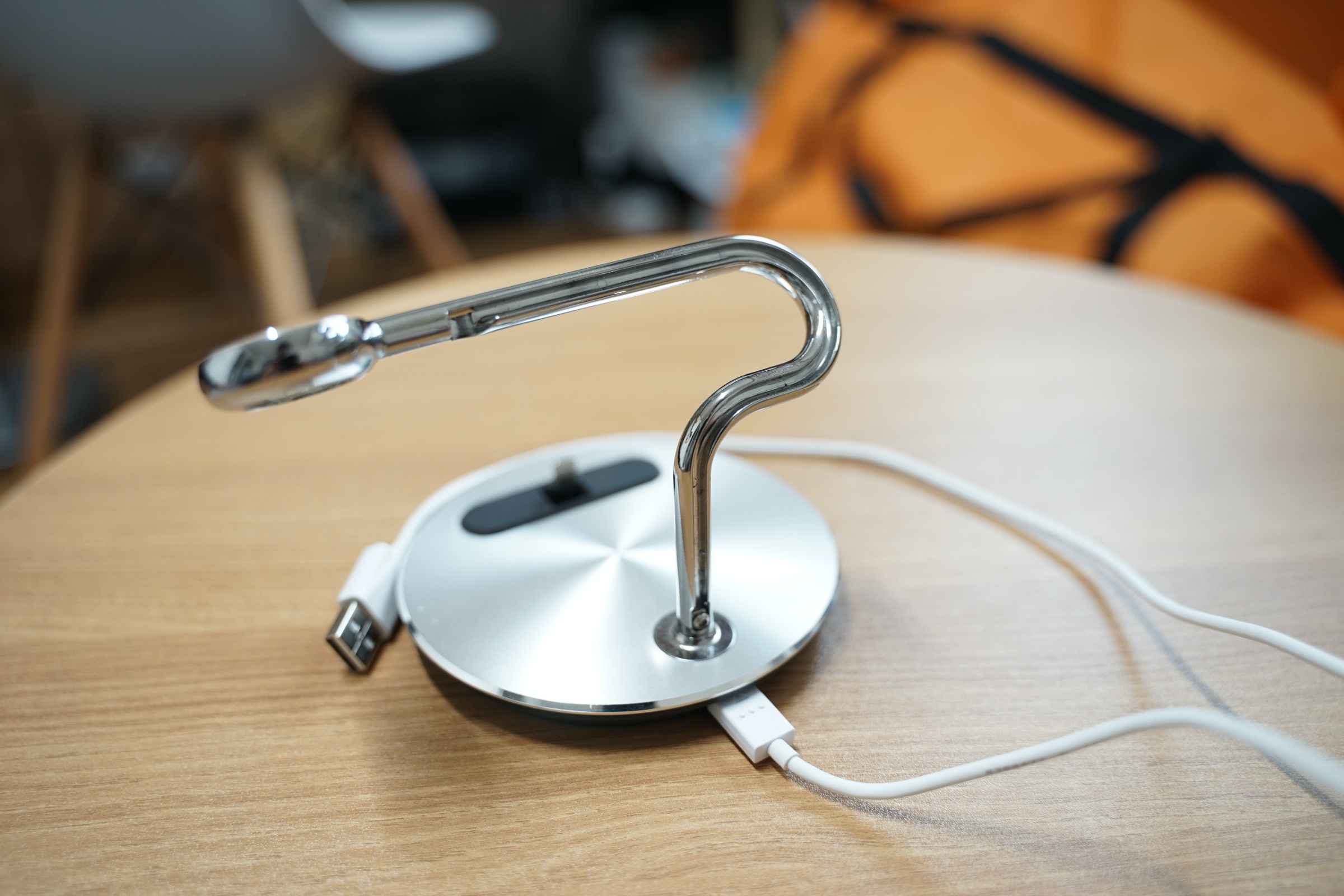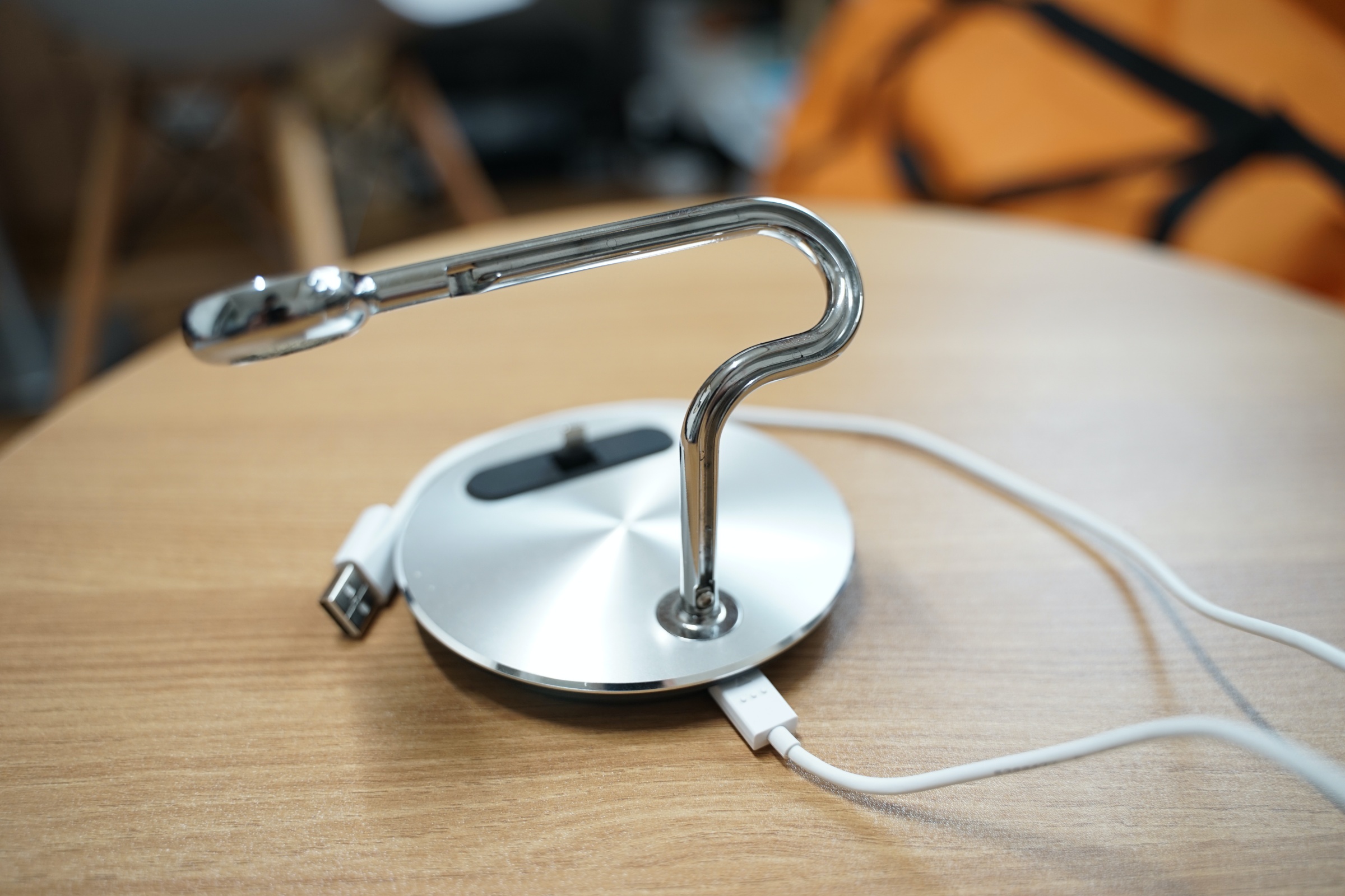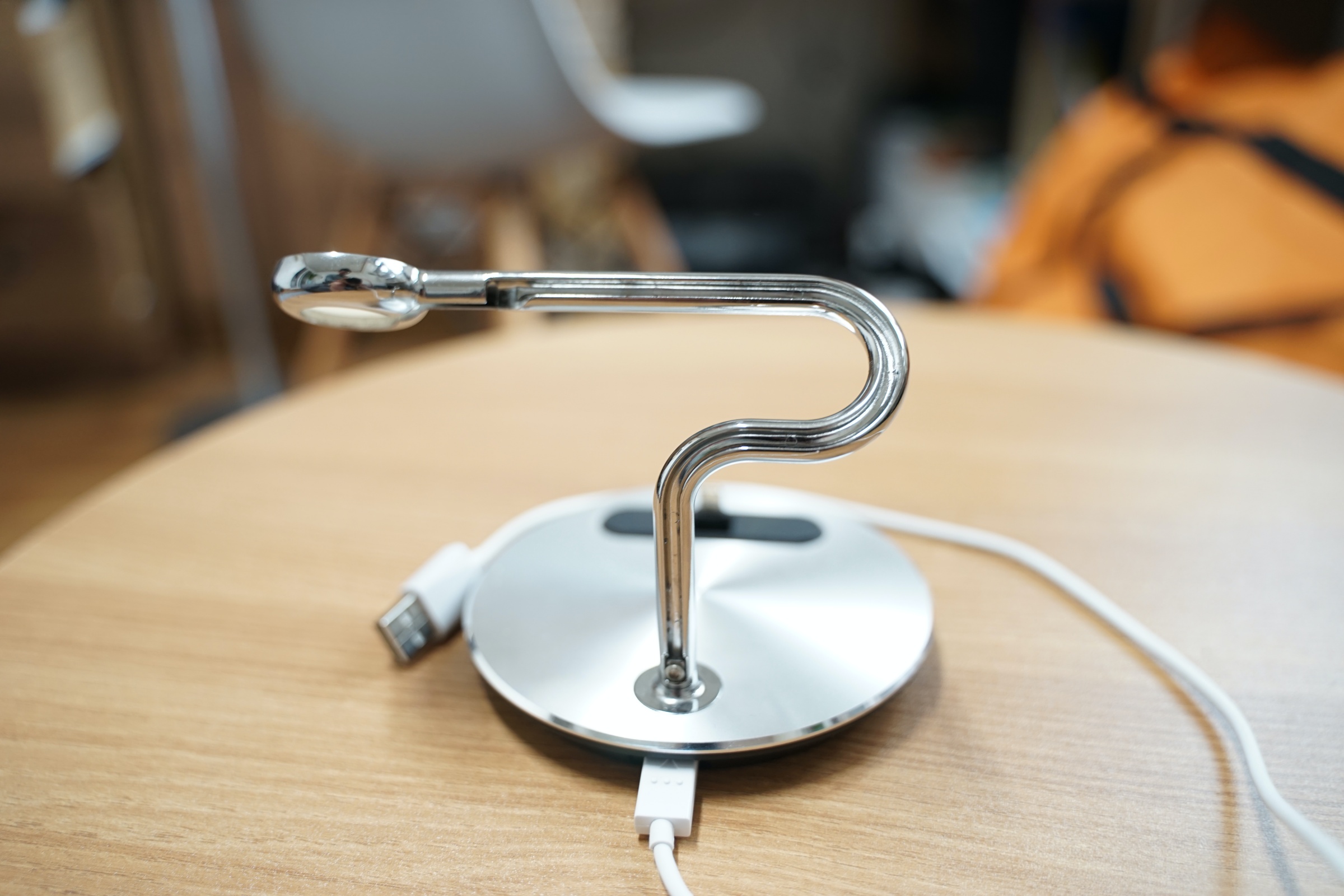 사진에는 잘 안 보이지만 저 은색 알루미늄으로 된 기둥에 애플워치 케이블을 딱 곶아서 정리할 수 있습니다.
