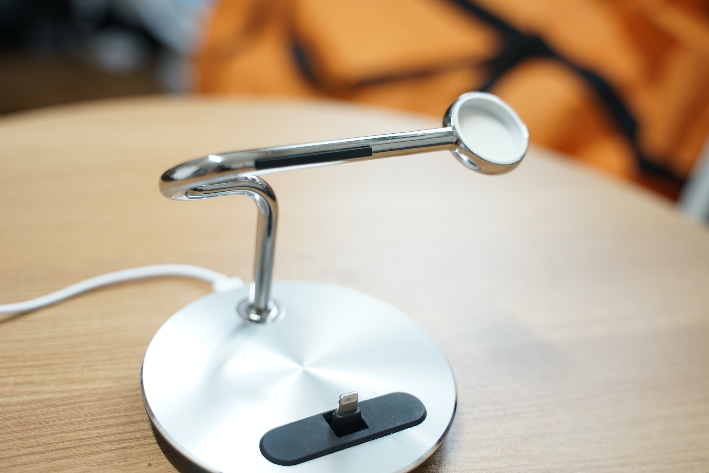 이렇게 생긴 제품입니다. 딱 보면 아시겠지만 라이트닝 포트가 있고, 애플워치를 거치할 수 있는 부분이 있습니다.