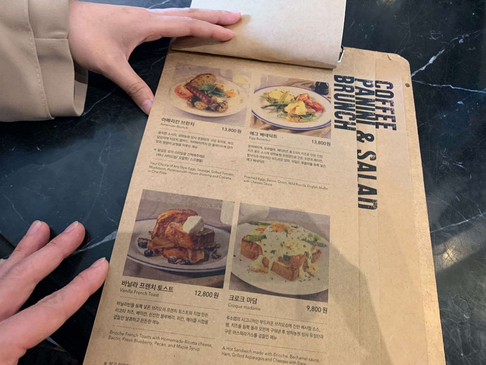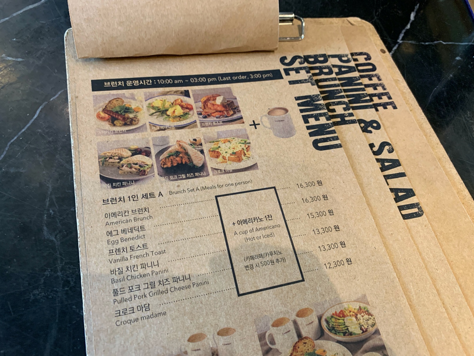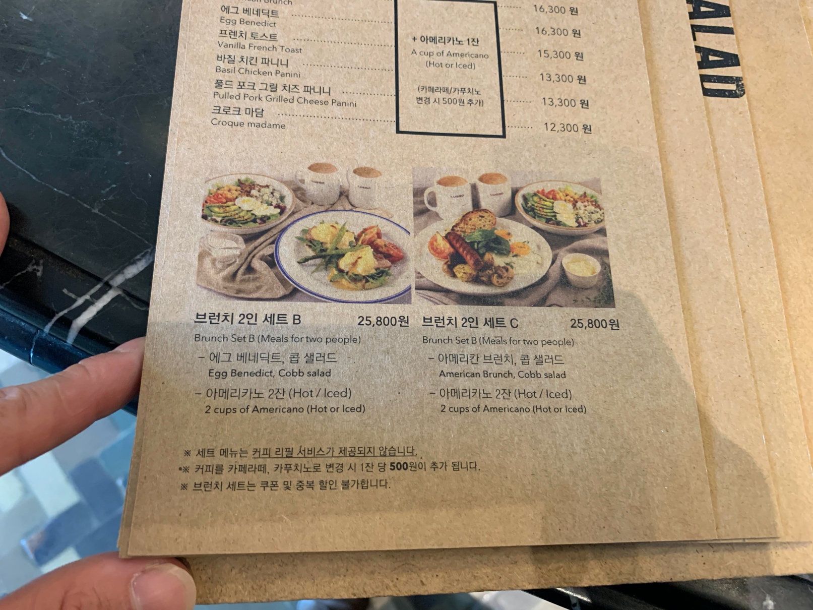 개인적으로는 여기 있는 세트메뉴가 가성비가 좋은 것 같아요. 원래는 아래에 있는 브런치 세트를 할까 하다가 그냥 각자 먹고 싶은 걸 하자는 생각에 저희는 프렌치토스트 세트와 아메리칸 브런치 세트를 각자 시켰습니다.