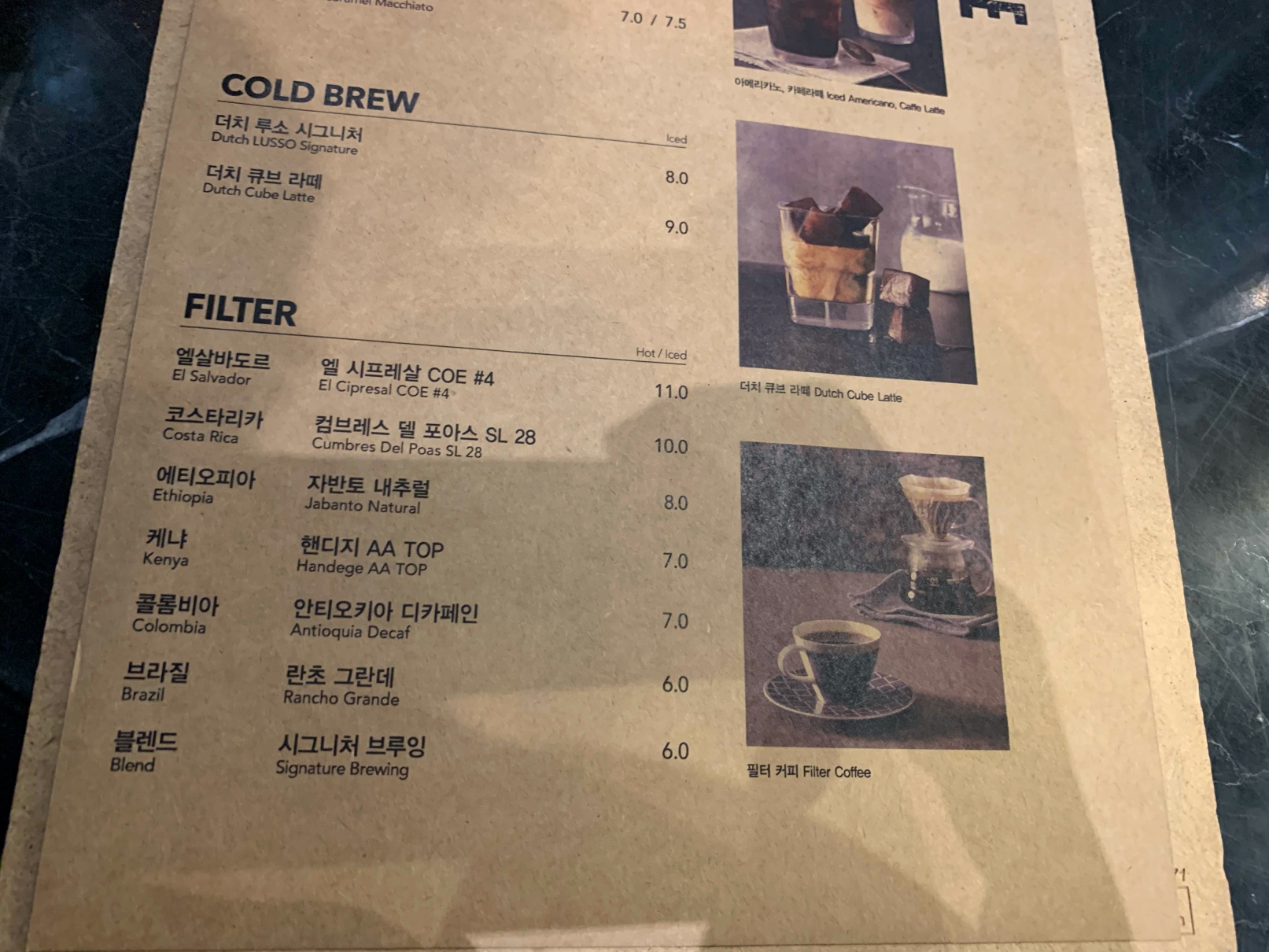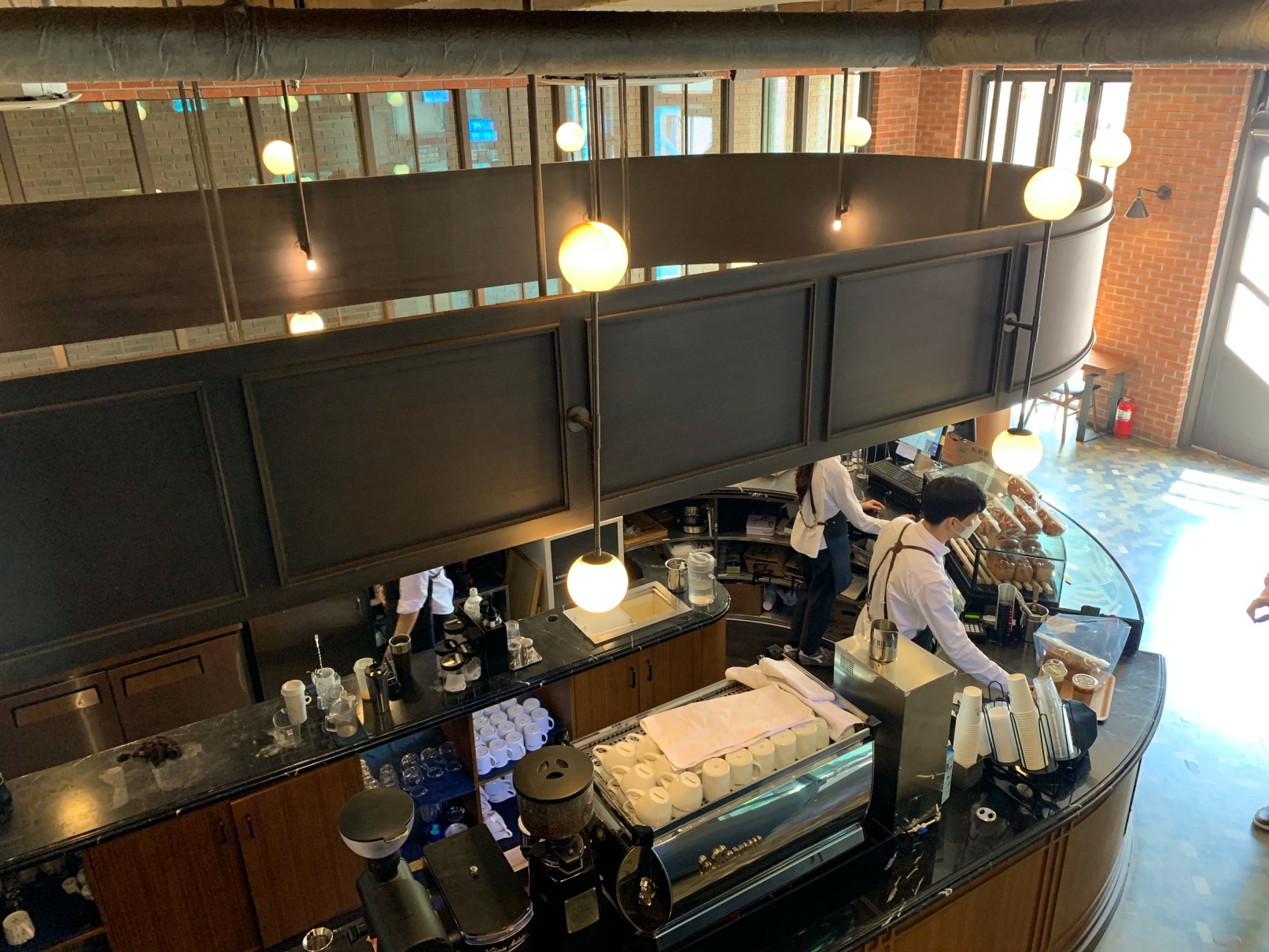 요새는 카페가 이런 식으로 가운데에 카운터와 커피 만드는 기구들을 두는 게 유행인 것 같아요. 약간 스타벅스 리저브 매장을 따라하는 것 같은 느낌이죠.
