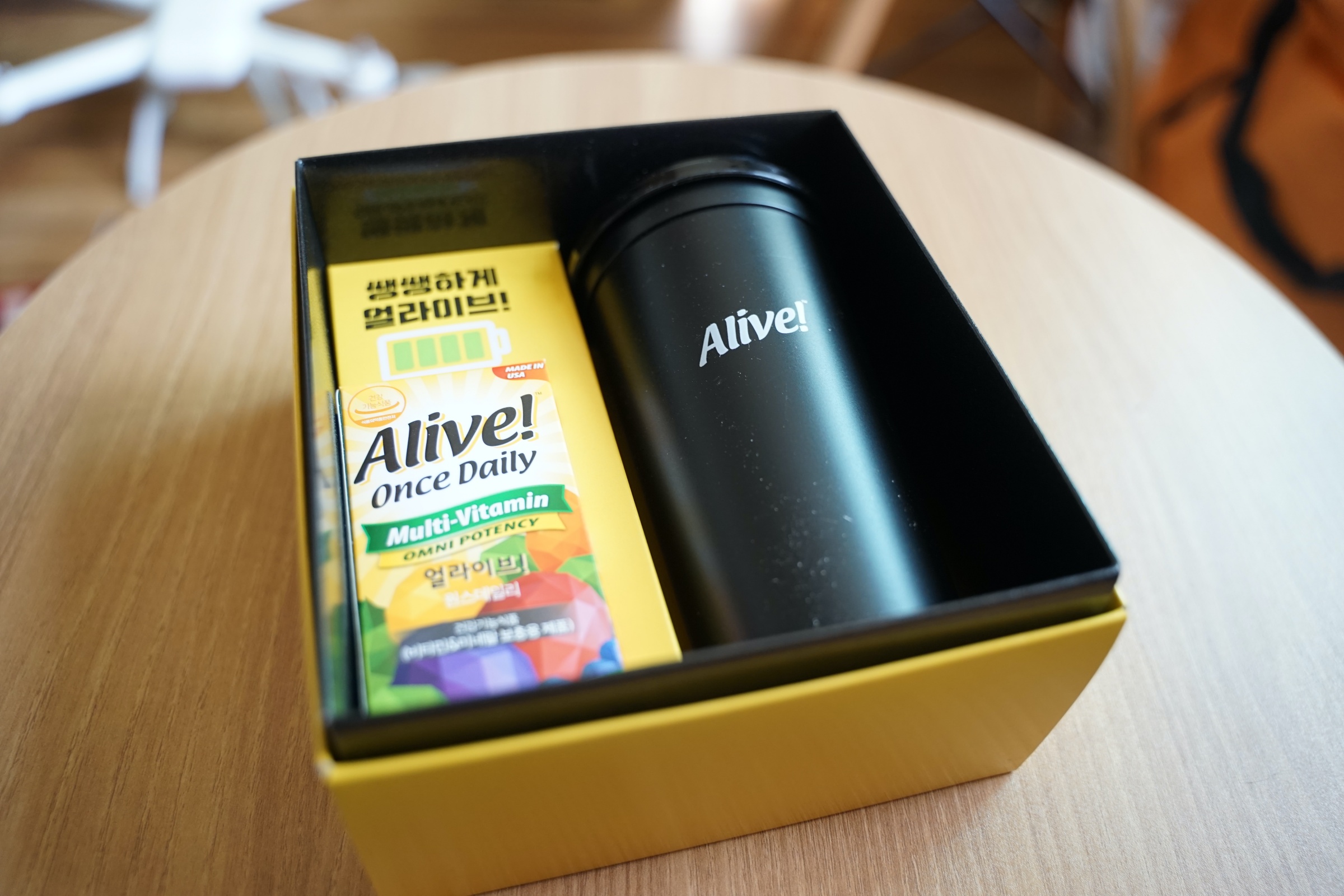 안녕하세요! 파카씨입니다. 이번에 소개할 것은 카카오 선물하기로 받은 얼라이브 영양제랑 텀블러 세트에요!