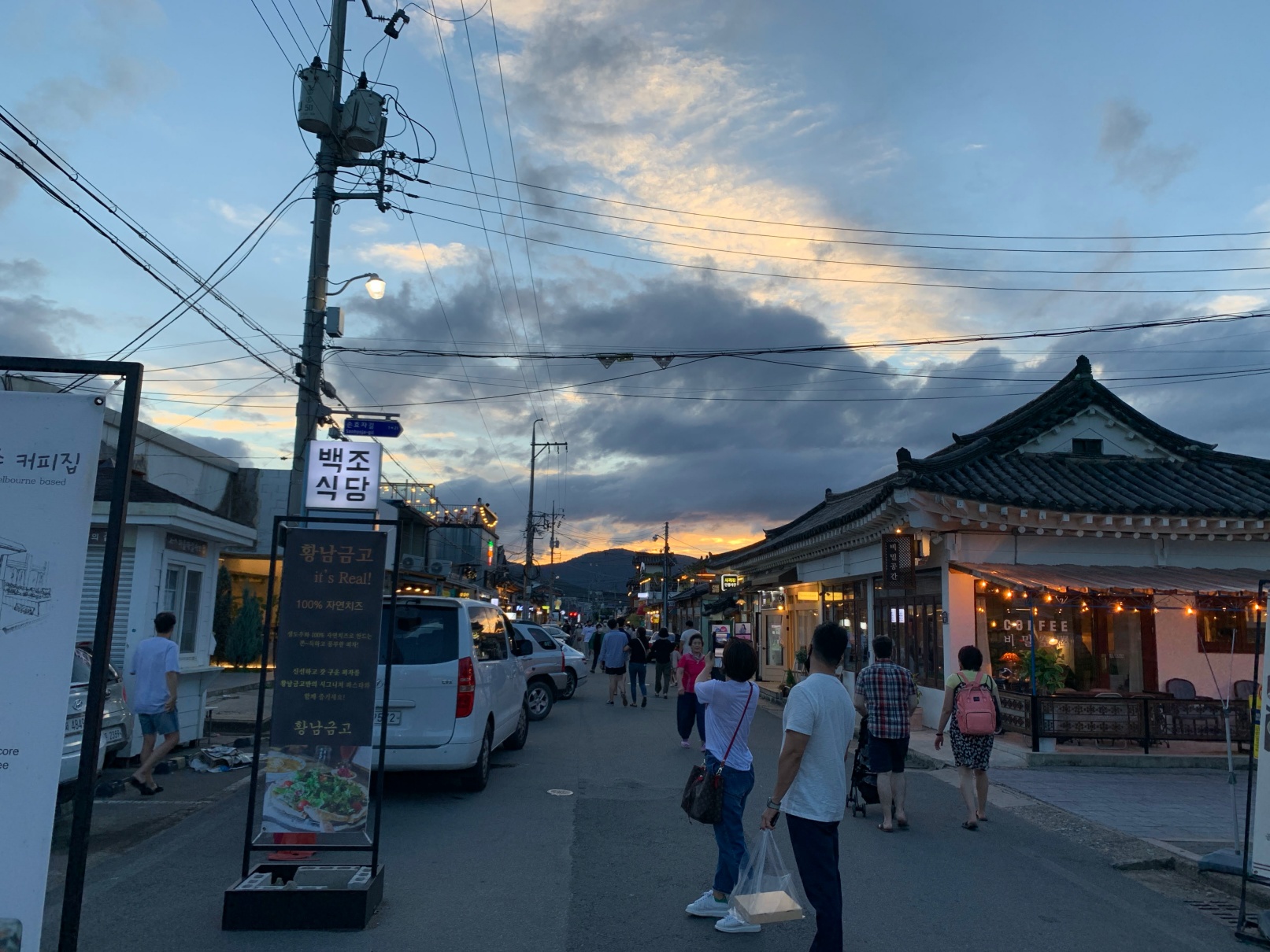 비가 하나도 안 오고 경주는 날씨가 이렇게 좋았습니다. 물론 하늘에는 구름이 잔뜩 껴있기는 했지만 ... 그 사이로 보이는 저 노을이 정말 너무 평화롭고 이뻤습니다.