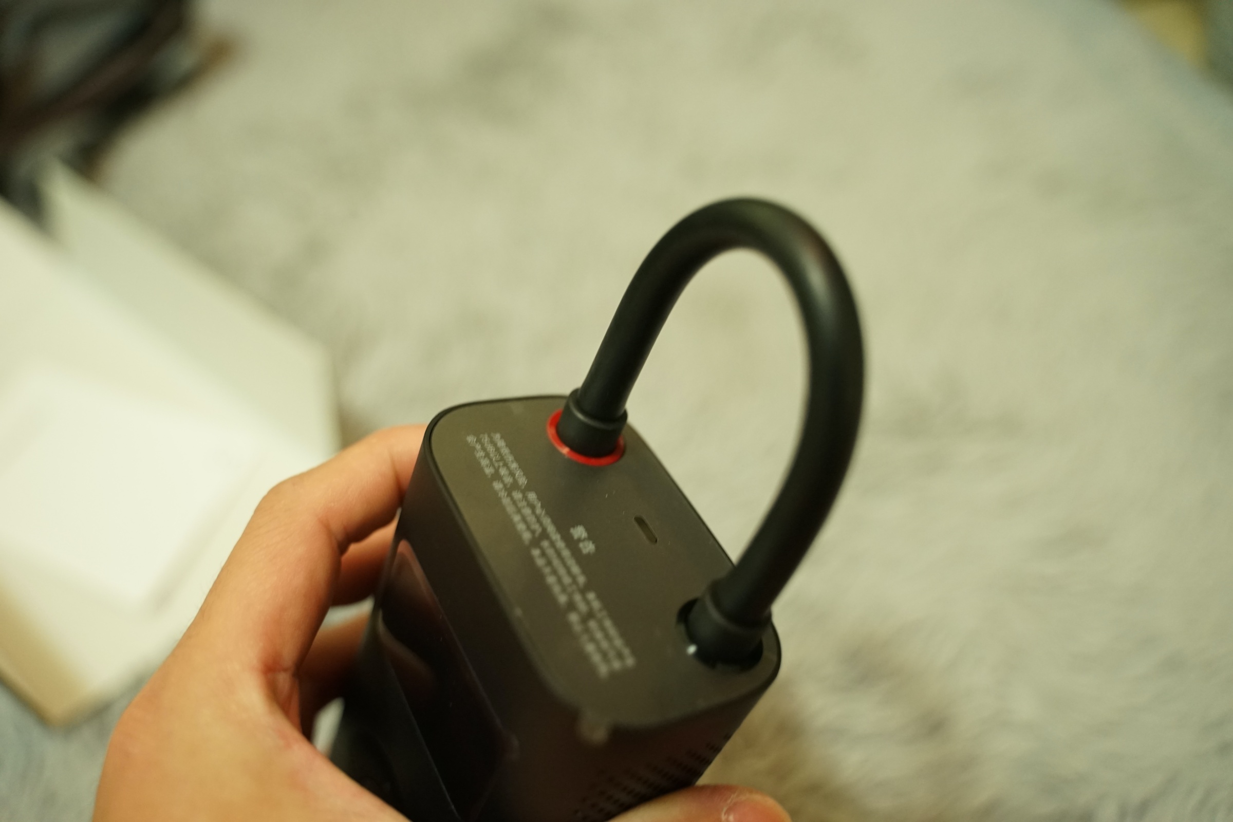 이런 식으로 공기주입구를 뽑으면 자동으로 전원이 켜지고, 넣으면 다시 자동으로 전원이 꺼집니다.
