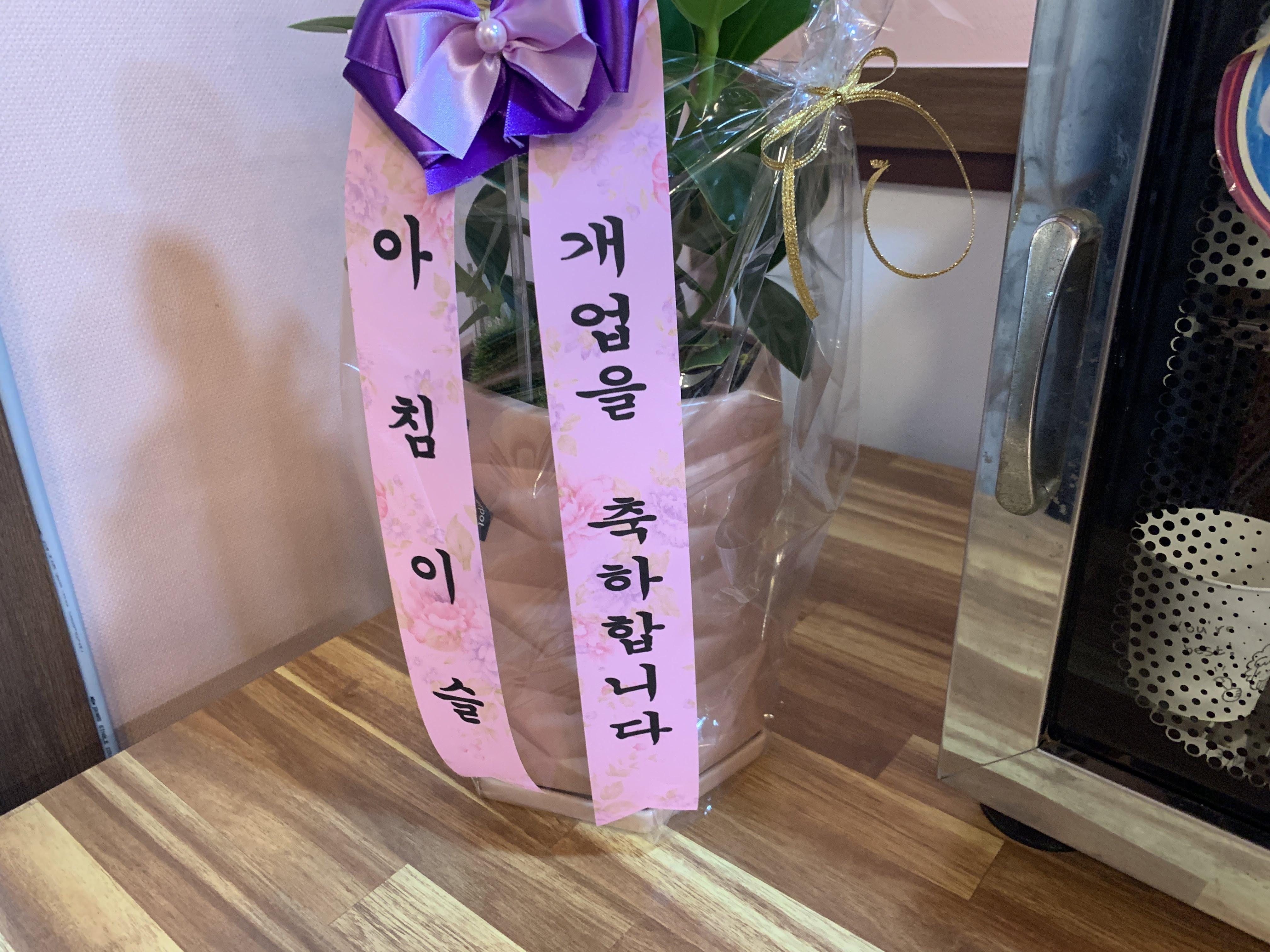 새로 개업한 걸 축하한다는 화환이 하나 있네요.