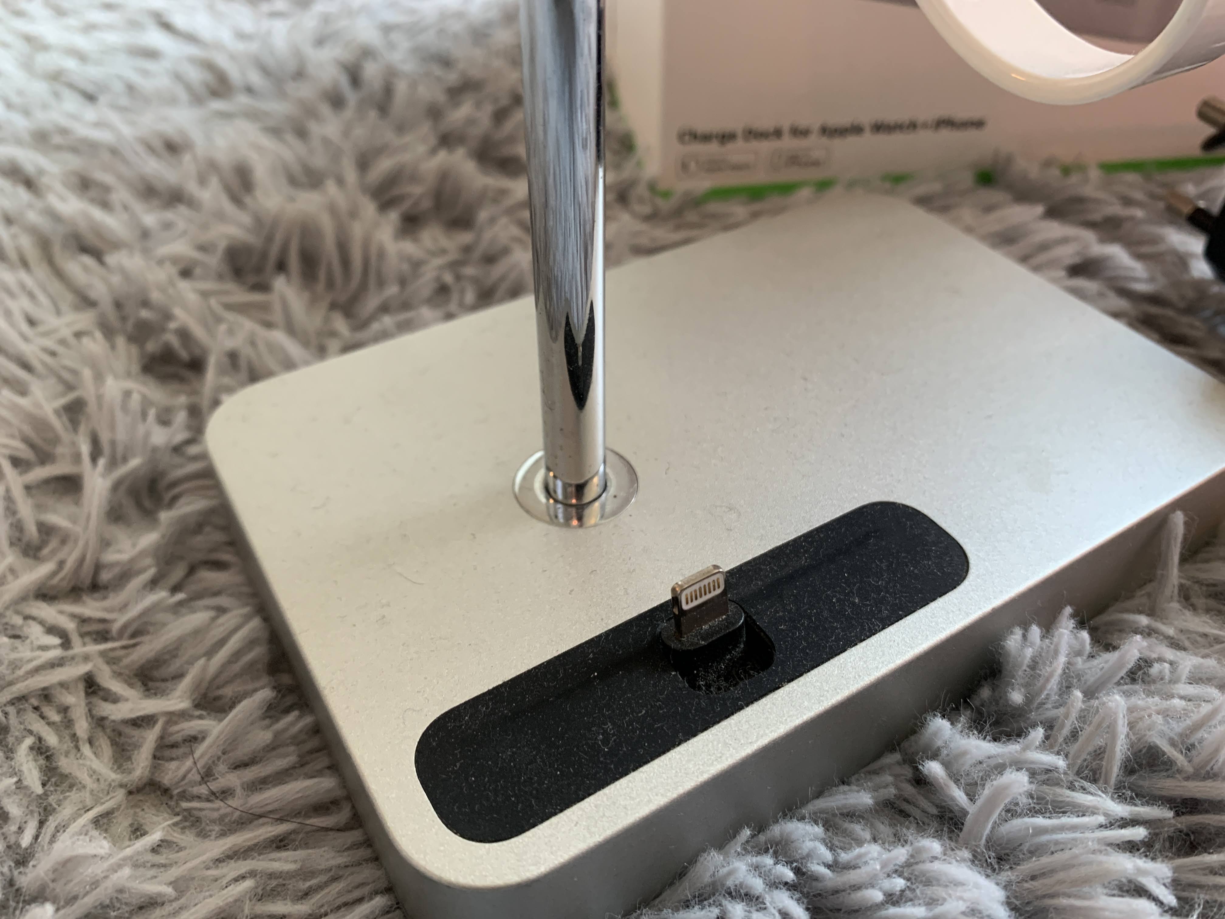 뭐 특별한 건 없고 그냥 저 라이트닝 포트에 아이폰을 꽂으면 되고, 오른쪽에 애플워치를 올려두면 됩니다.
