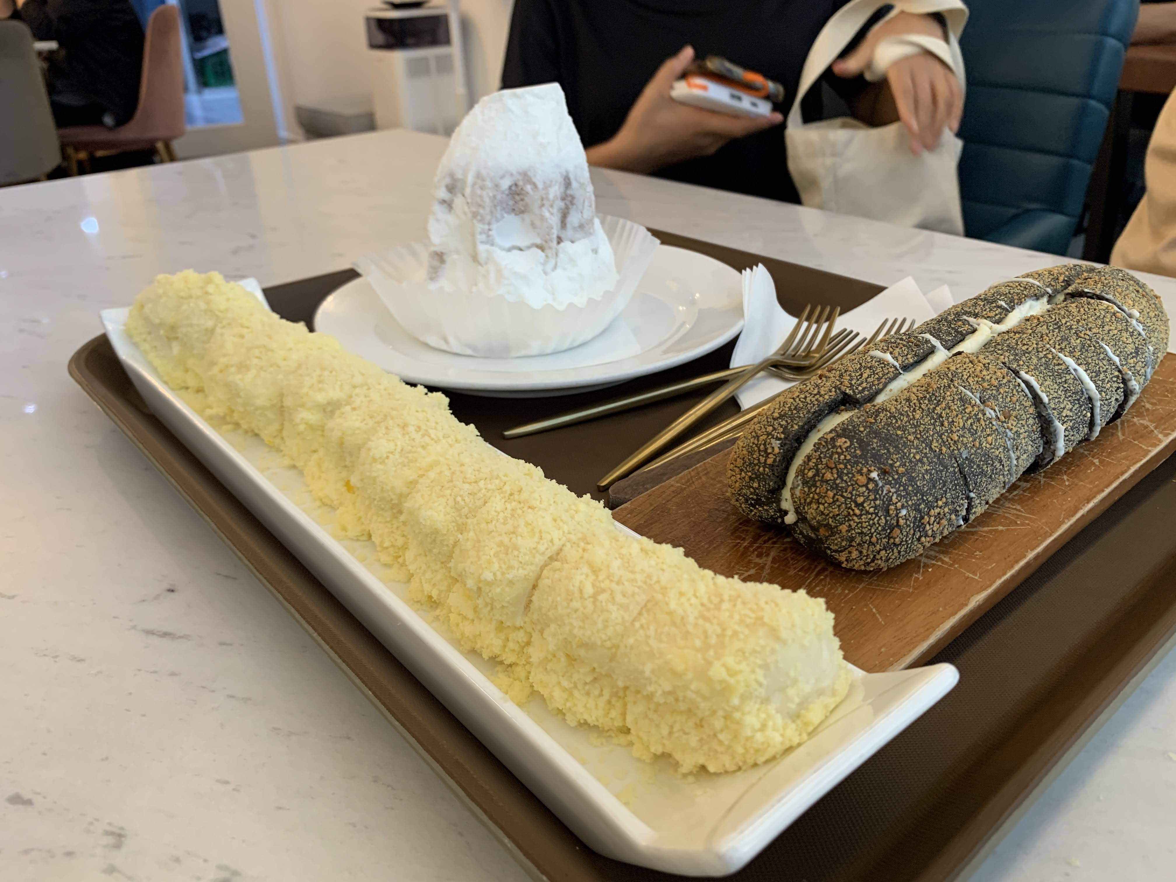 저희가 주문한 인절미 빵이랑 팡도르. 그리고 먹물크림빵.