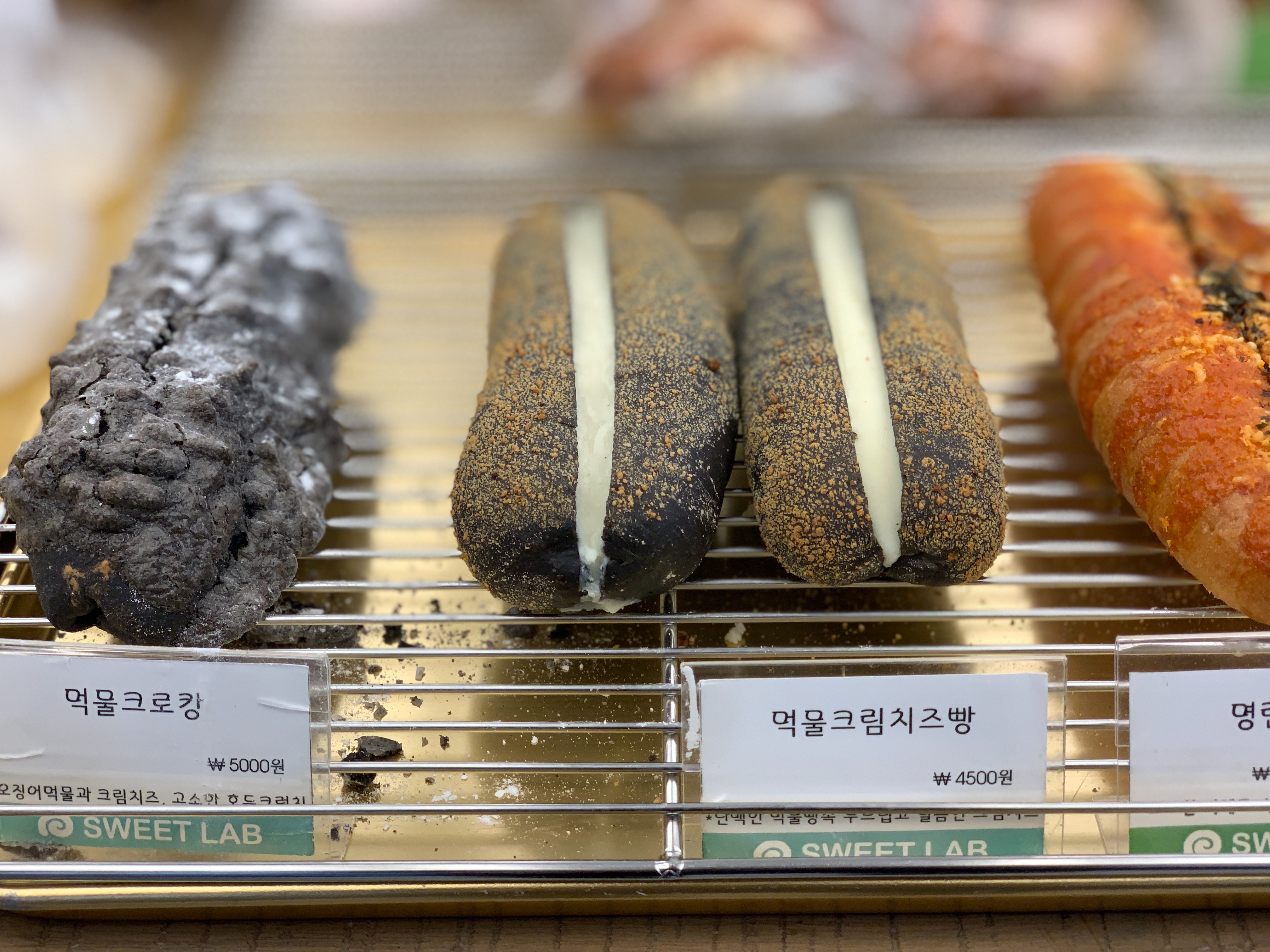 저희가 주문한 인절미 빵이랑 팡도르. 그리고 먹물크림빵.
