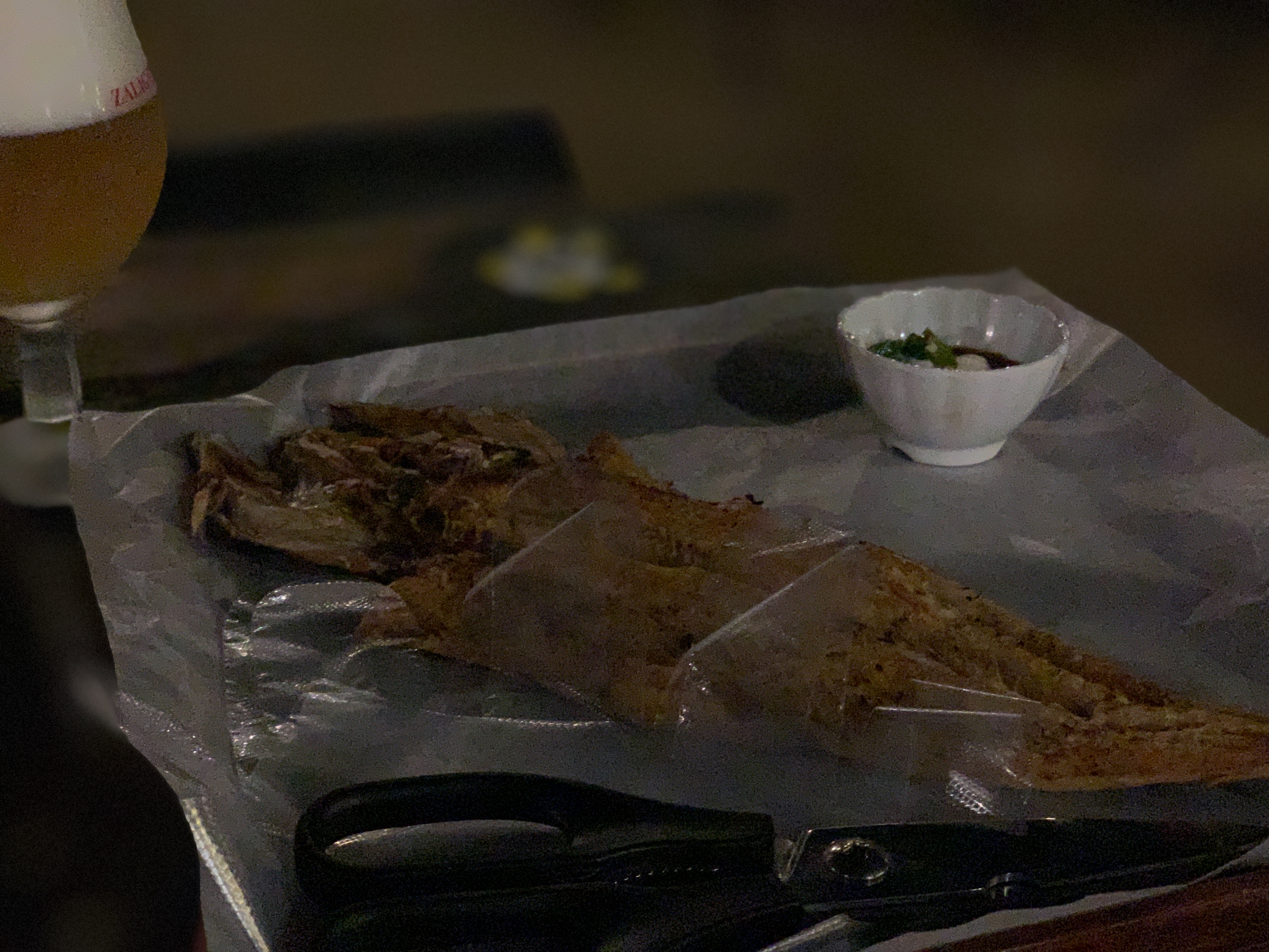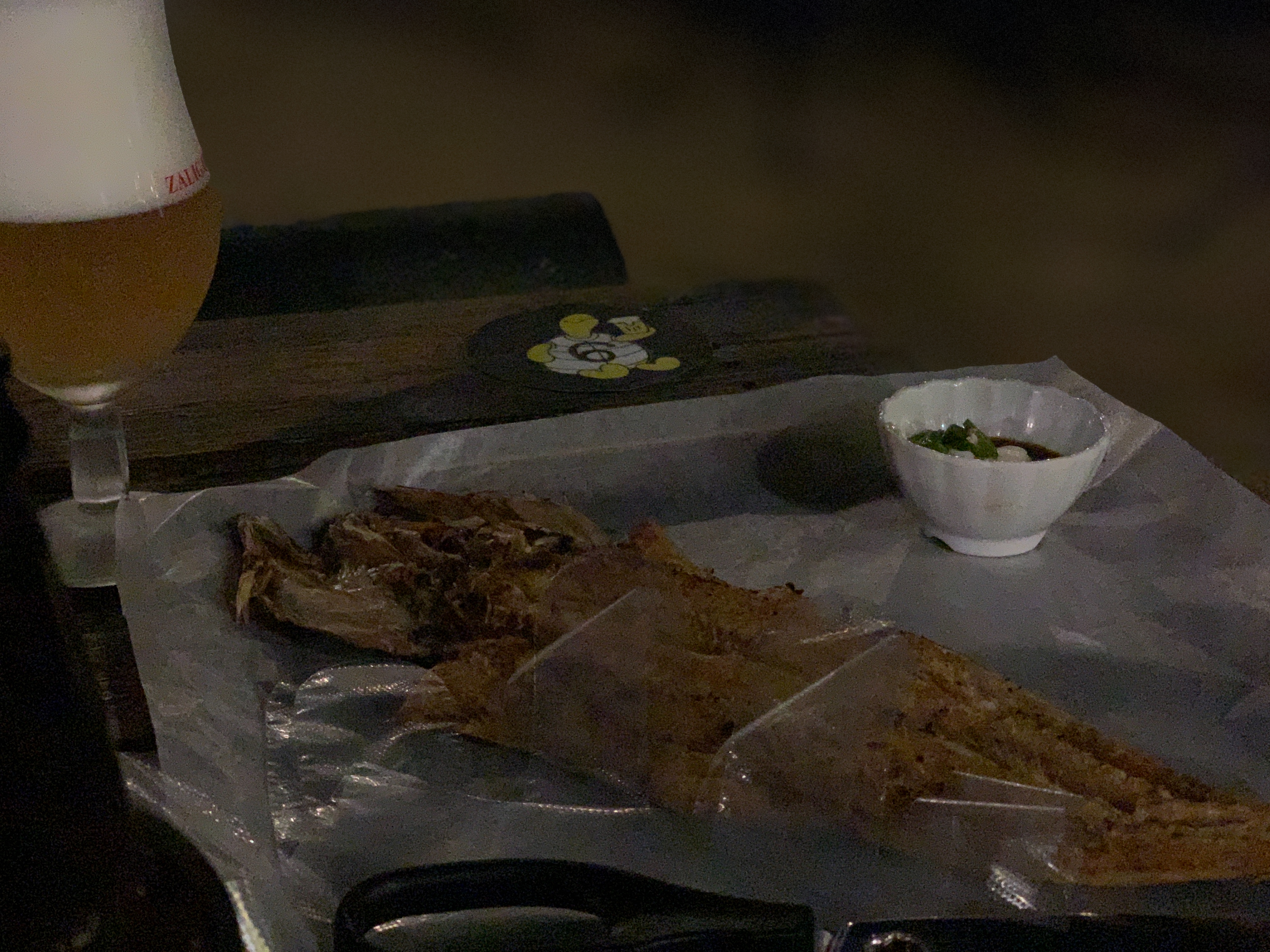 안주는 그냥 간단하게 먹태! 이런 데서는 뭐 묵직한 요리를 먹는 것보다 그냥 이렇게 먹태 같은 거 하나 대충 시켜서 먹는 게 분위기가 더 좋은 것 같습니다.