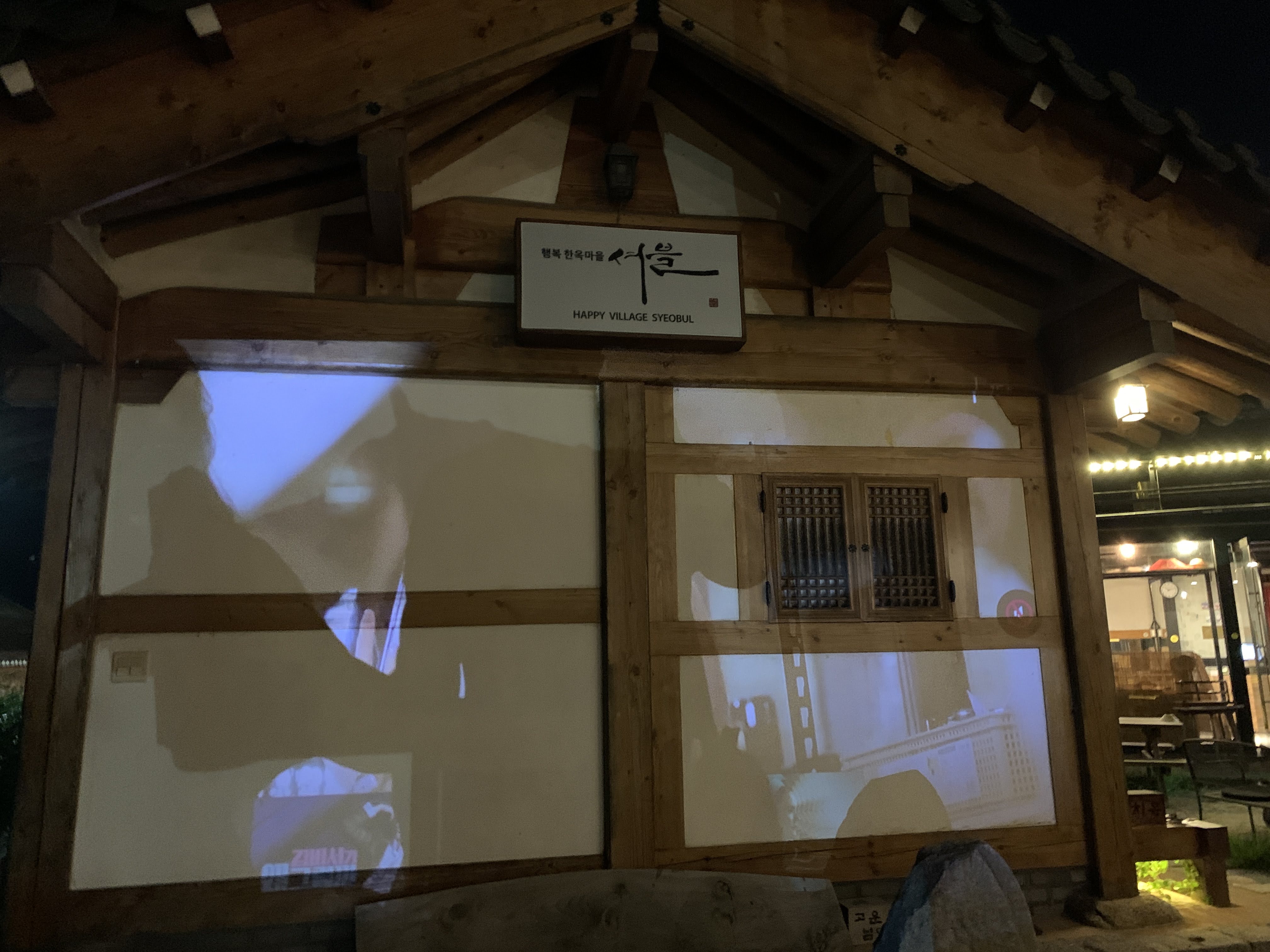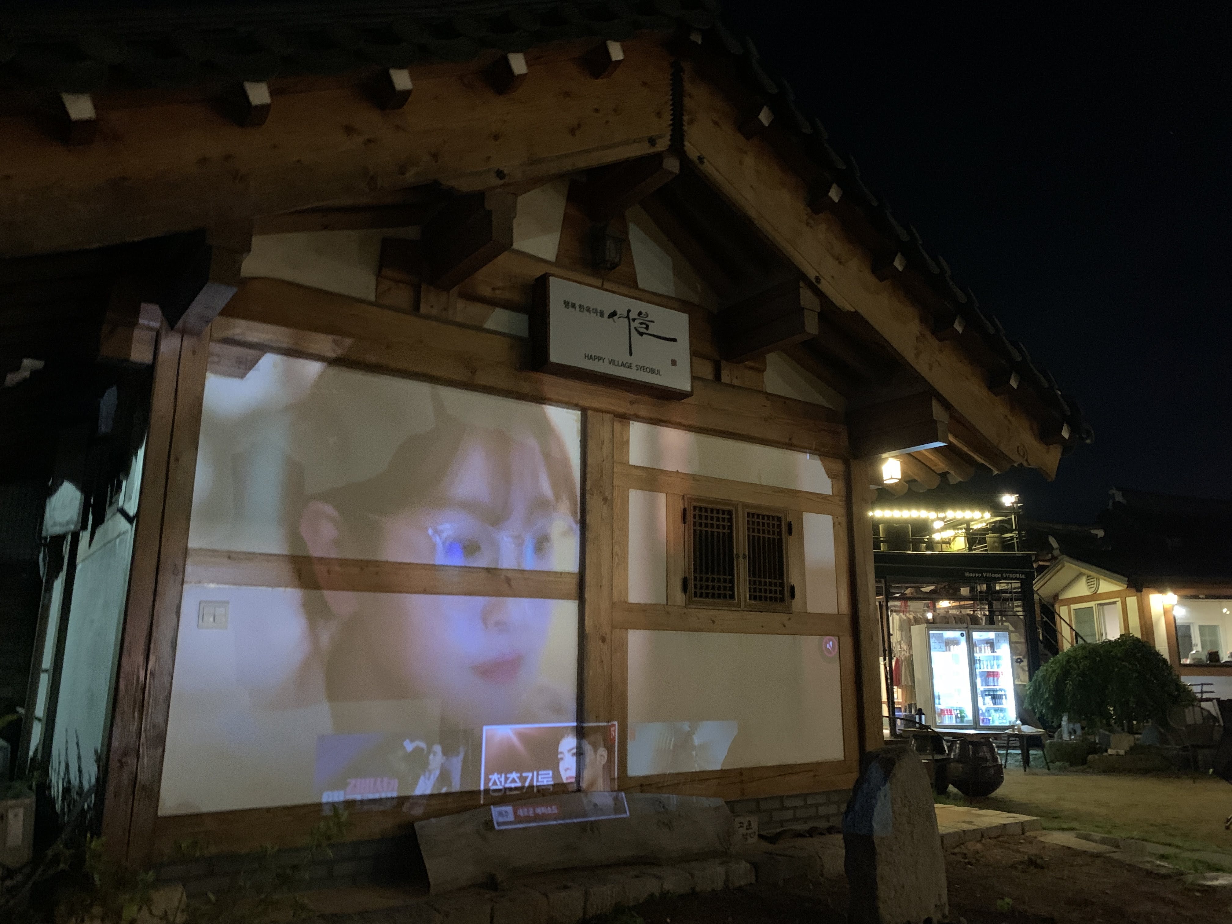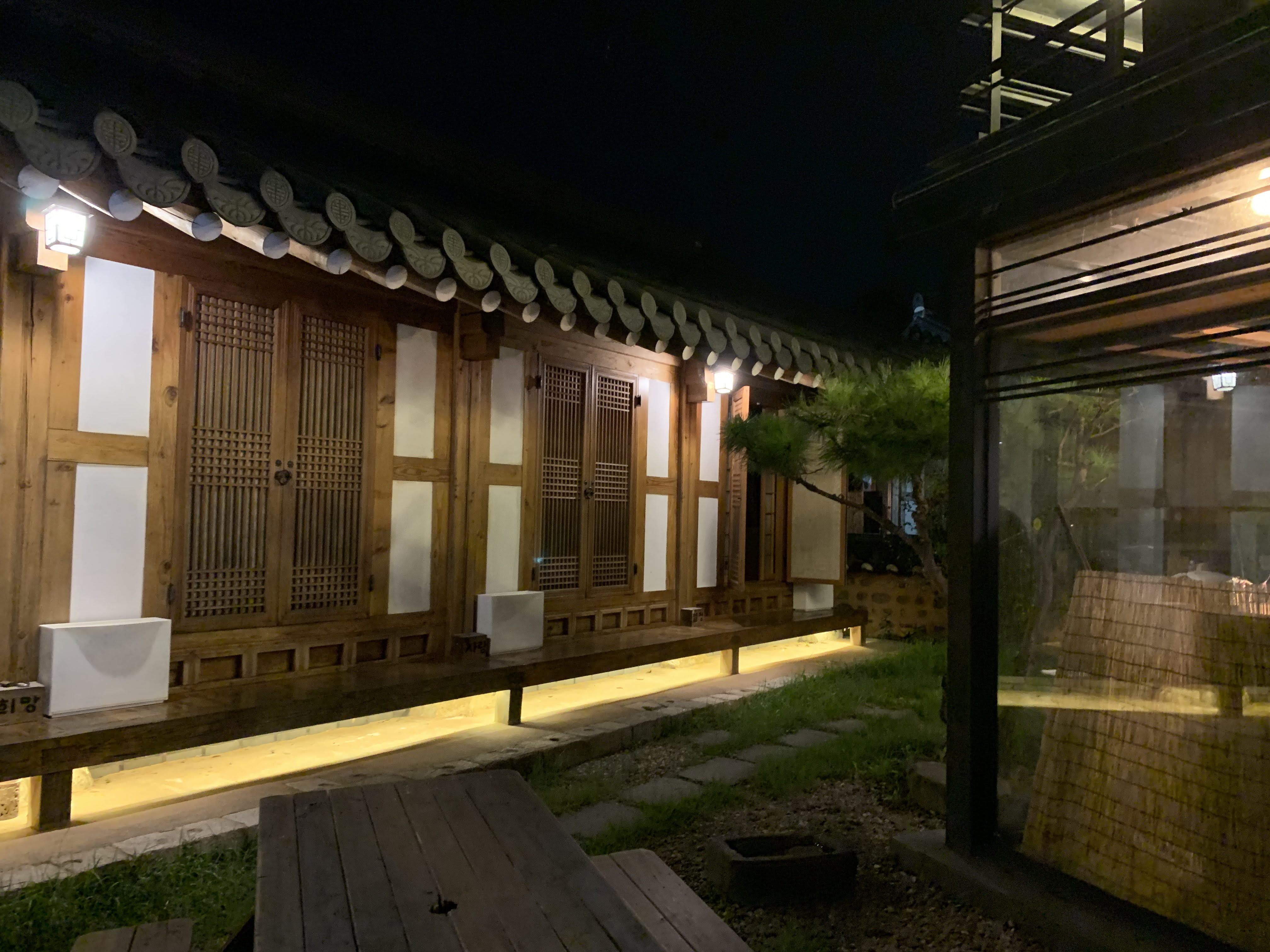 위치는 바로 황리단길 근처에 있고, 이런 식으로 한옥 건물이 있고 그 사이에 있는 마당에 있는 테이블에서 맥주를 마시는 곳입니다.