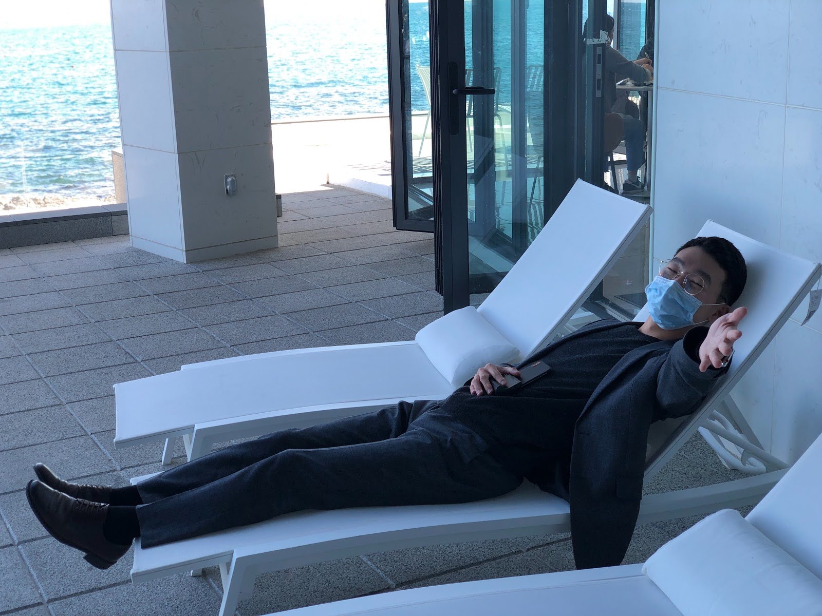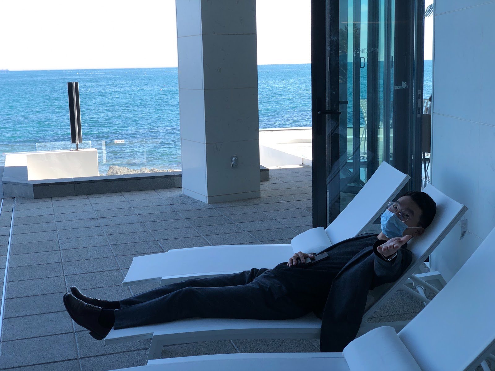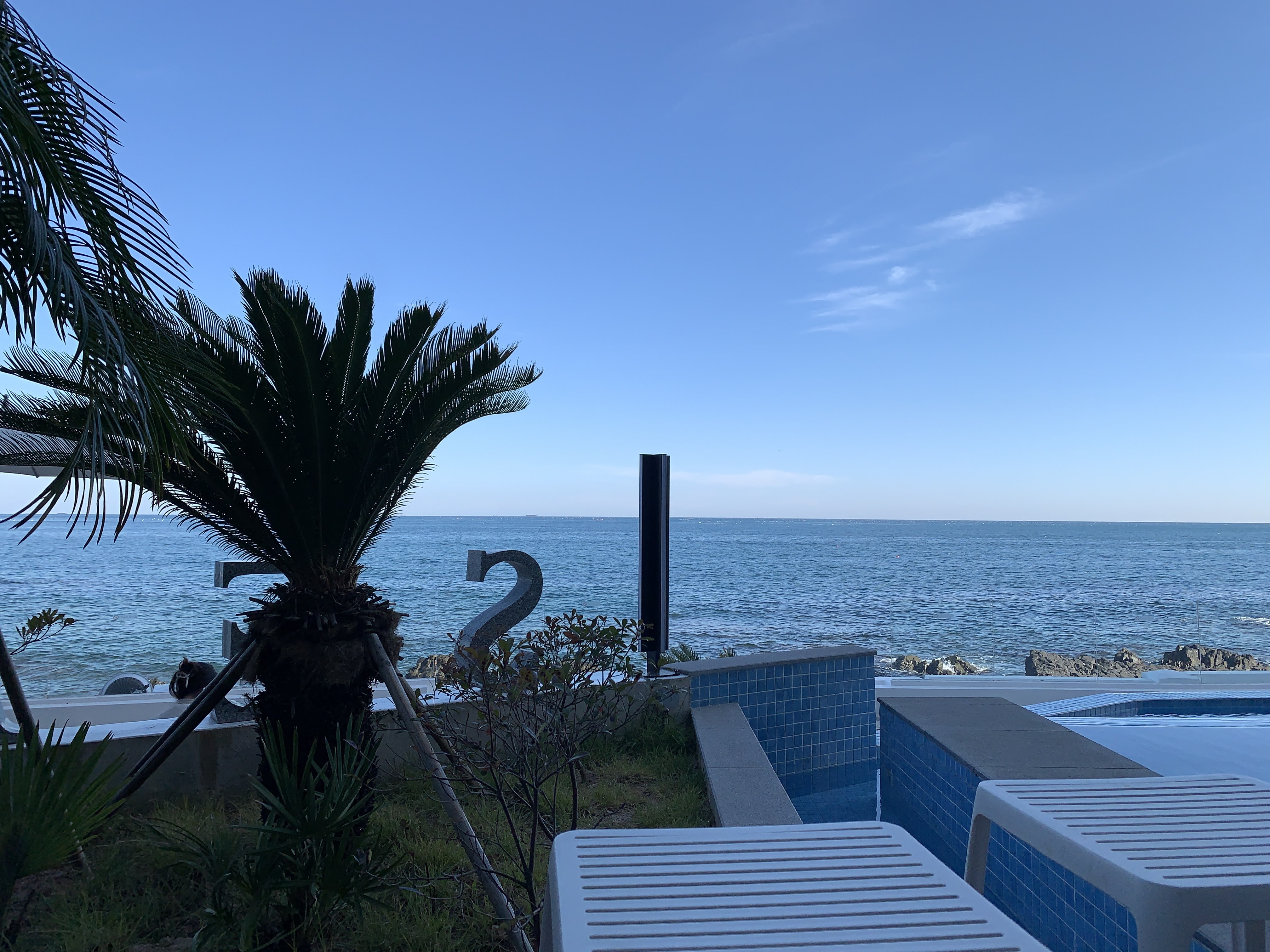 앞에는 바다가 보이고 안에는 나무가 있어서 굉장히 청량한 느낌이 듭니다