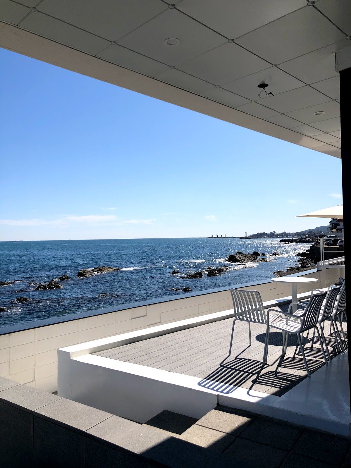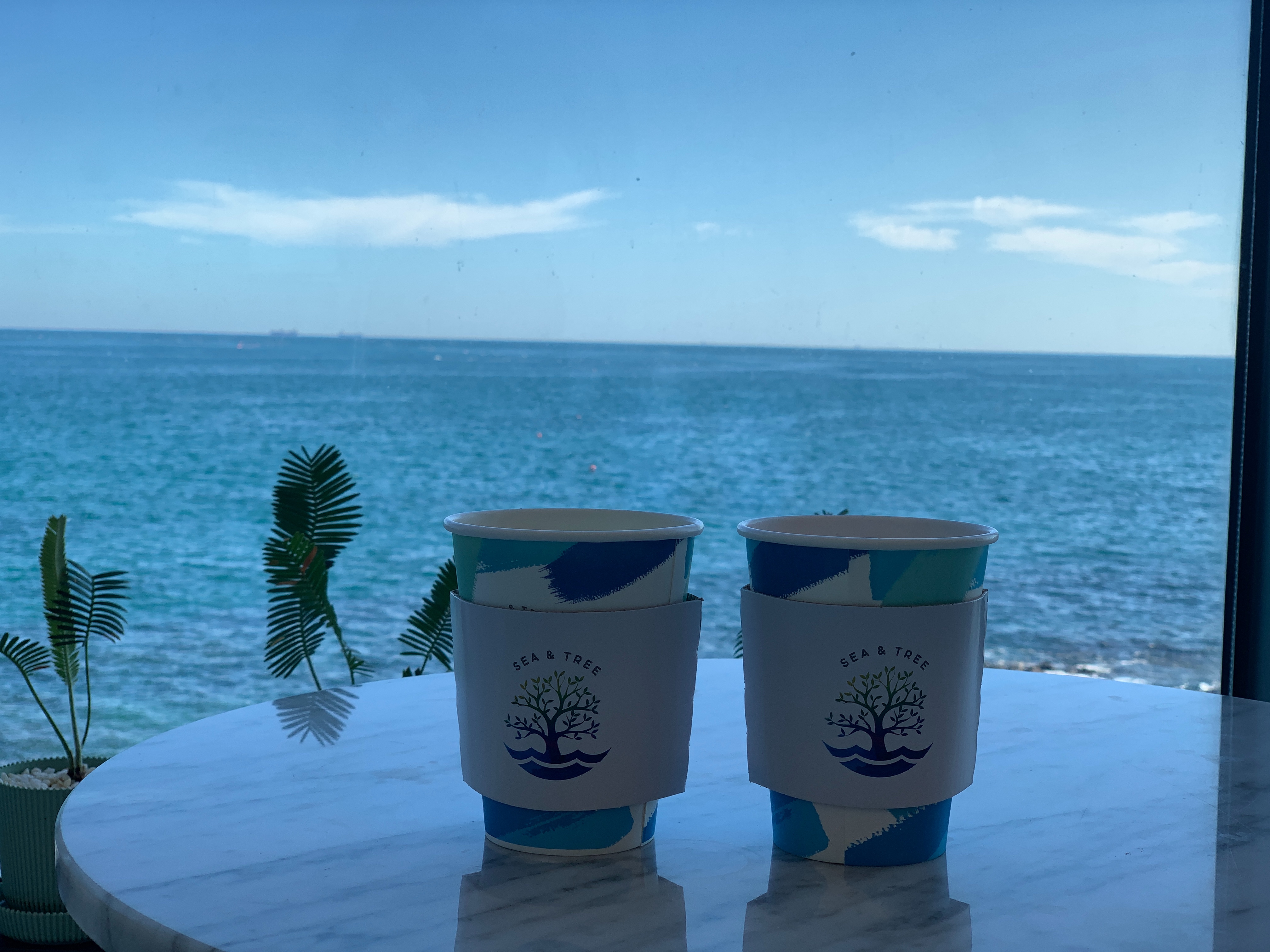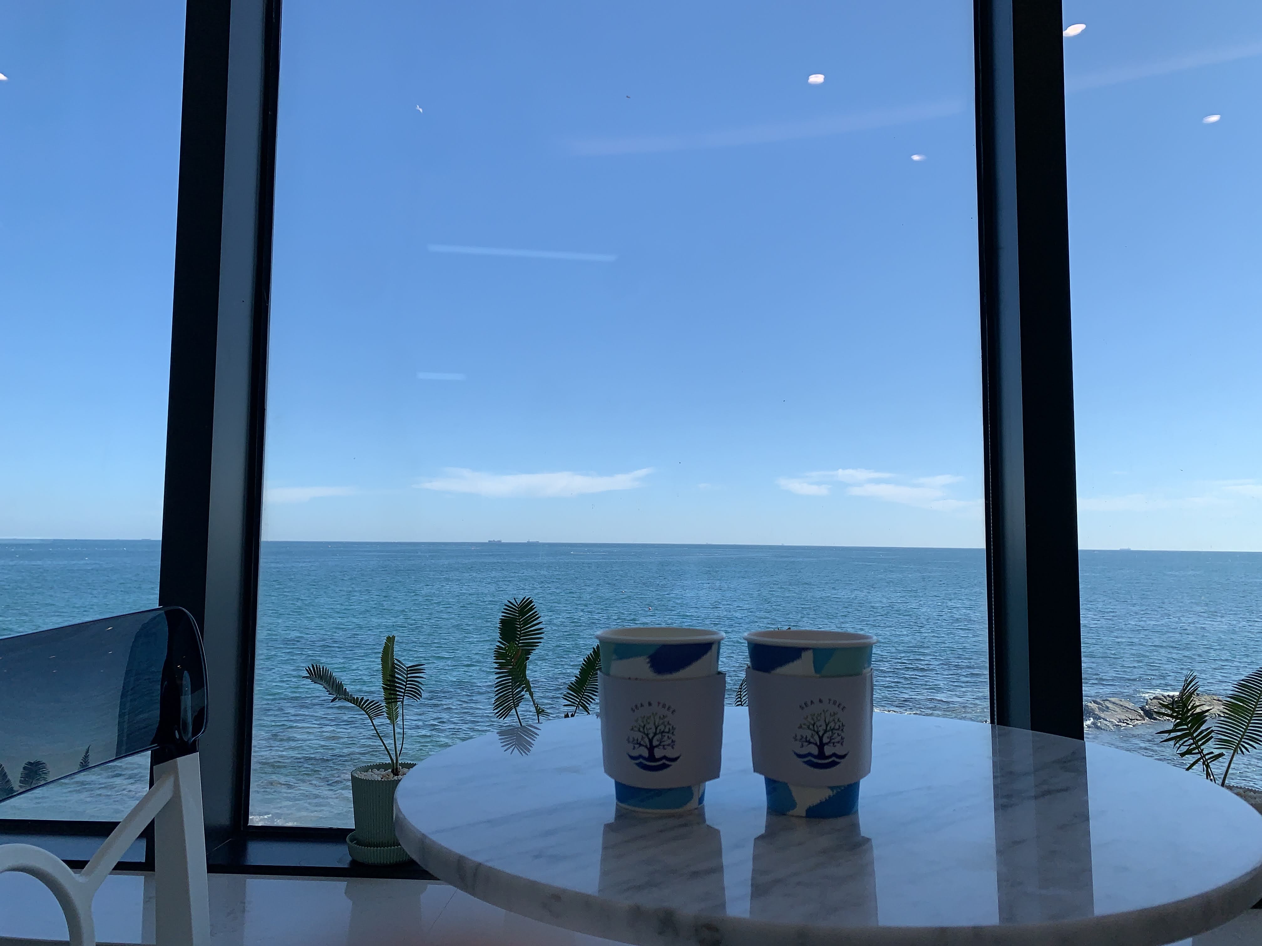 앞에는 바다가 보이고 안에는 나무가 있어서 굉장히 청량한 느낌이 듭니다