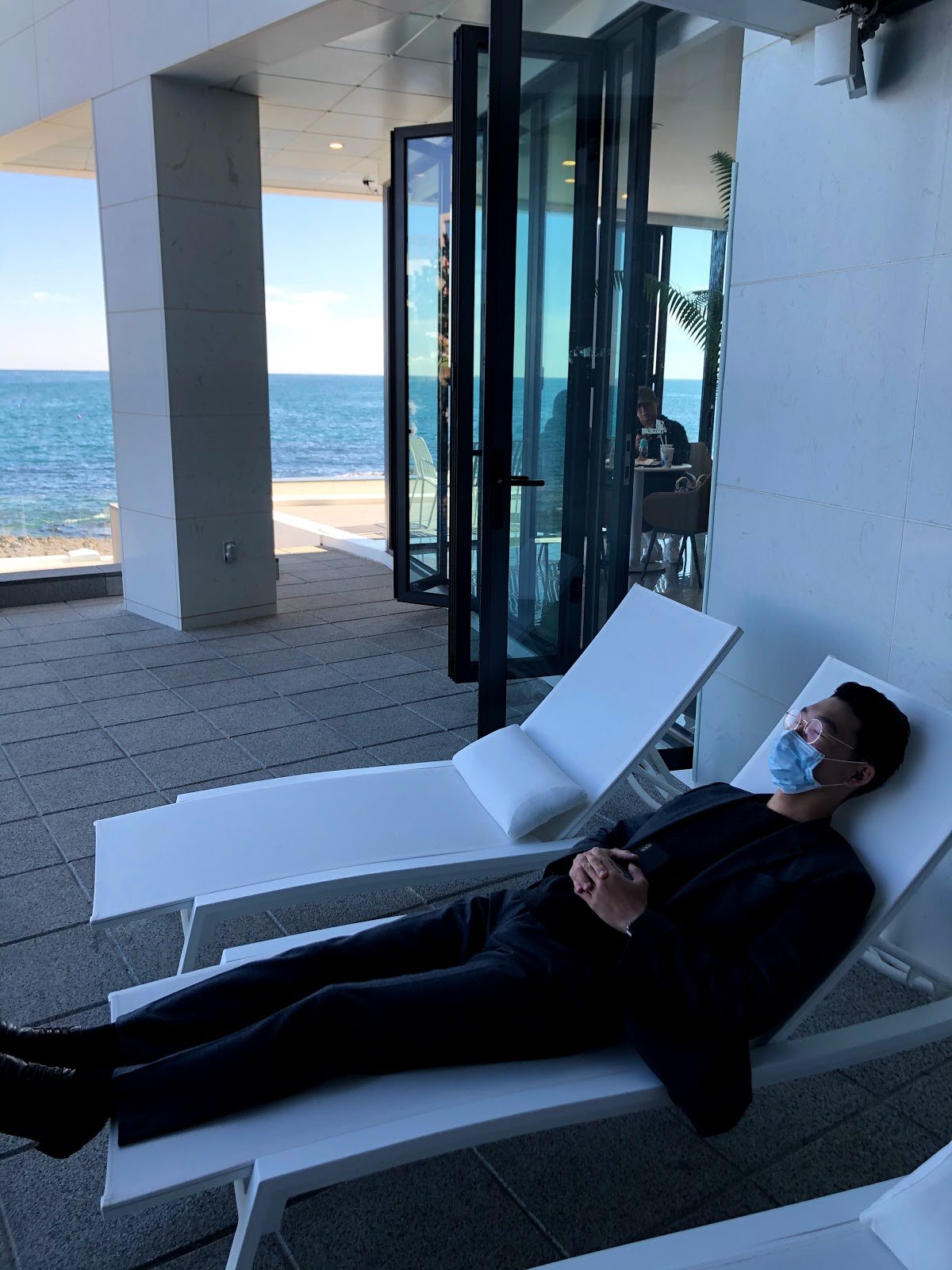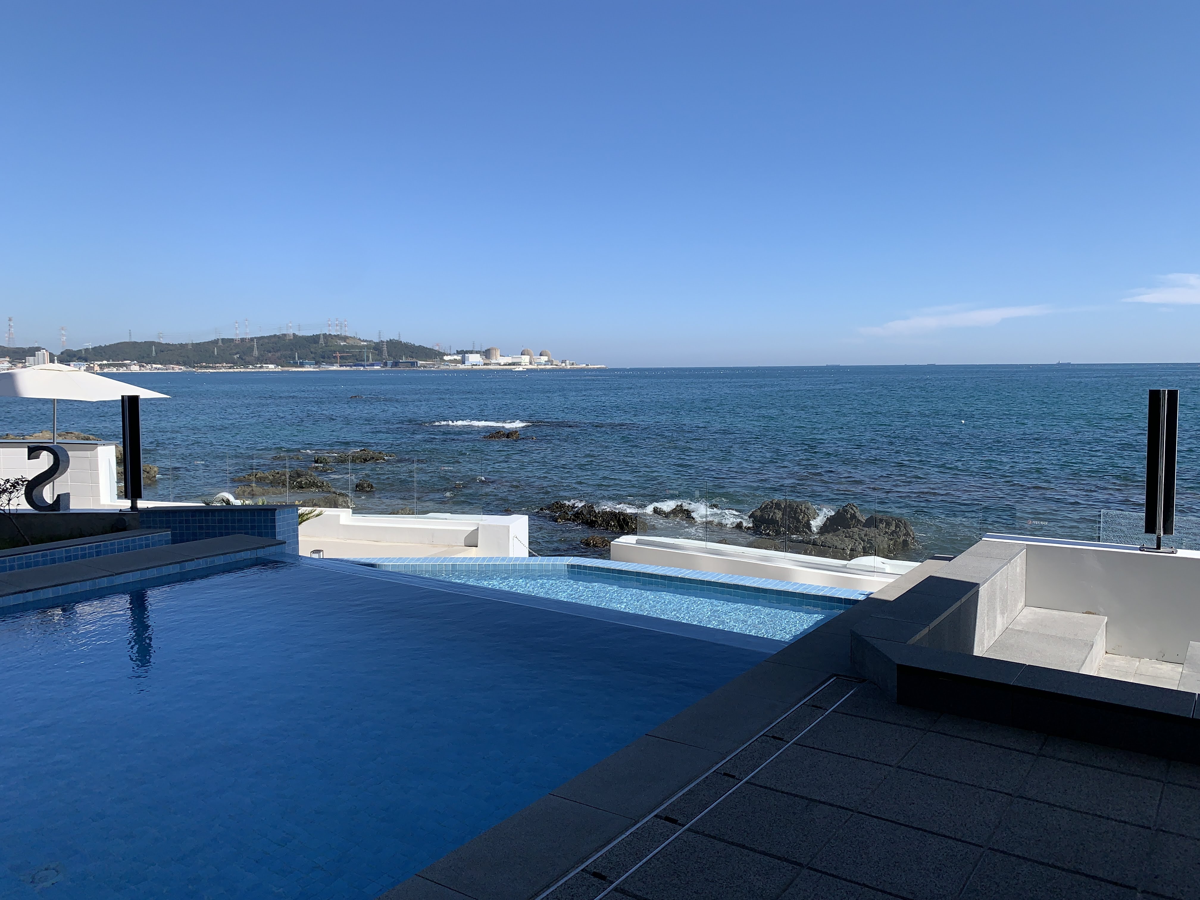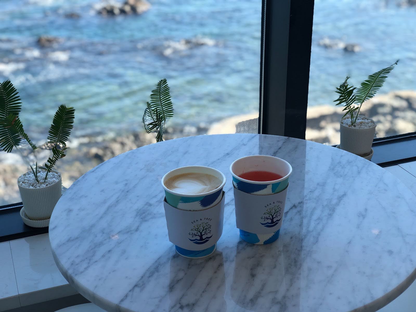 앞에는 바다가 보이고 안에는 나무가 있어서 굉장히 청량한 느낌이 듭니다