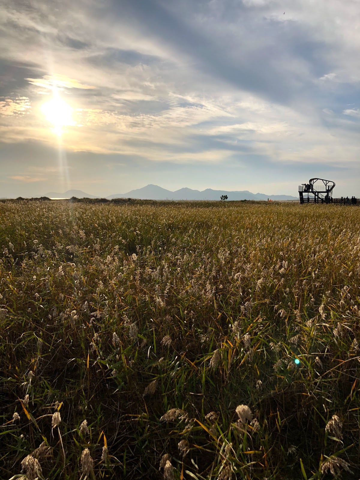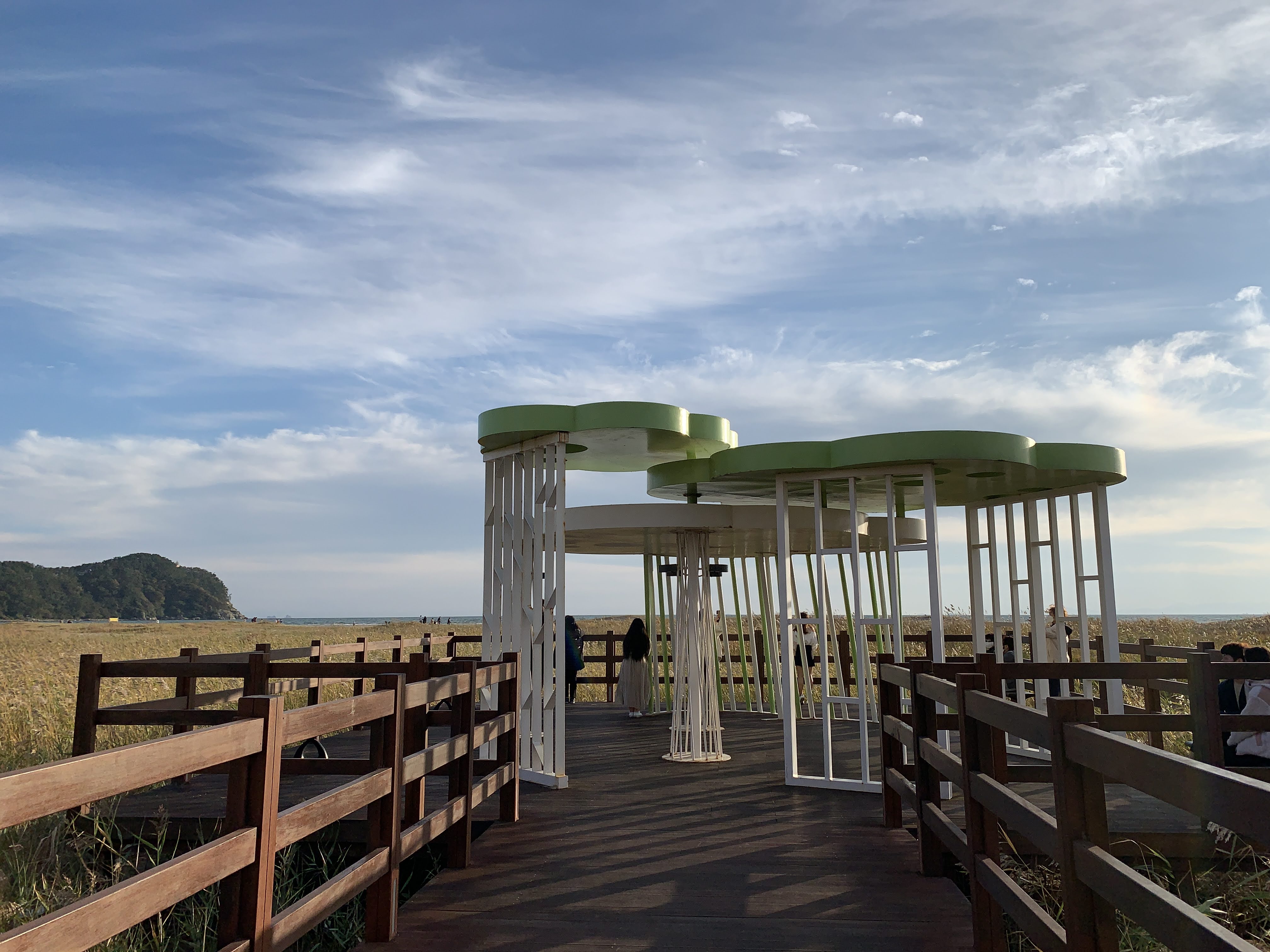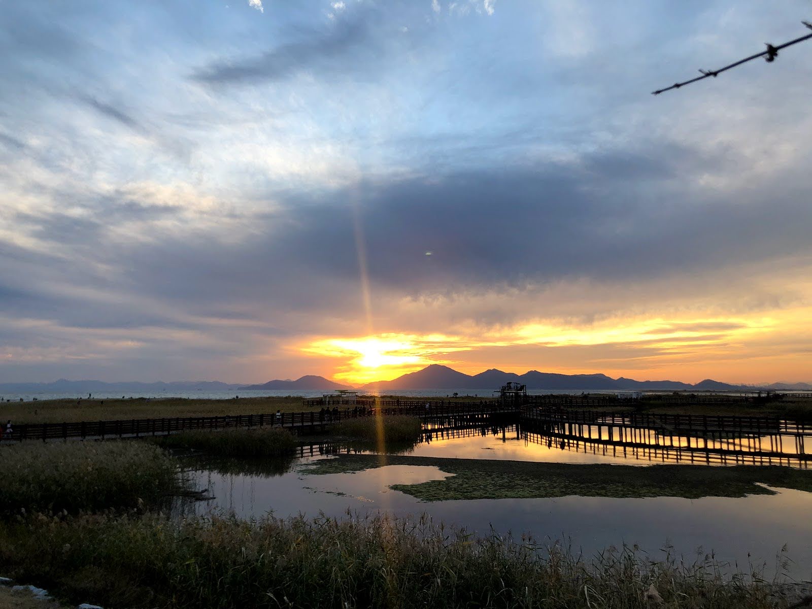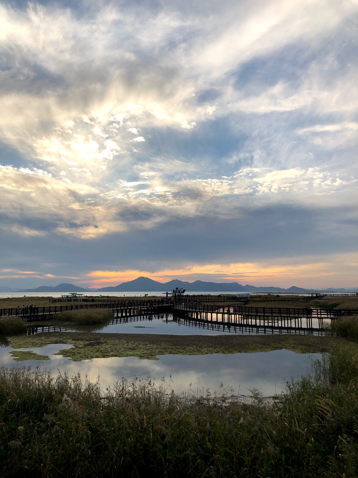 저는 해수욕장이라고 하니까 당연히 모래사장 펼쳐져 있는 그런 일반적인 해수욕장에 상상했는데 여기는 저런 갈대가 쭉 펼쳐져 있습니다. 석양 질 시간 쯤 되니 사진 찍으러 오신 분들이 대포 카메라 들고 석양을 기다리고 있더라구요.