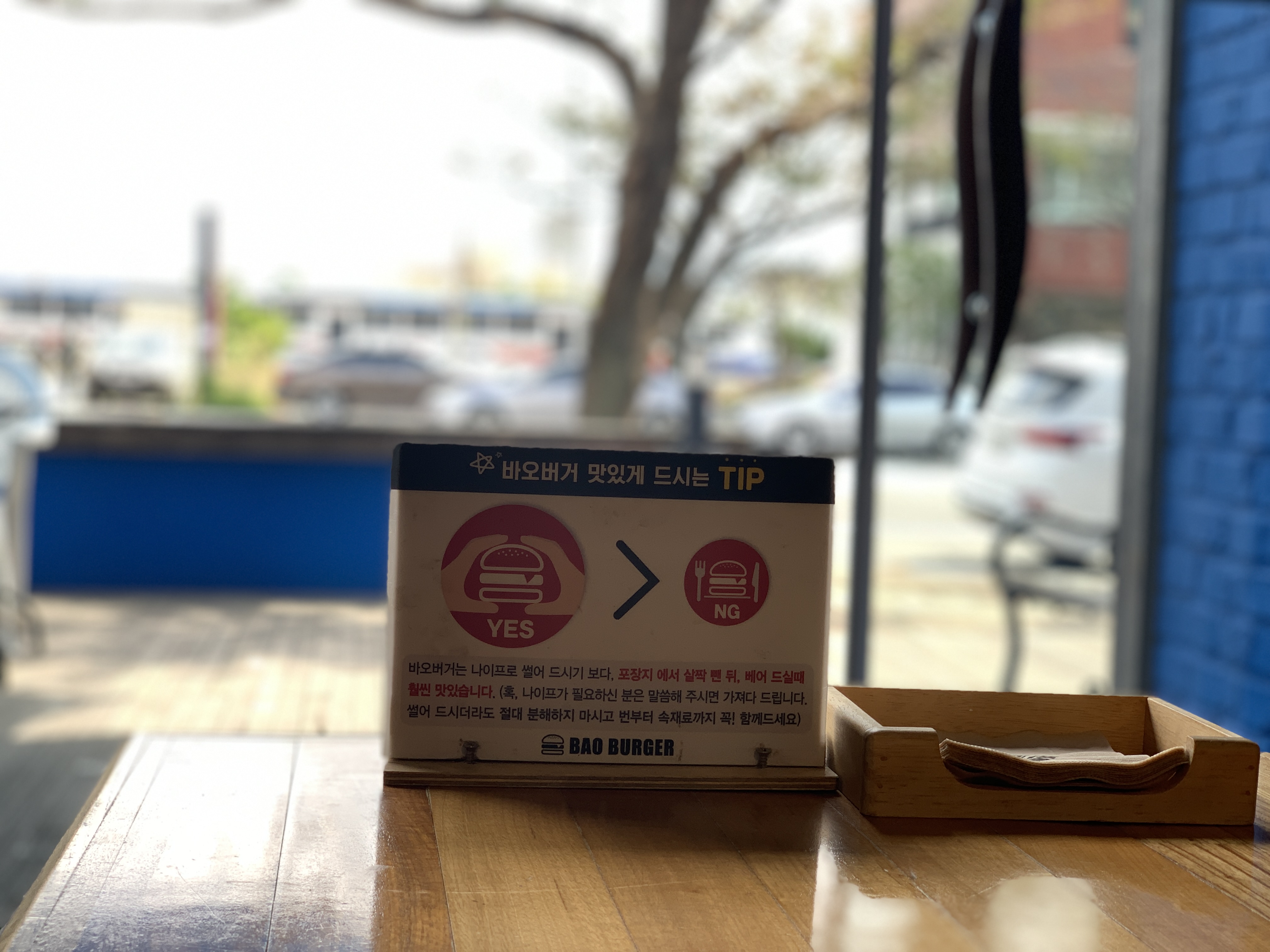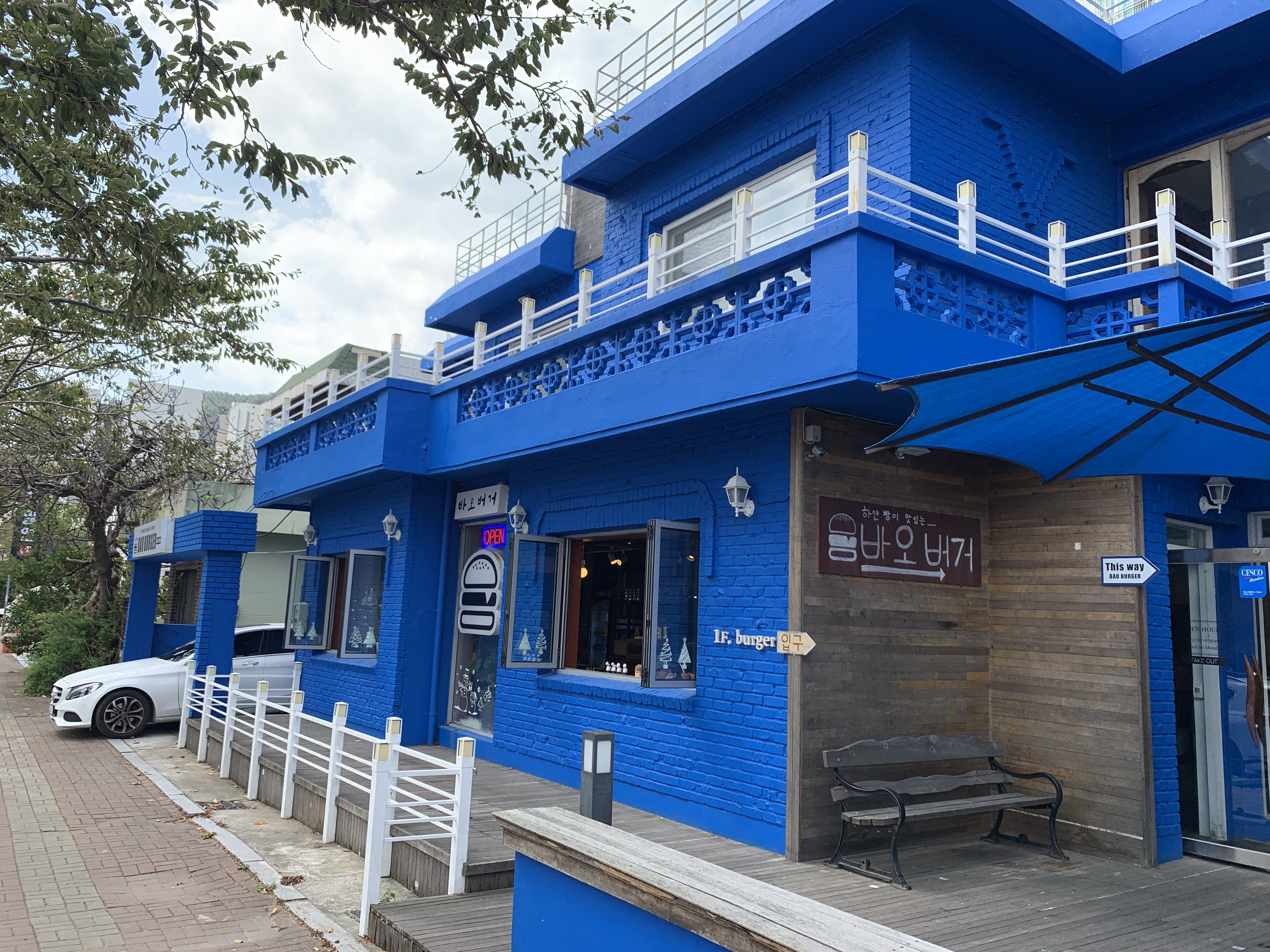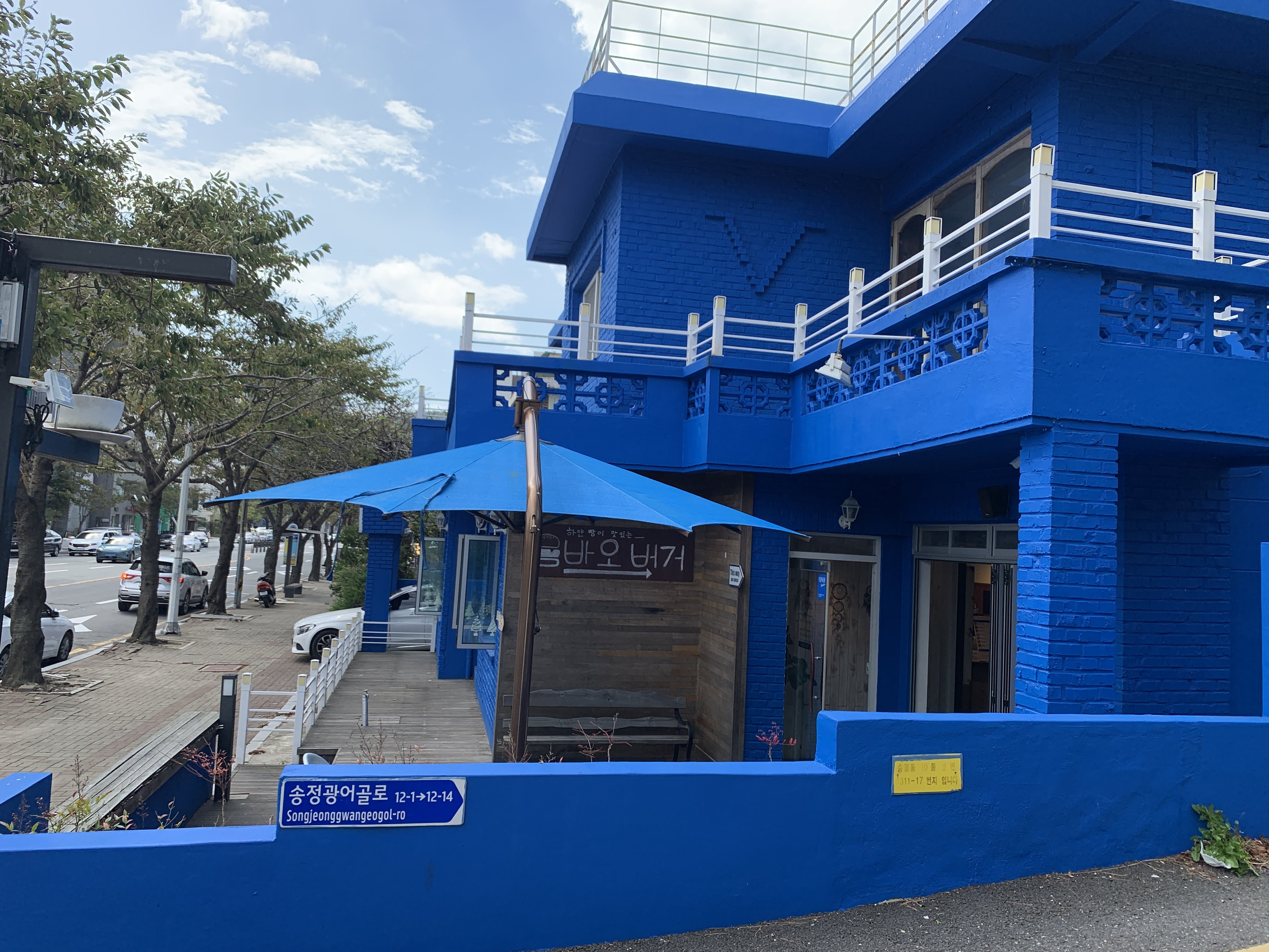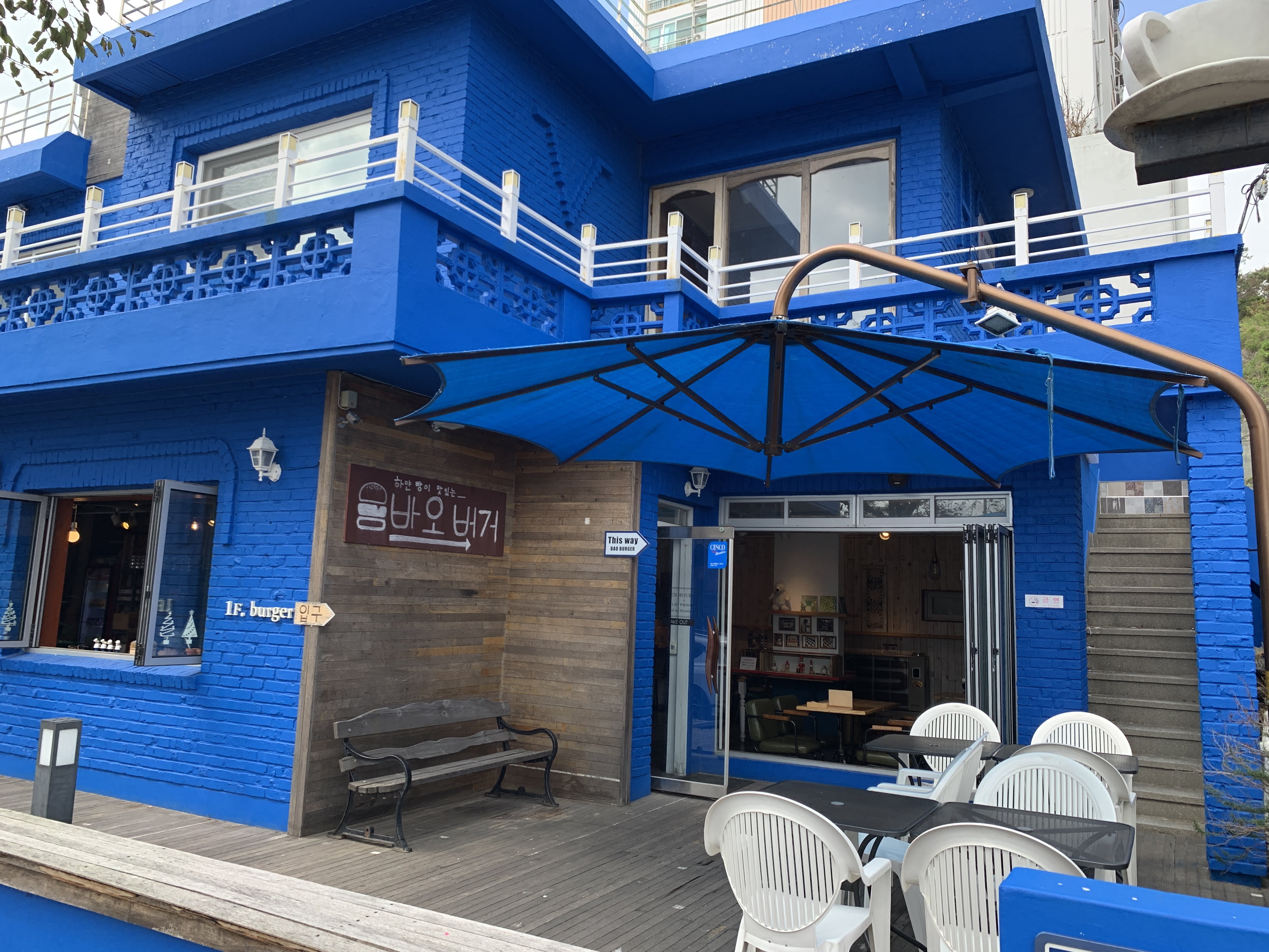 가게 외관은 이런 식으로 생겼습니다. 파란색으로 칠해진 외부 인테리어가 눈에 띕니다.