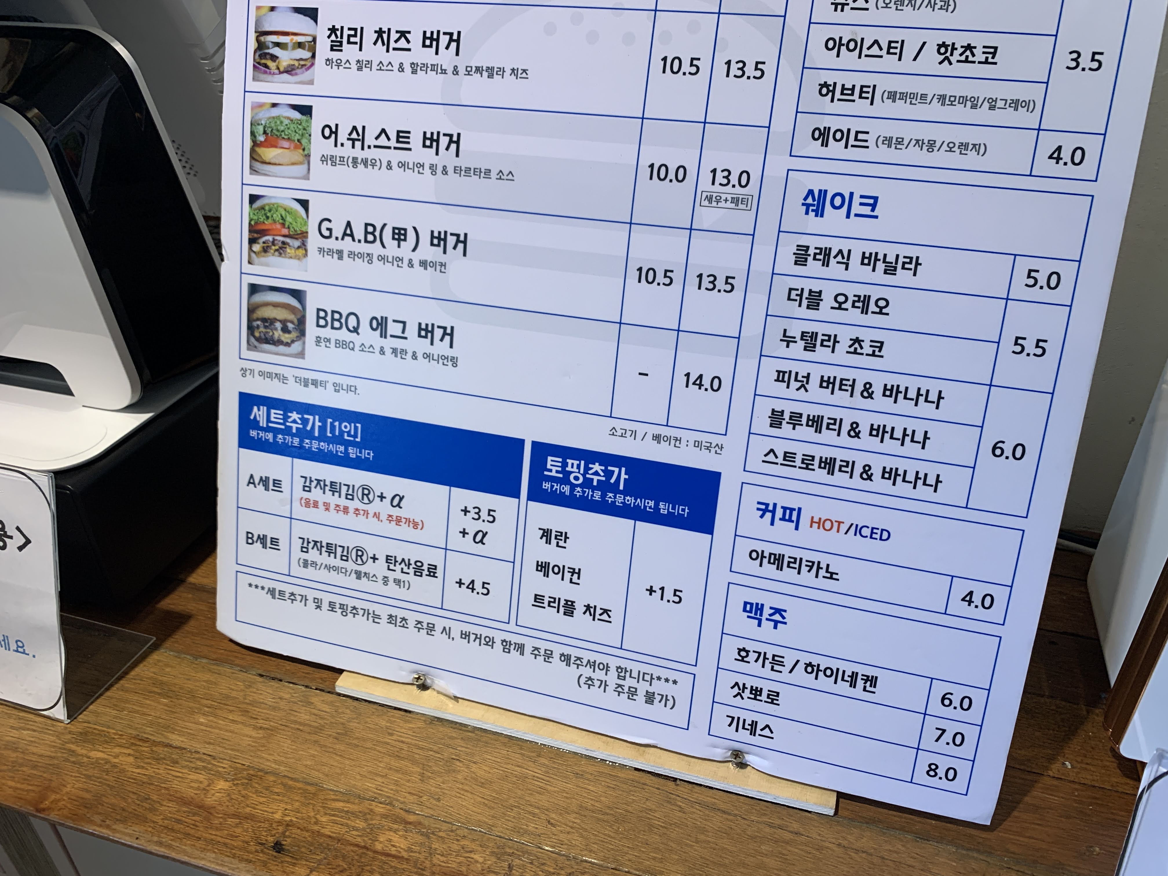 가격은 보시는 것처럼 더블 패티가 대답 12,000원 정도 합니다