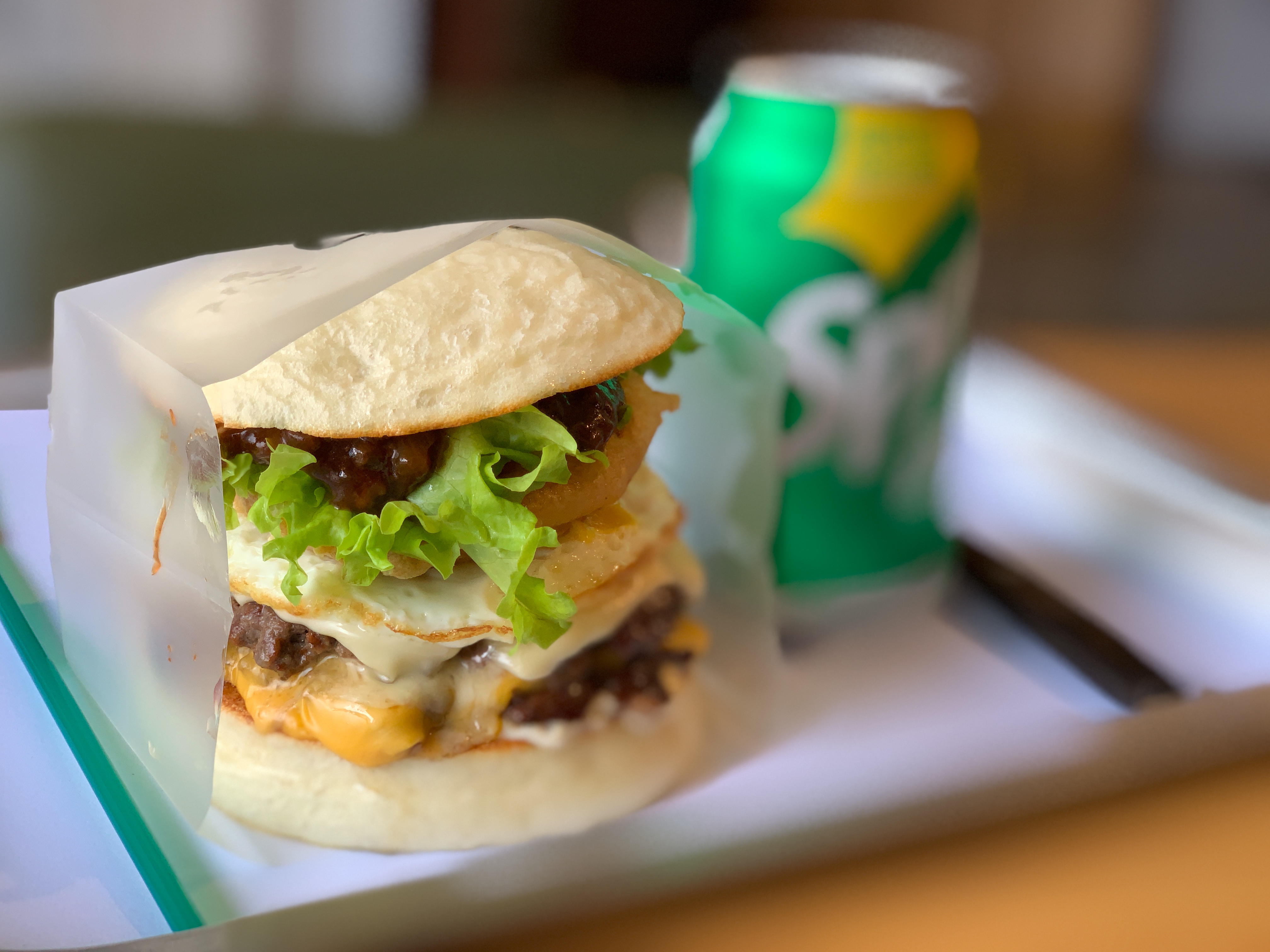 일반적인 햄버거 빵이 아니라 약간 바삭바삭한 뻥튀기 같은 느낌인데 식감도 독특하고 상당히 맛있습니다