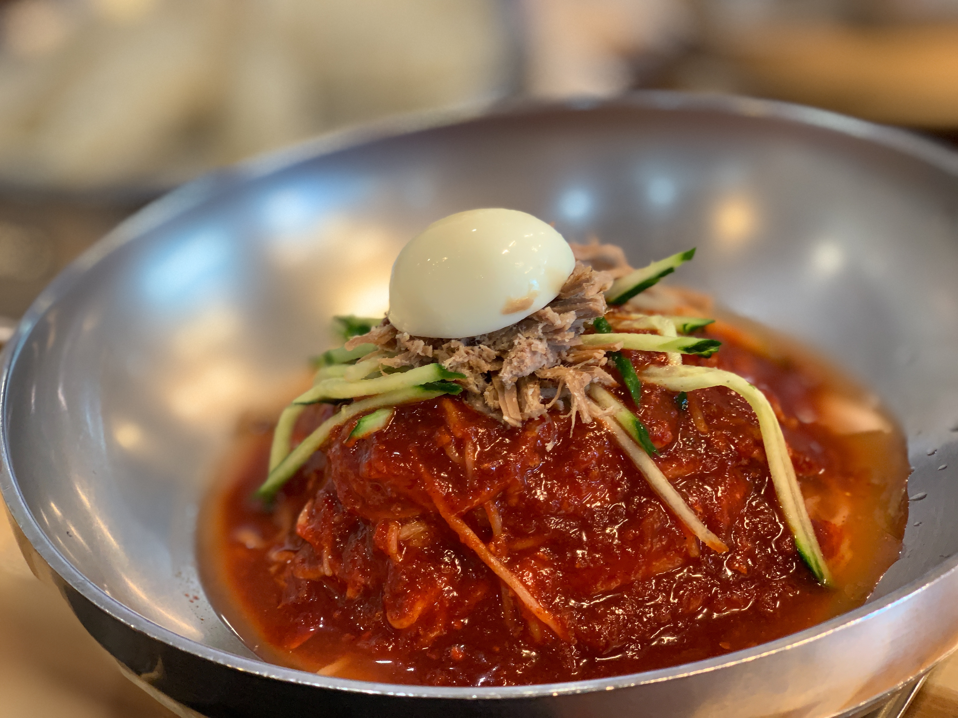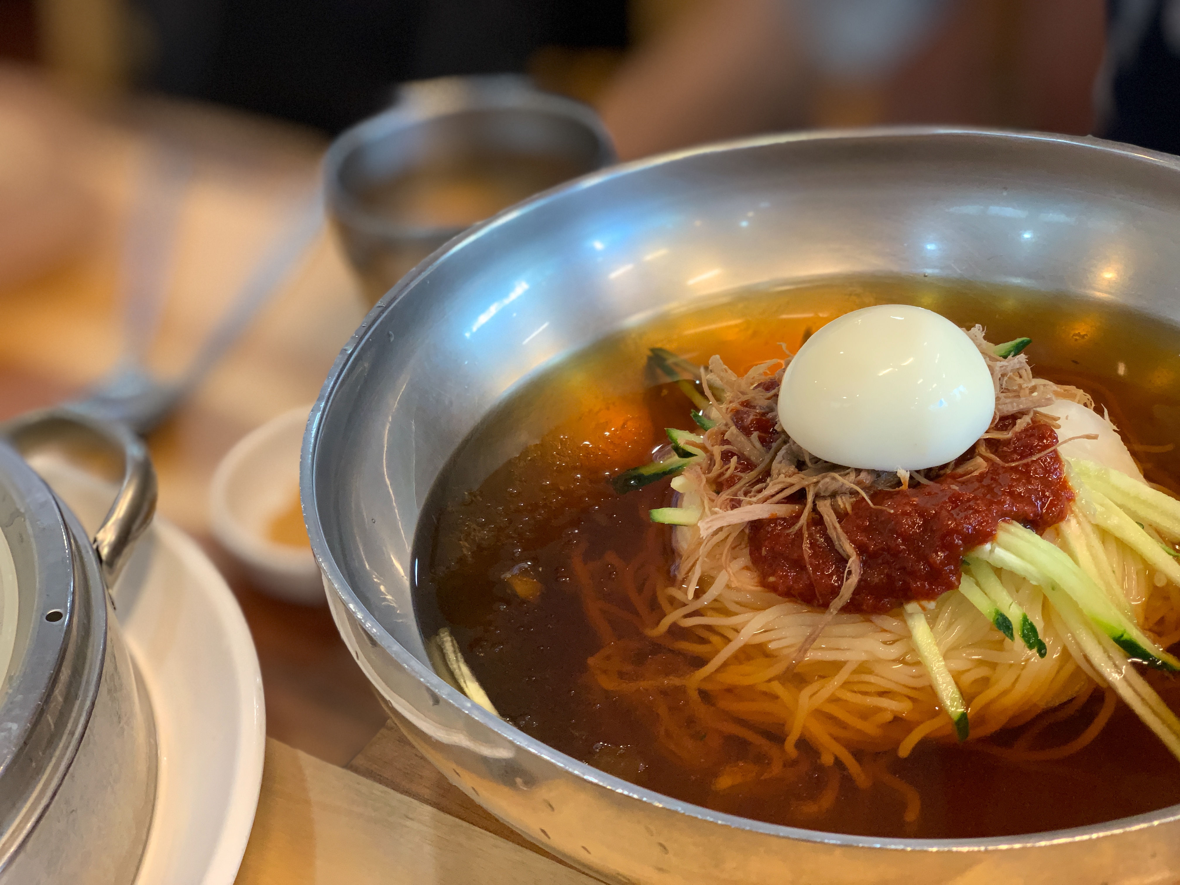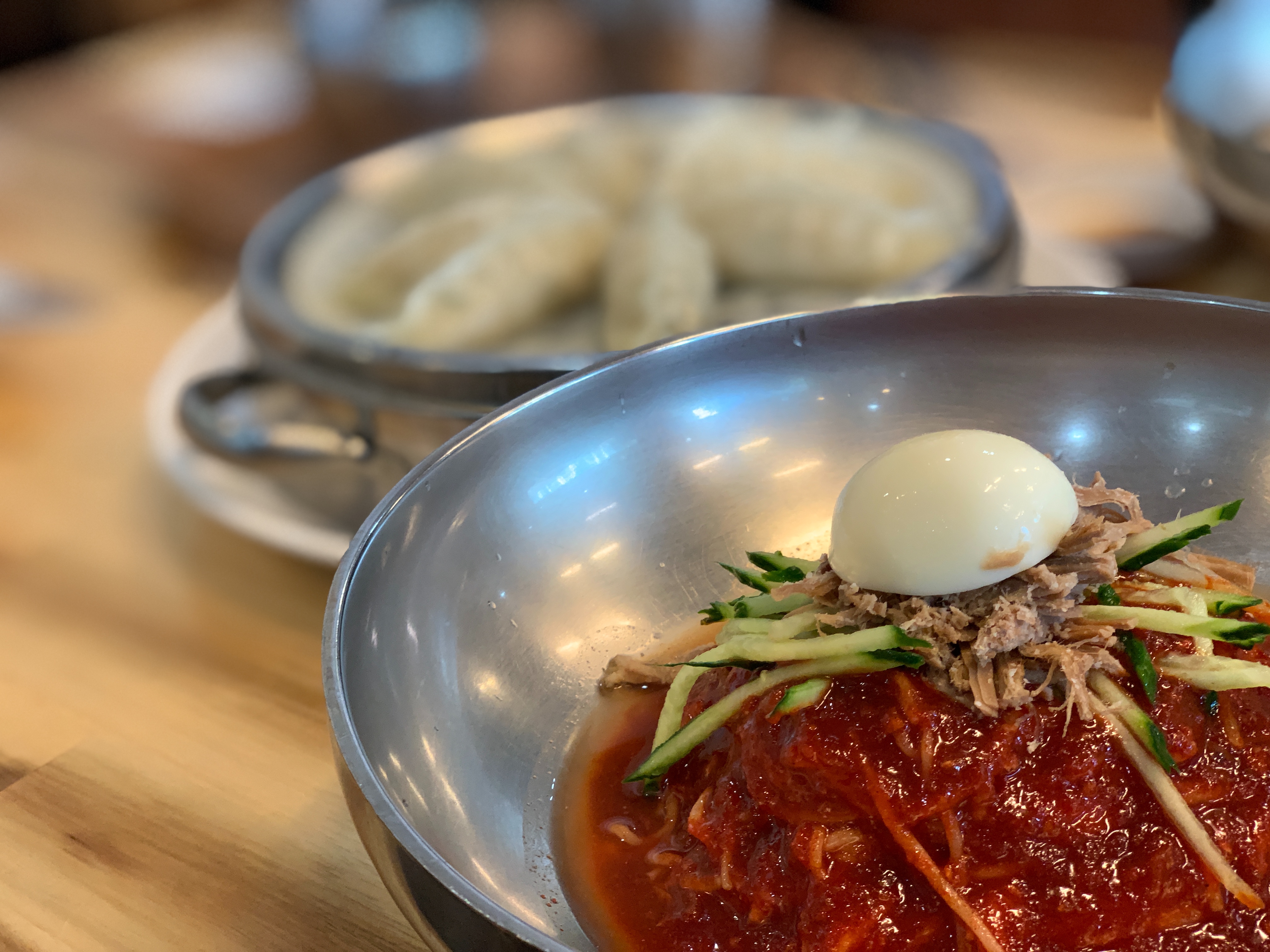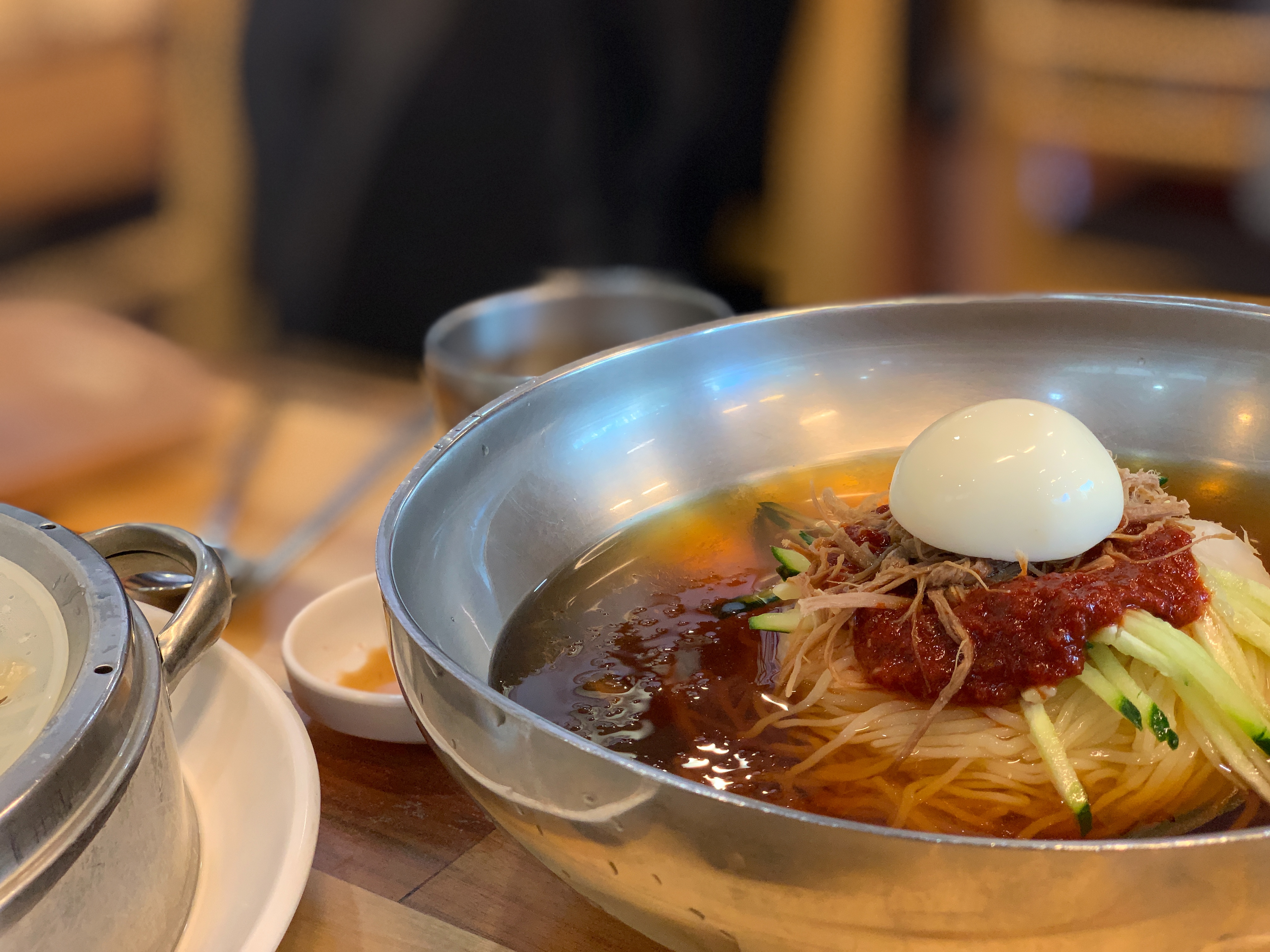 그러면 비빔면 하나만 시켜서 비빔면과 물냉면 두 개를 다 경험할 수 있겠죠. 물론 온육수를 붓는 것이기 때문에 냉밀면이랑은 또 다른 맛이 나겠지만요. 겨울이고 하니 온육수가 굉장히 잘 어울릴 것 같다는 생각이 듭니다.