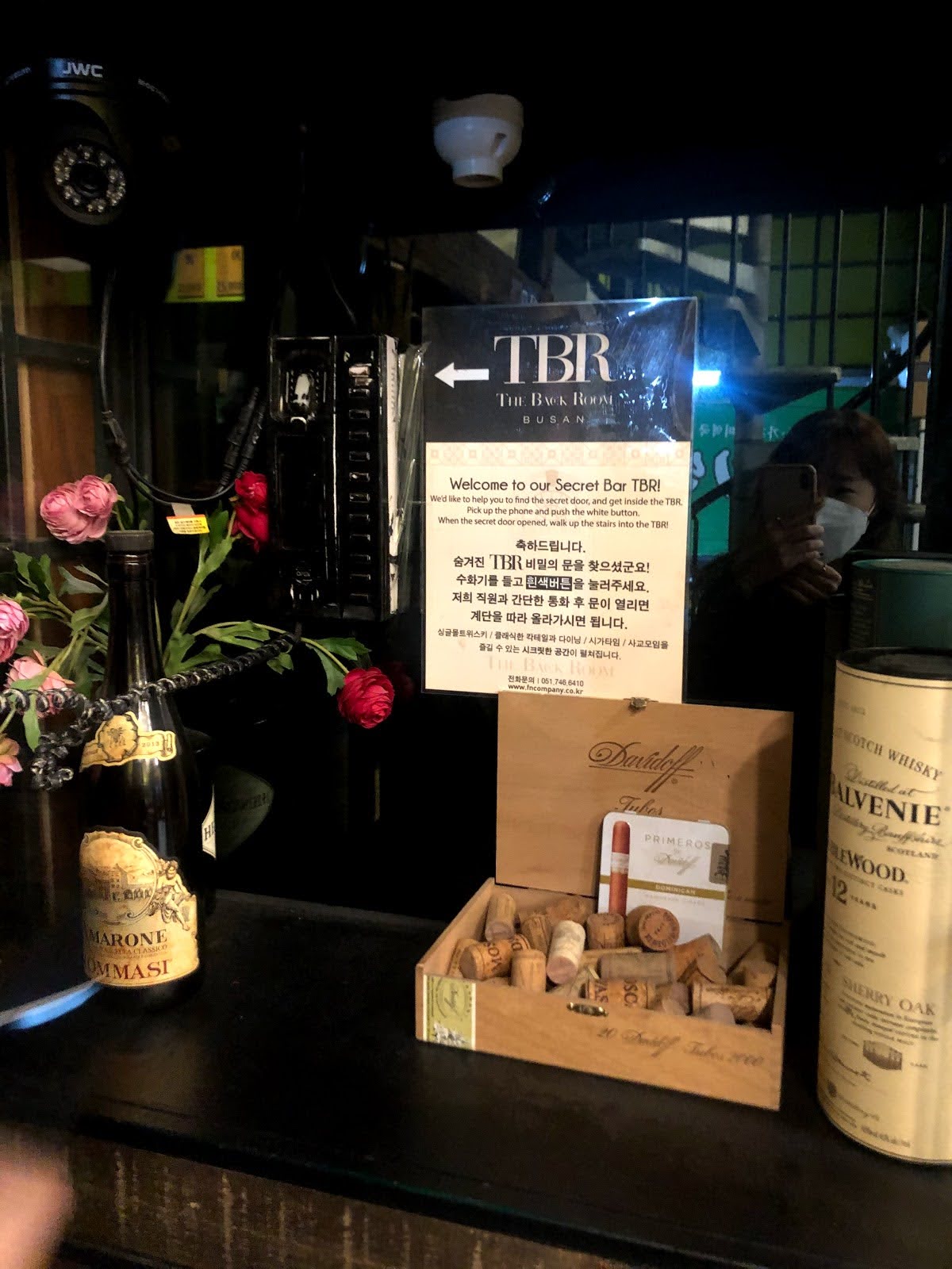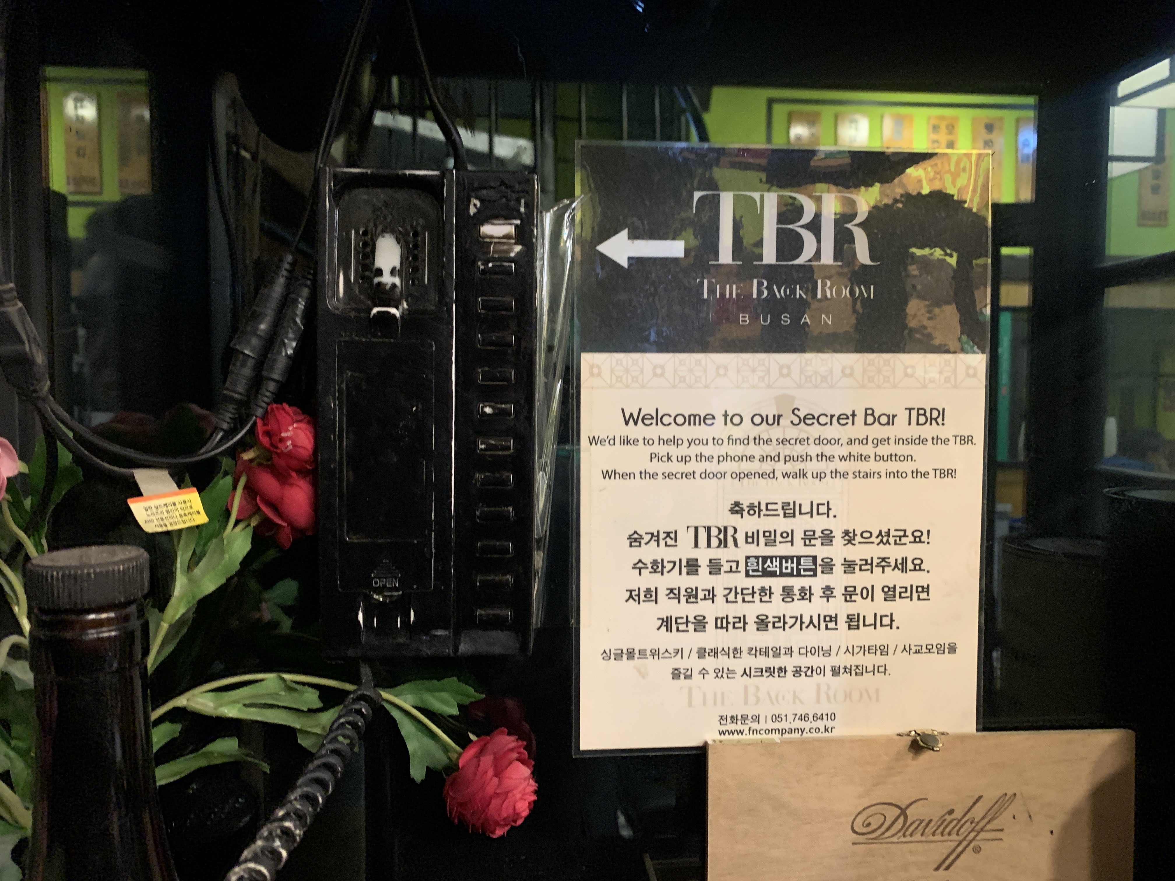위에서 보시는 것처럼 공중전화기를 찾아서 수화기를 들고 하얀색 버튼을 누르면 종업원이 문을 열어줍니다. 그러면 계단을 따라서 올라가면 바가 나옵니다.