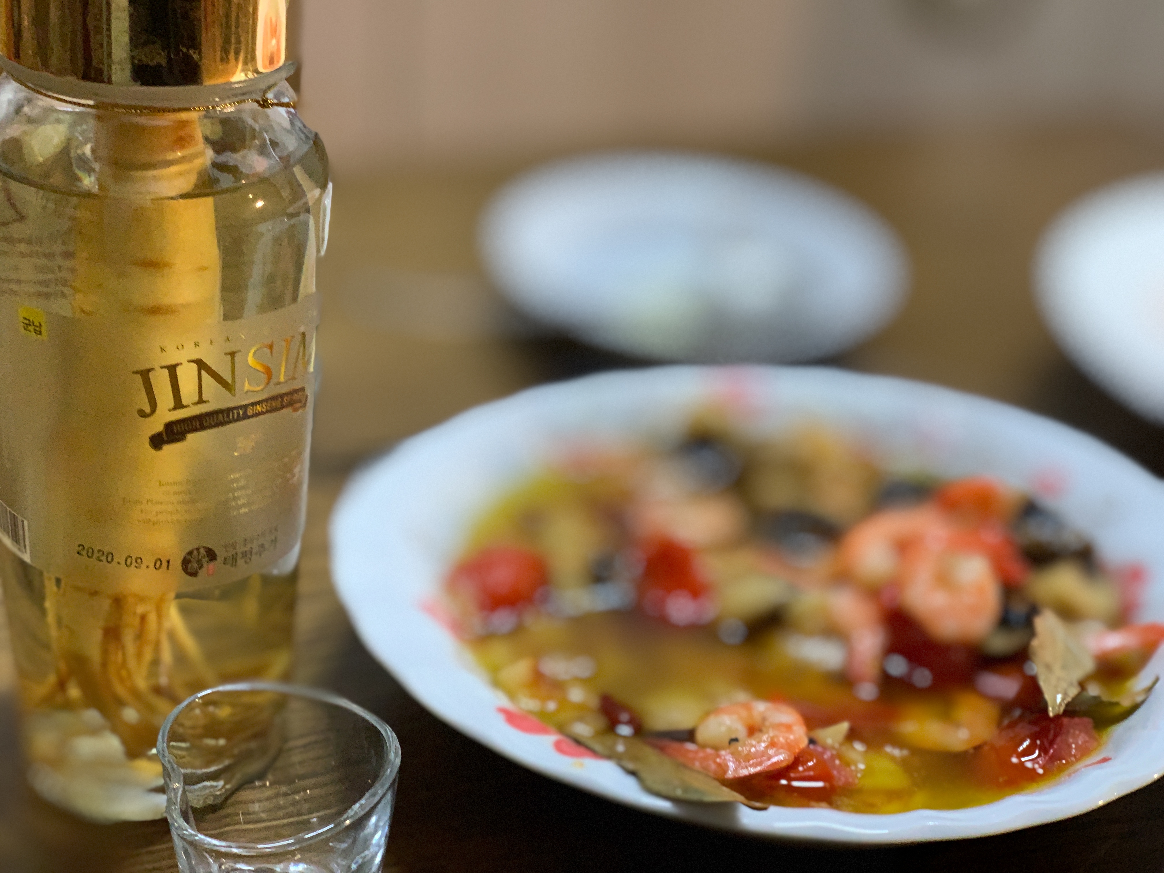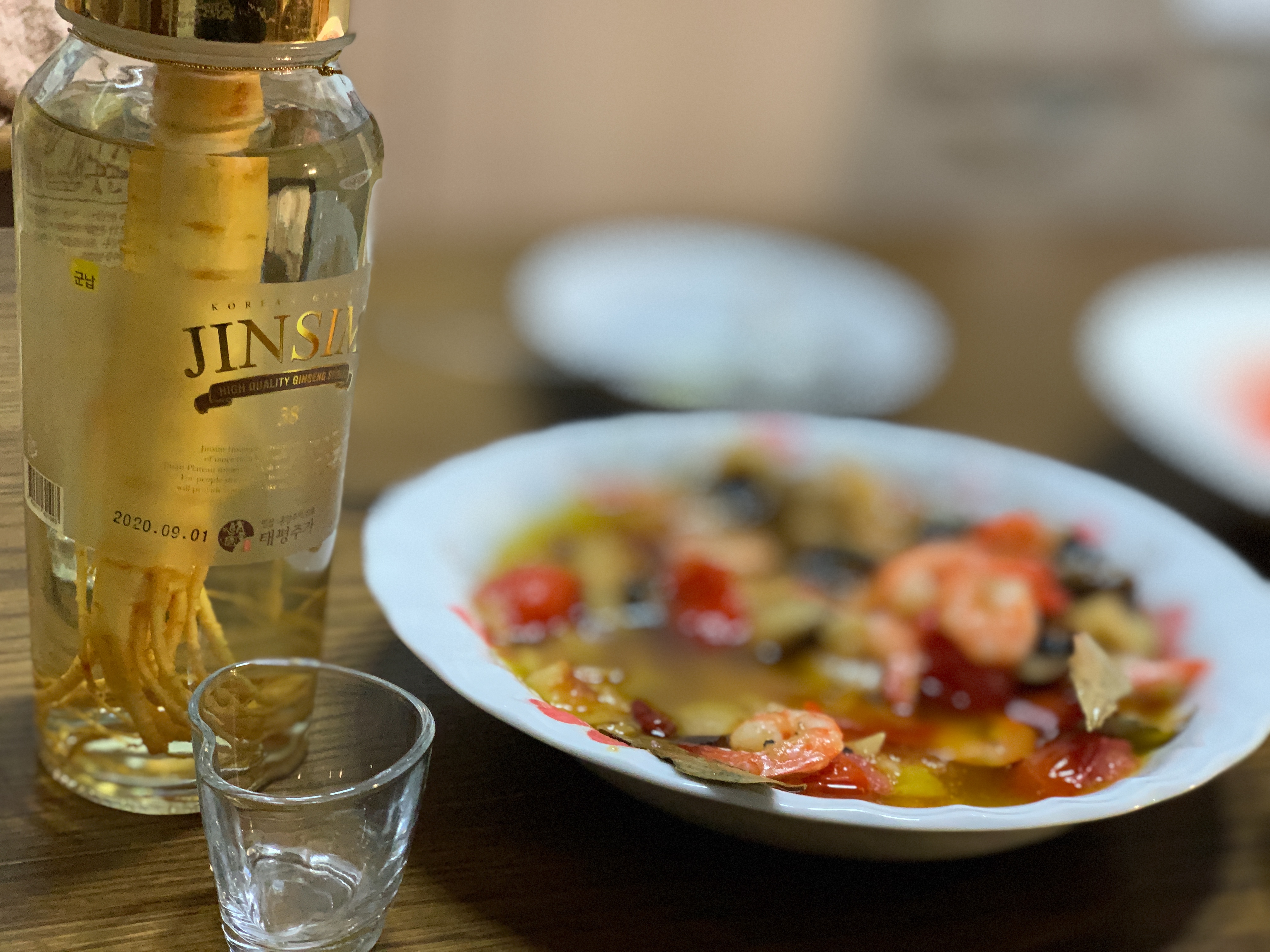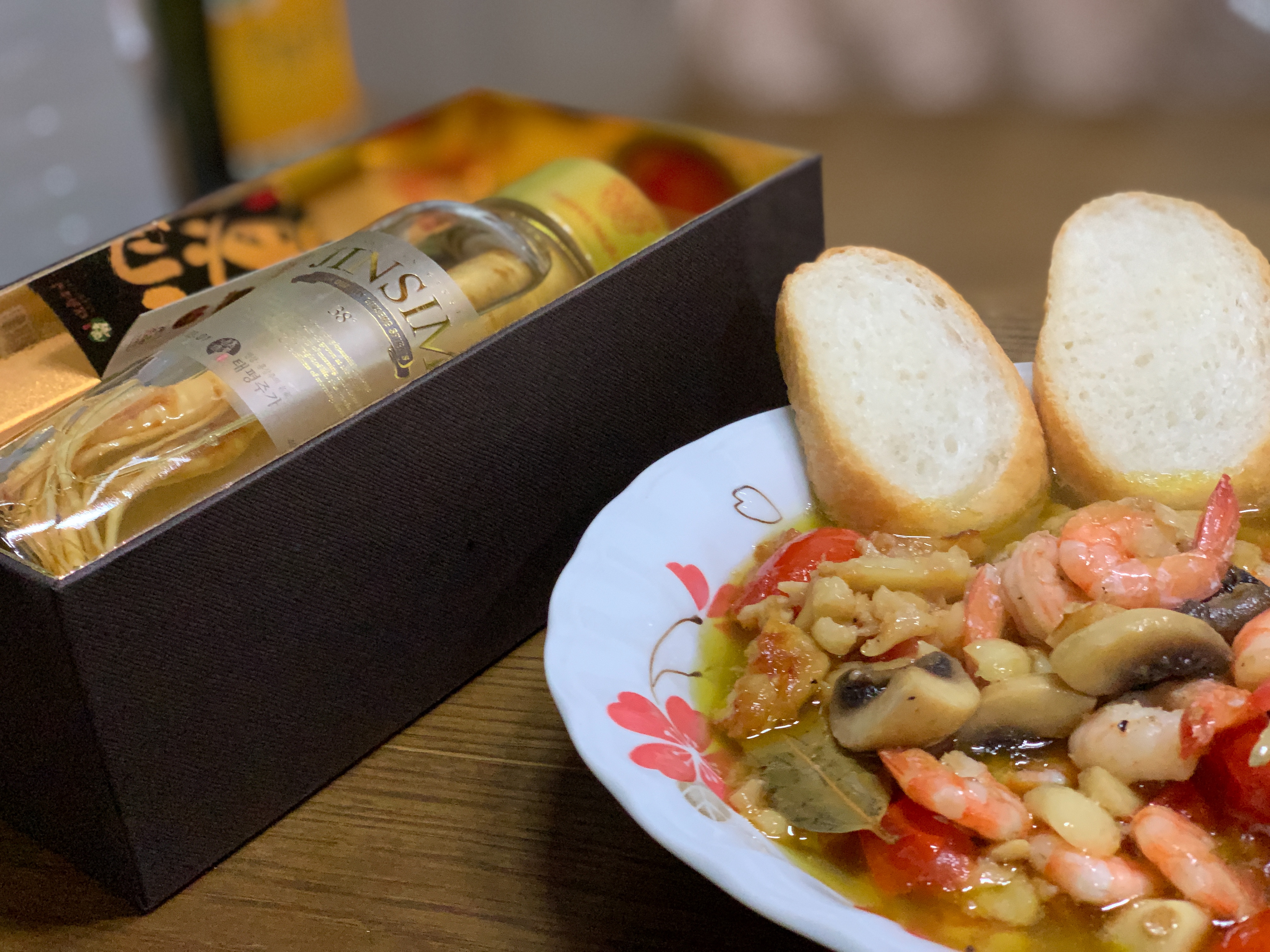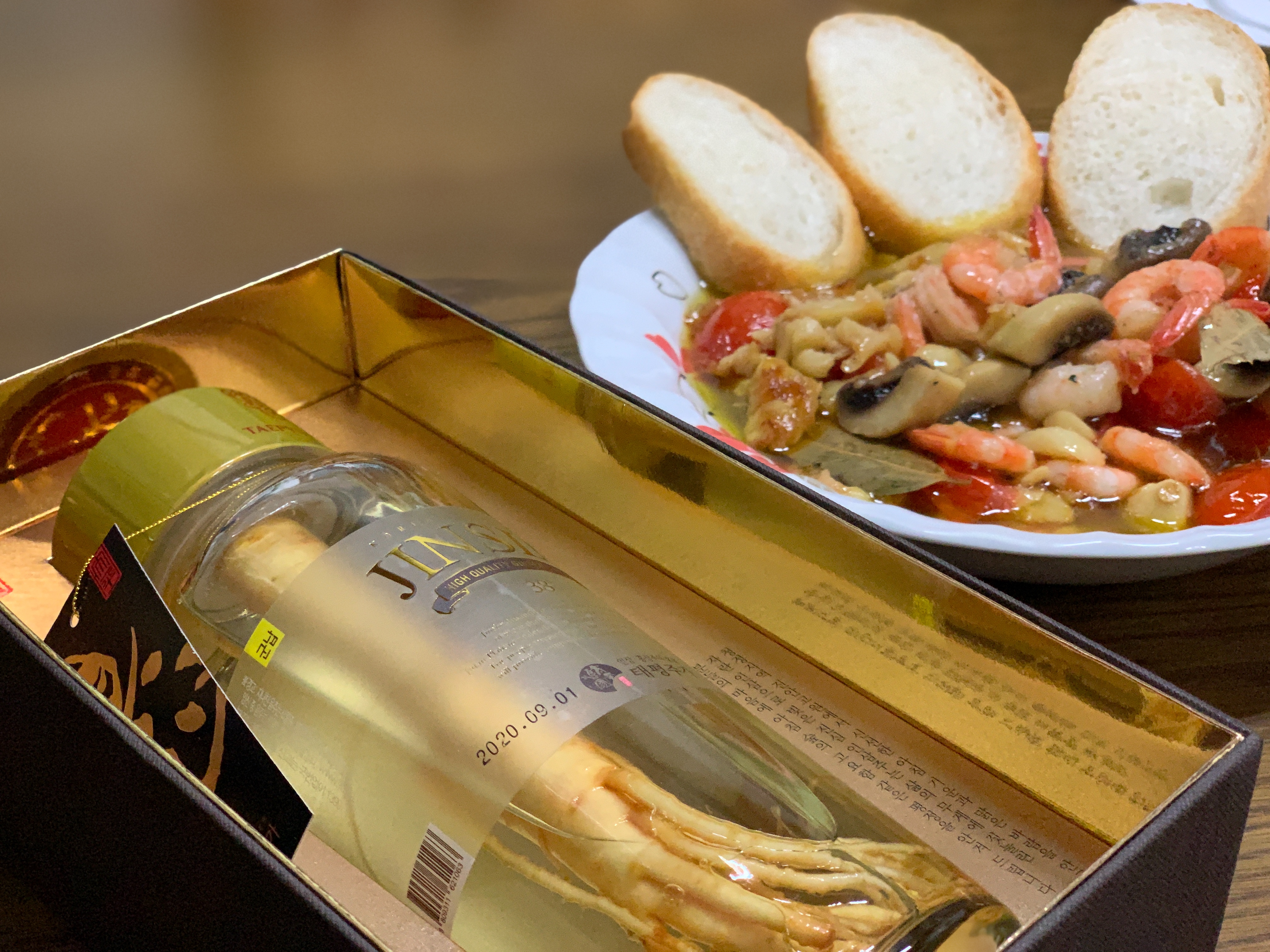 감바스 안주에 인삼주 마시니 슬슬 취기도 오르는 게 최고였습니다.