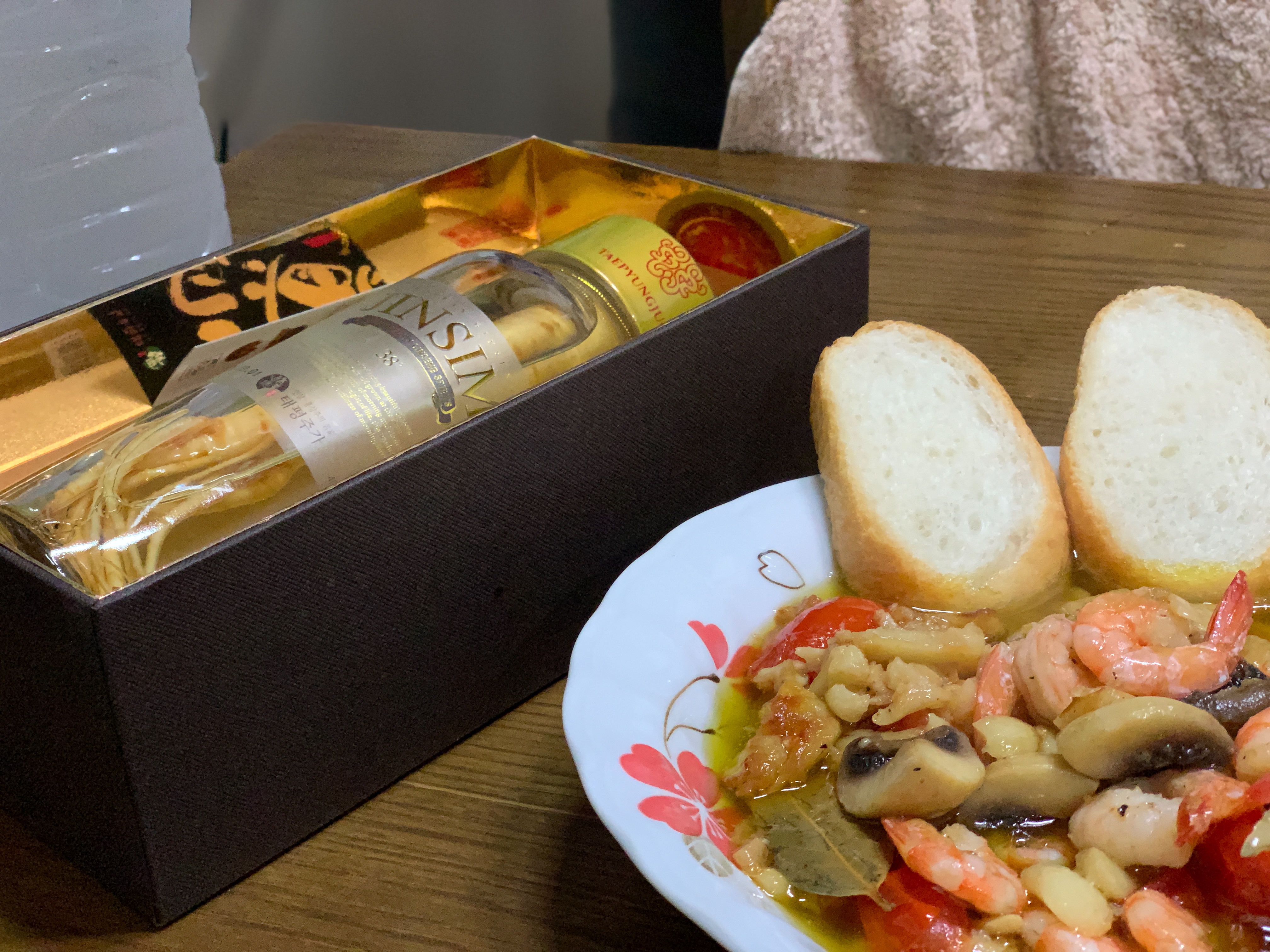 감바스 안주에 인삼주 마시니 슬슬 취기도 오르는 게 최고였습니다.