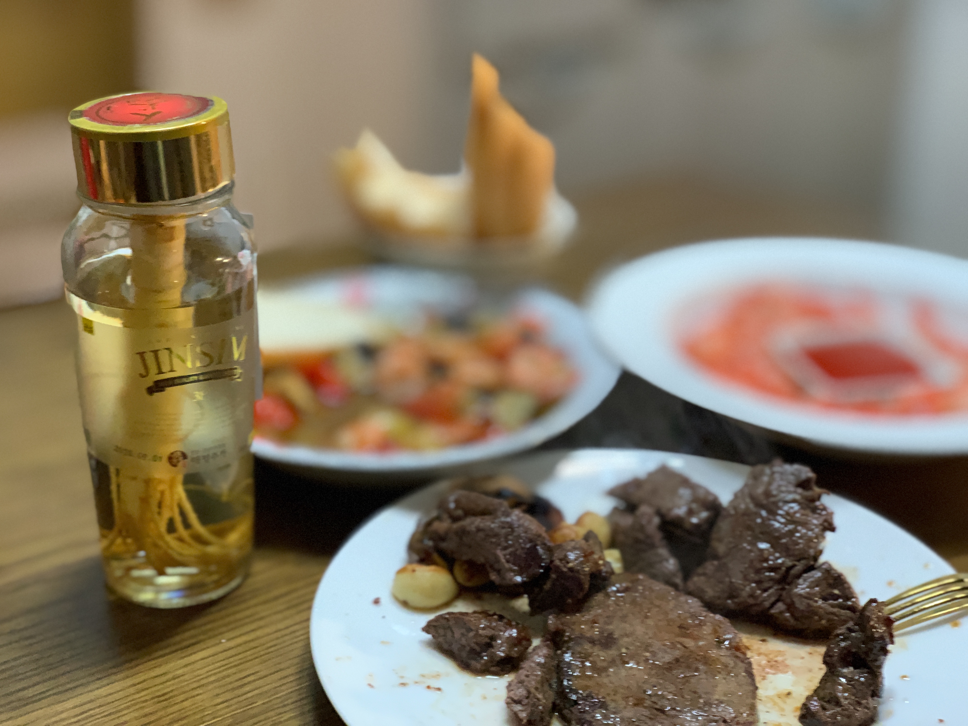 인삼주는 보기보다 도수가 상당히 셌습니다. 한 40도 정도? 위스키 정도의 도수라 저거 하나만 마셔도 충분히 취하더라구요. 저희는 딱 맥주 한 캔씩만 더 따서 마셨습니다.