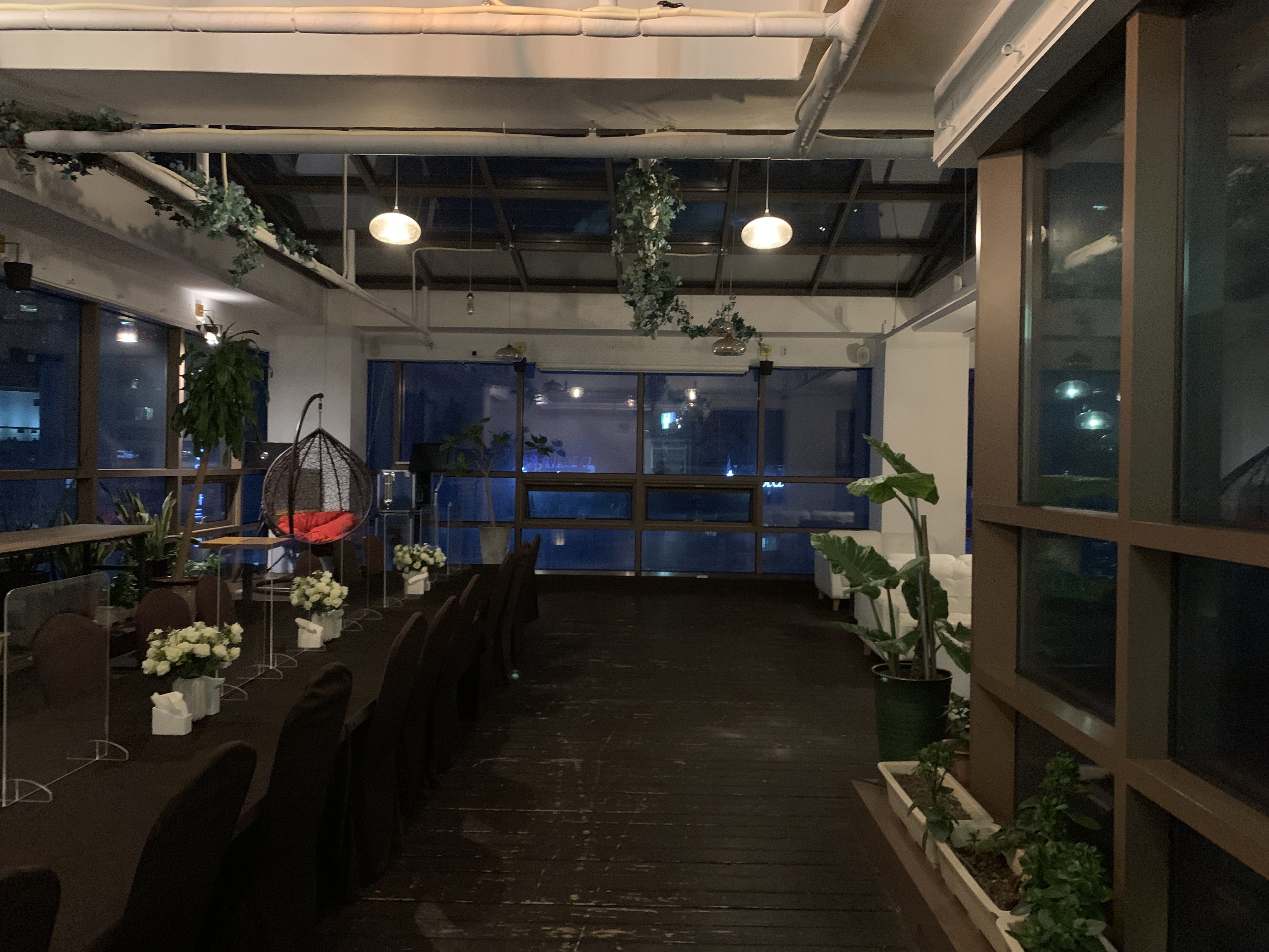음 ... 네 이렇게 생겼습니다. 그냥 휑하네요. 지금이 코로나 시대라서 사람도 없고 하니 관리가 잘 안 돼서 그런지는 모르겠지만 ... 여기 라운지를 조금만 더 이쁘게 꾸미면 어떨까 싶은 아쉬움이 남습니다 ㅠㅠ 여기서 와인파티 같은 거 해도 괜찮을 것 같은데요.