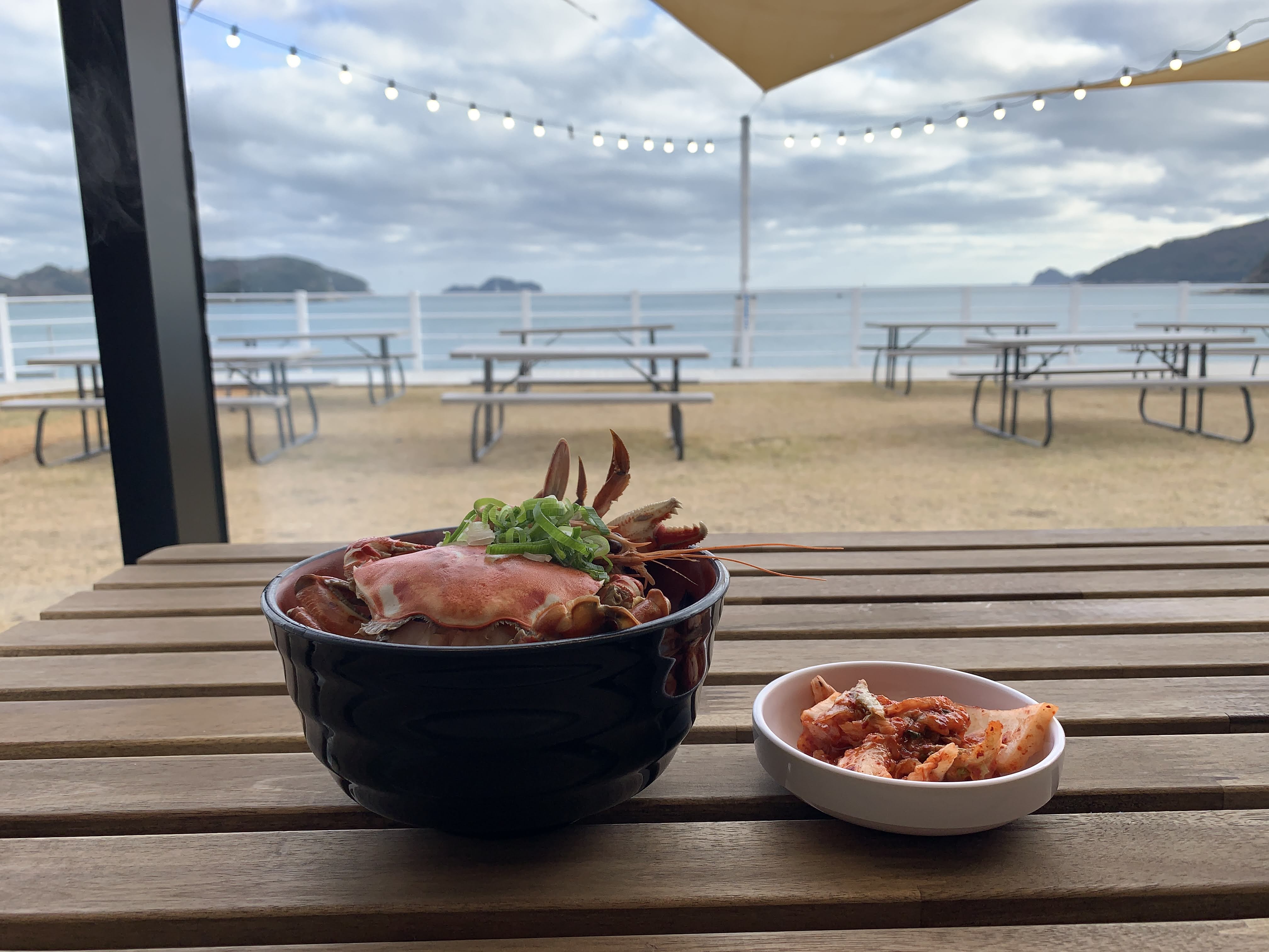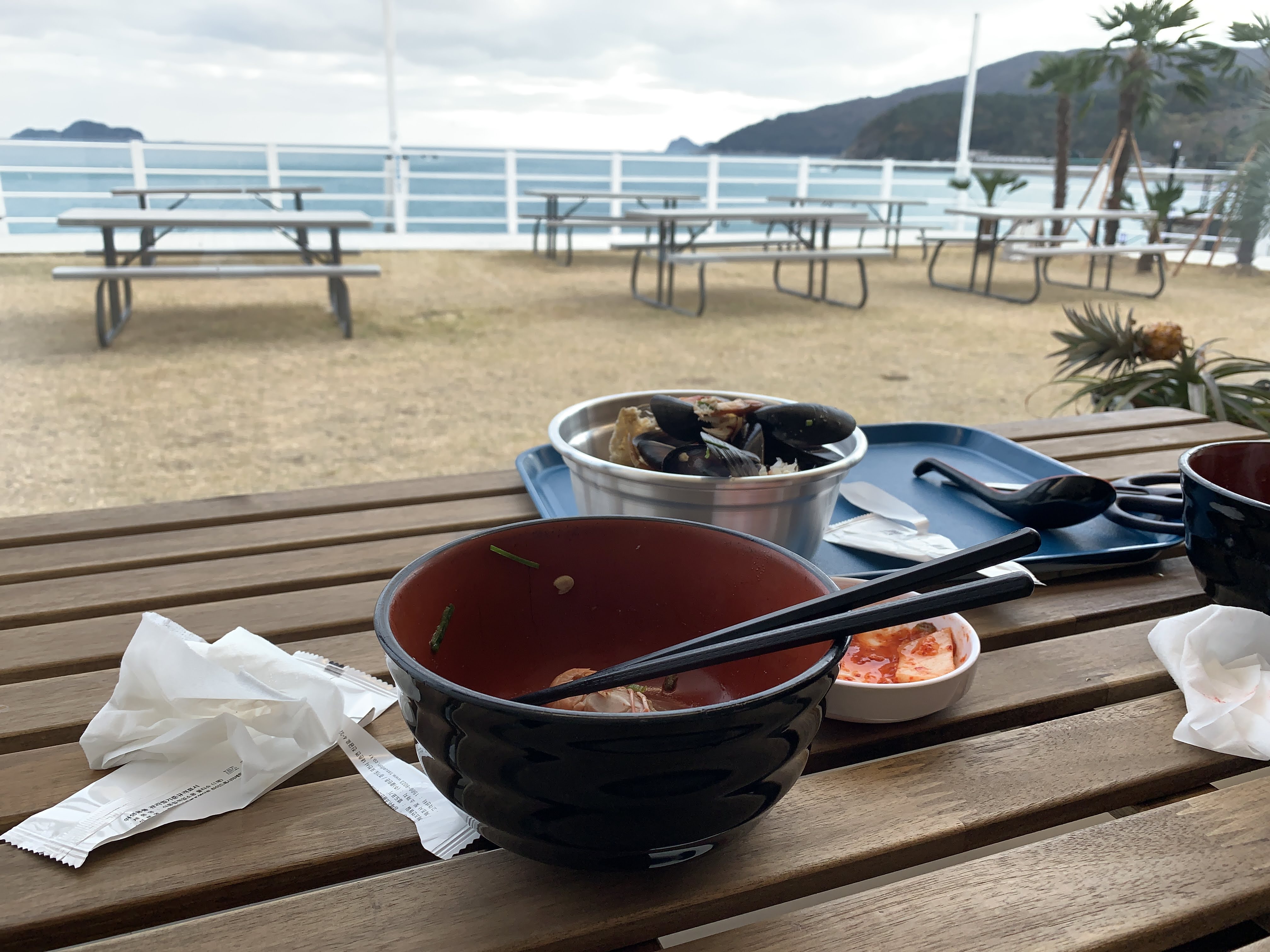 창가의 앉으면 이렇게 바다를 보면서 라면을 먹을 수 있습니다