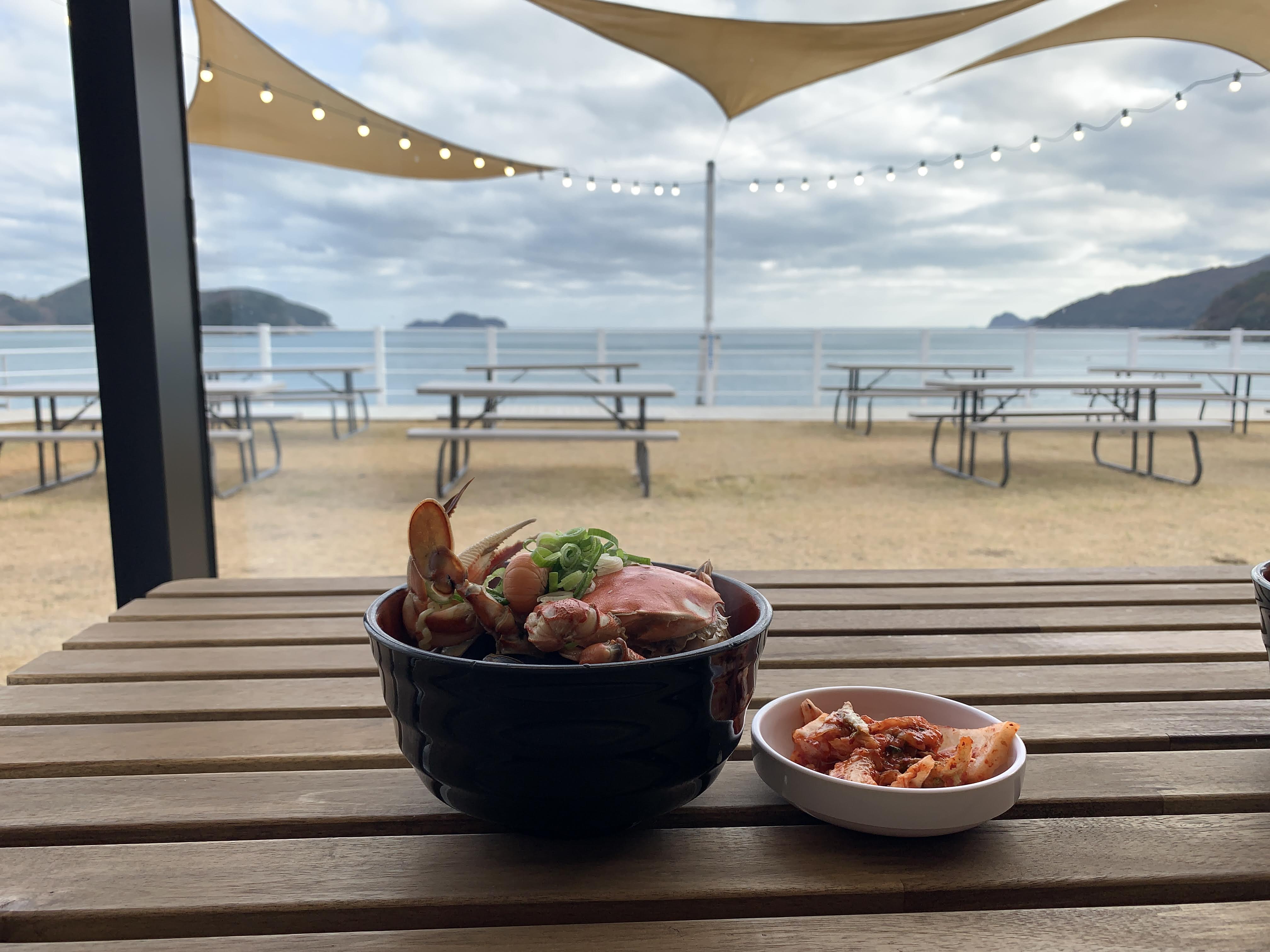 창가의 앉으면 이렇게 바다를 보면서 라면을 먹을 수 있습니다