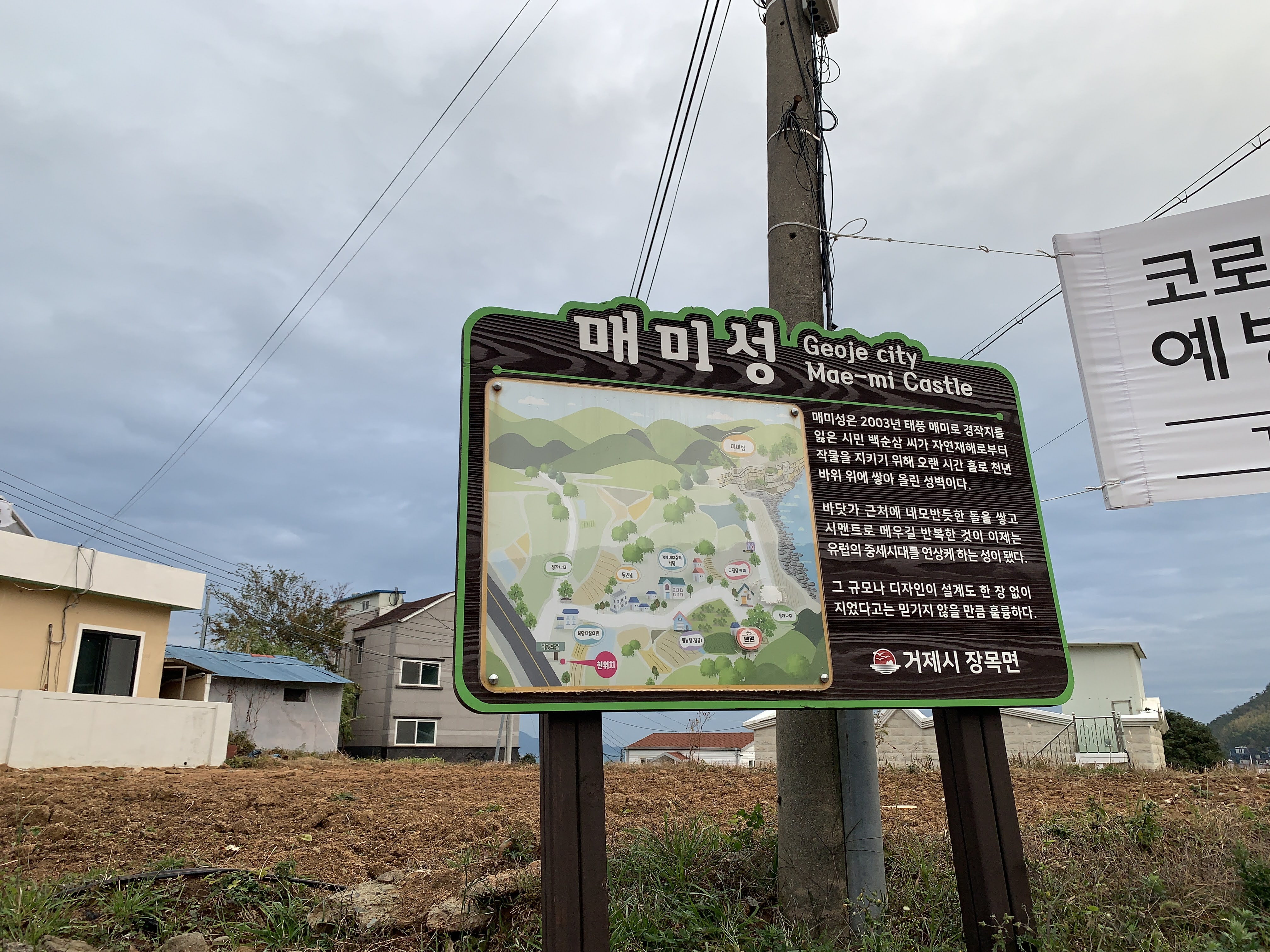 매미성은 예전에 태풍 매미로 피해를 크게 입었던 어떤 아저씨가 앞으로 있을 태풍 피해를 막기 위해 찍기 시작했다고 해요
