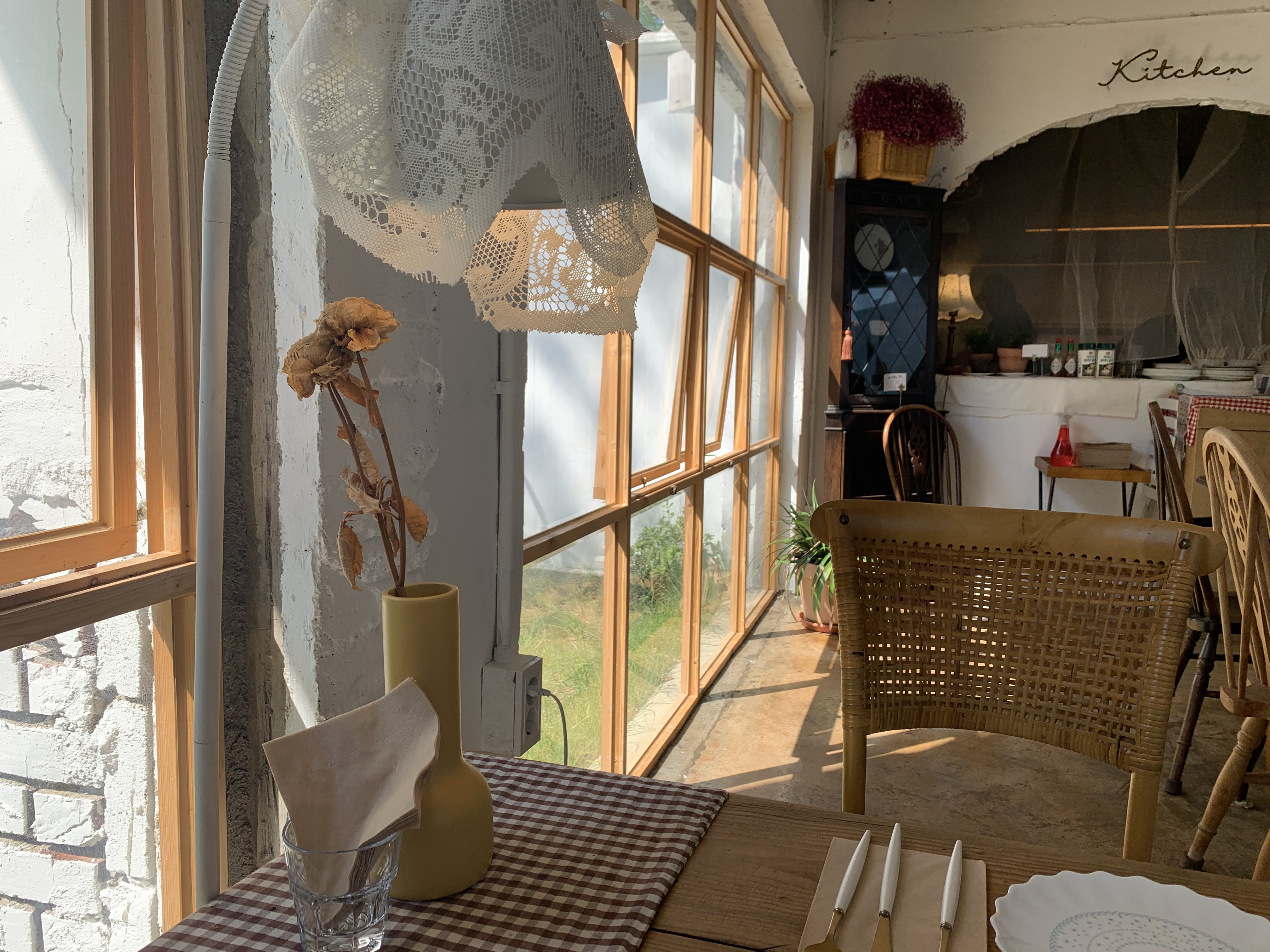 테이블 위에 소소하게 꽃병 하나가 올라와 있는 것도 상당히 이쁩니다