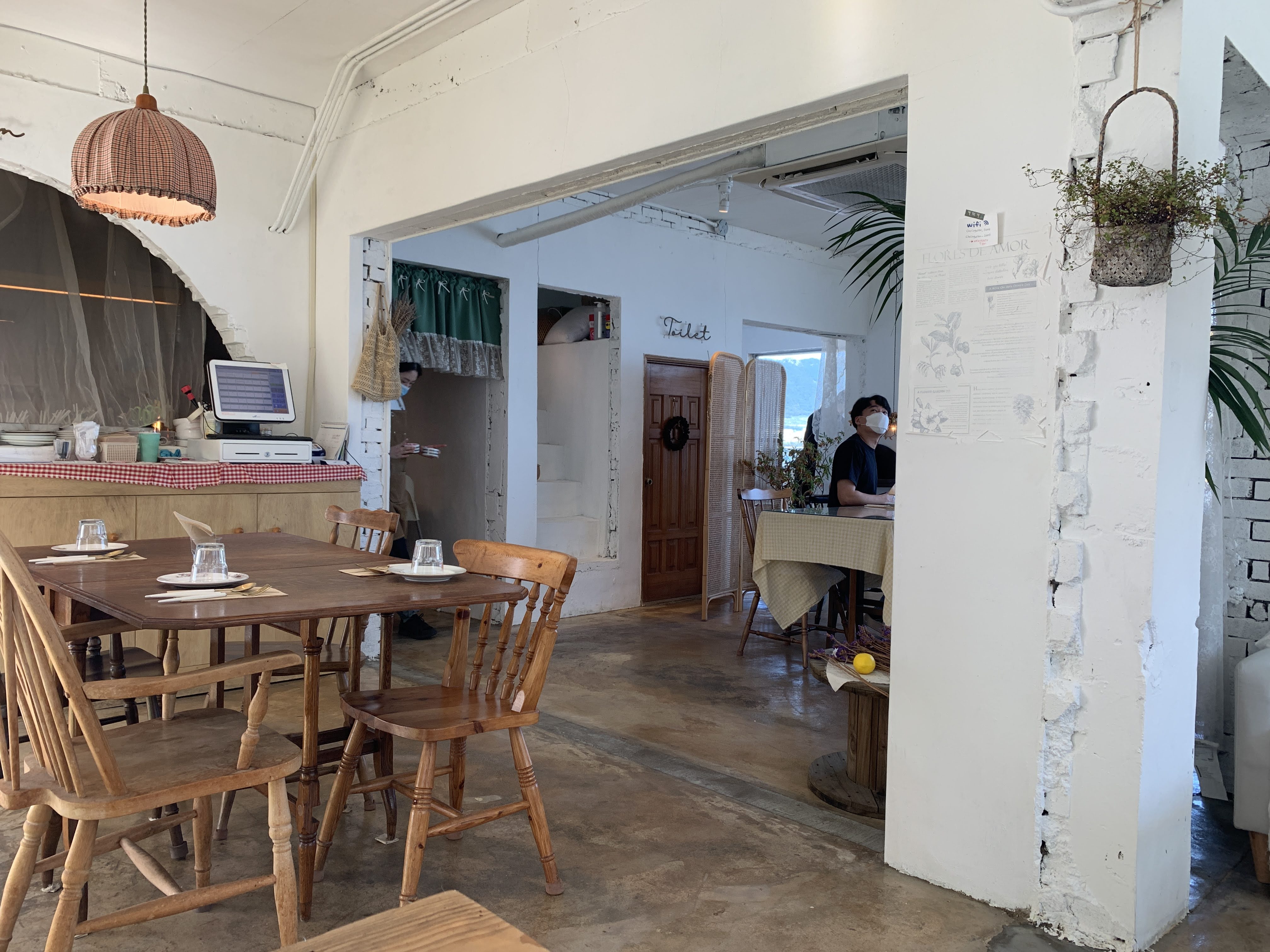 화이트 인테리어에 가구들이나 각종 소품들이 우드로 되어 있는데 분위기가 상당히 따뜻하니 좋습니다