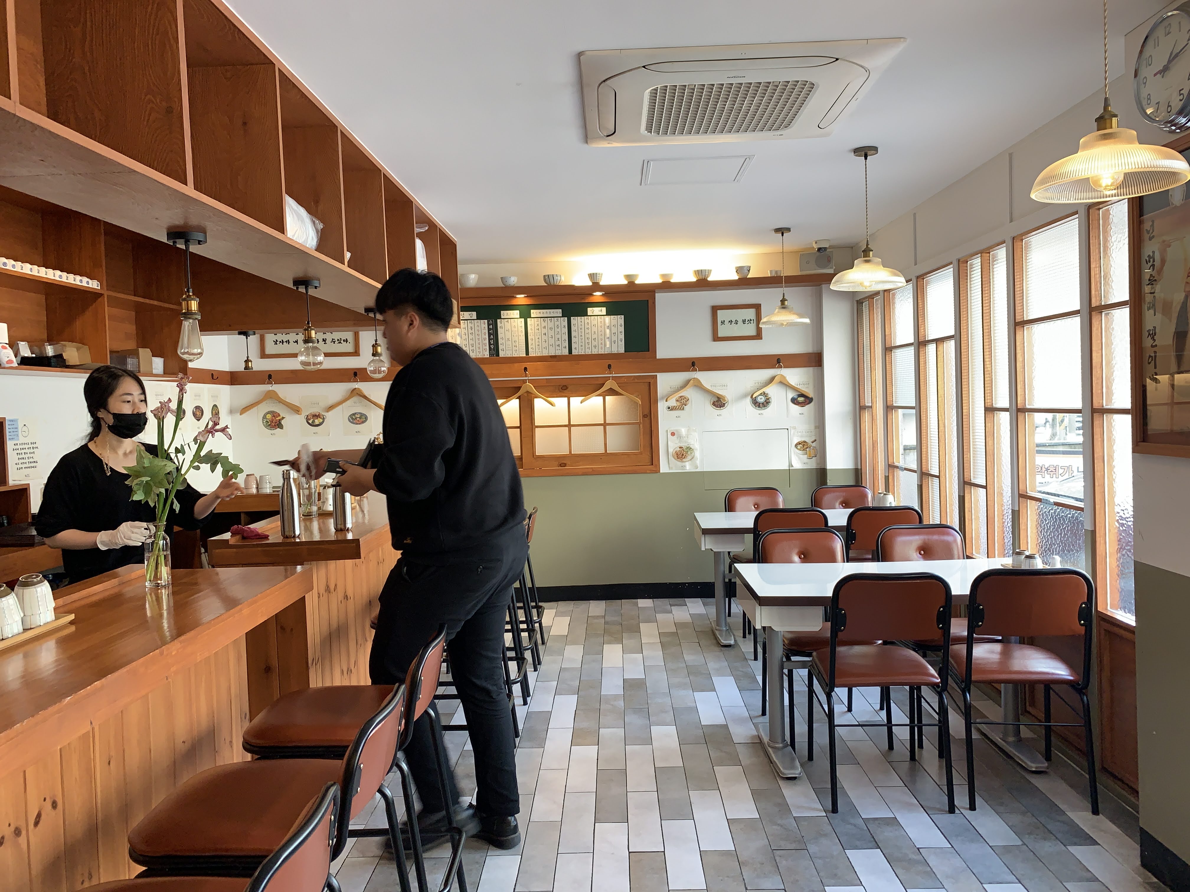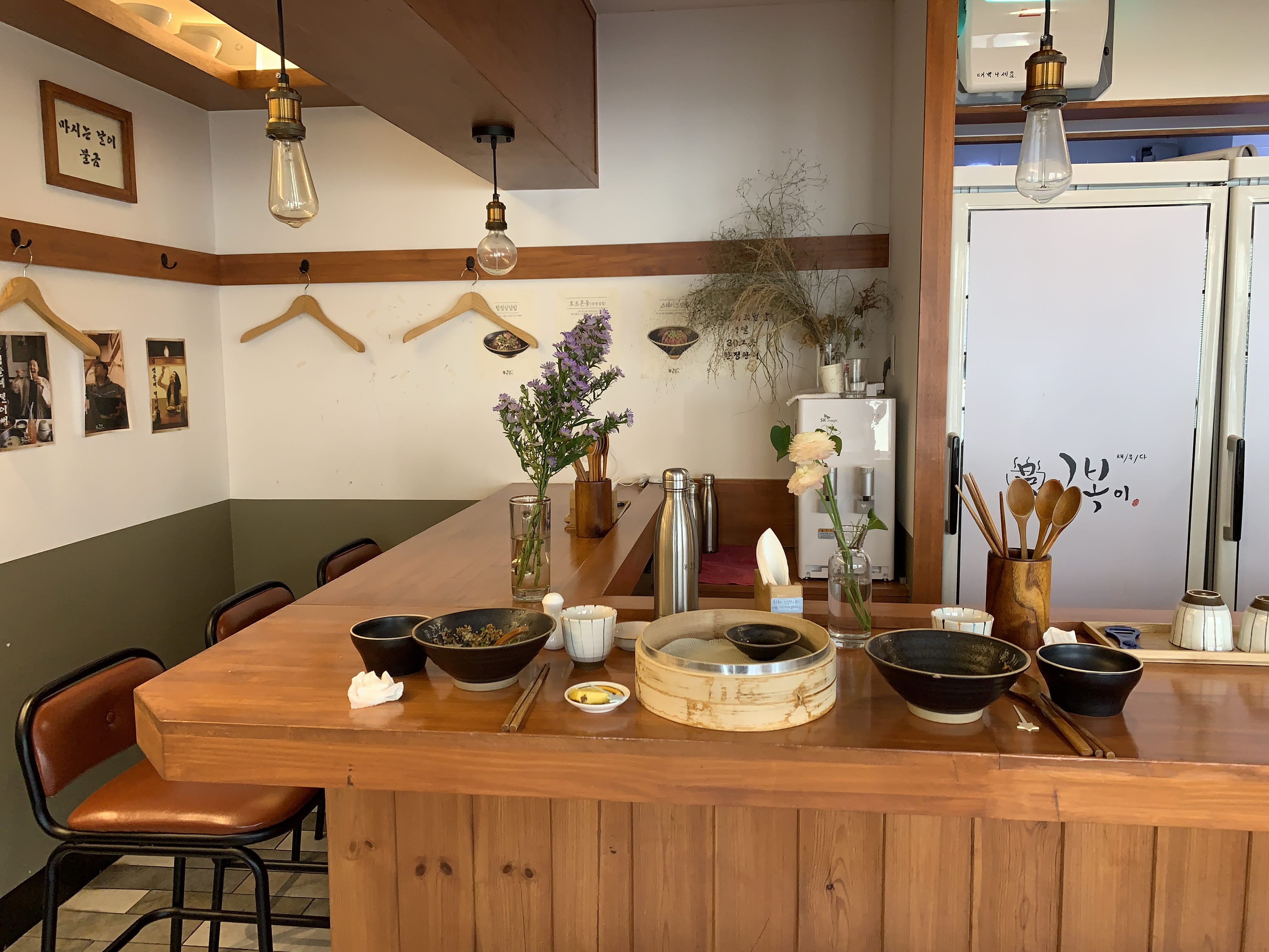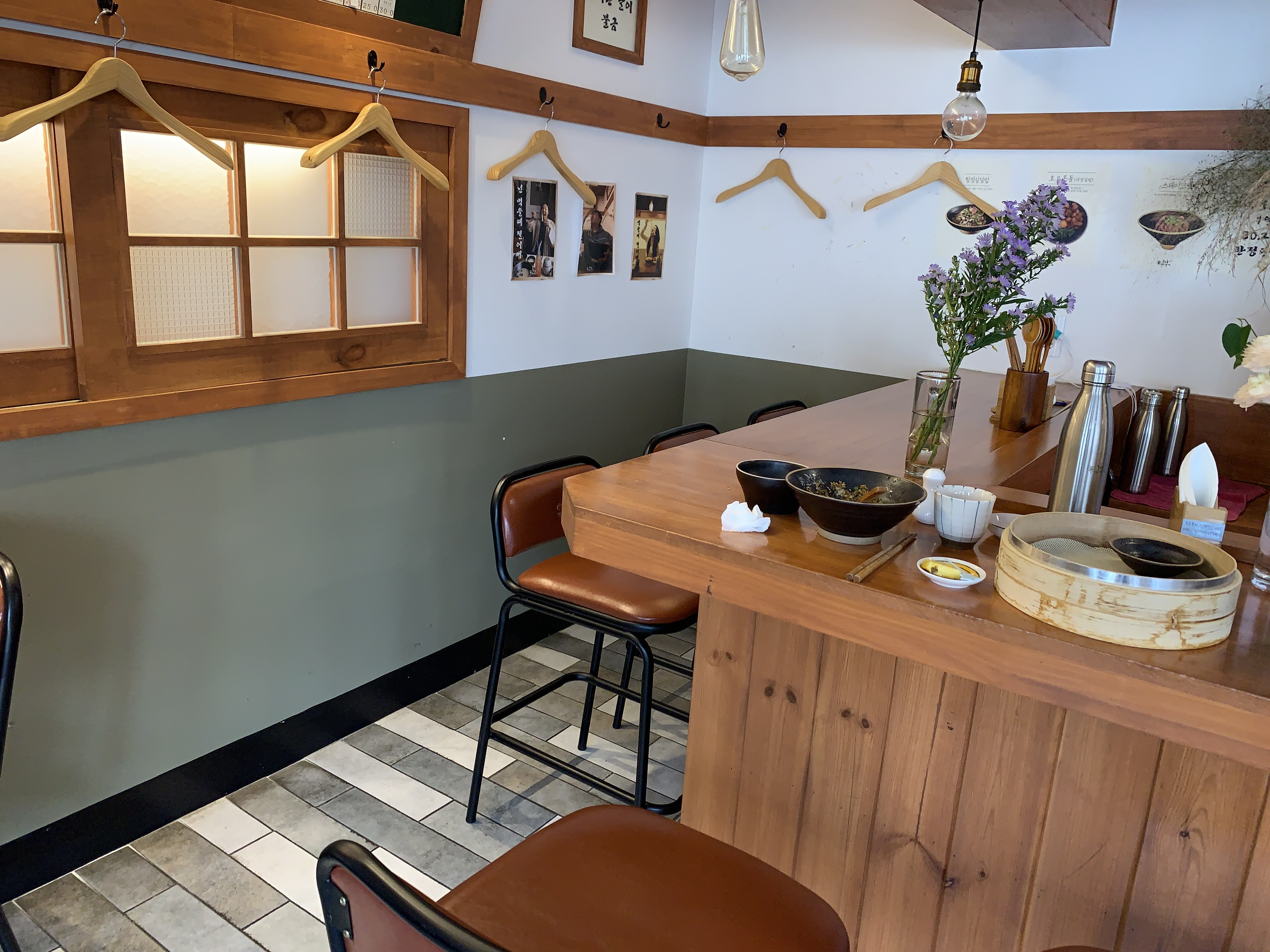 저희는 이 테이블 자리에 앉았습니다. 뭔가 이런 식당에서는 이 선술집 테이블?? 여기를 뭐라고 하죠... 다찌? 암튼 이런 데 앉는 게 좋더라구요 ㅋㅋ
