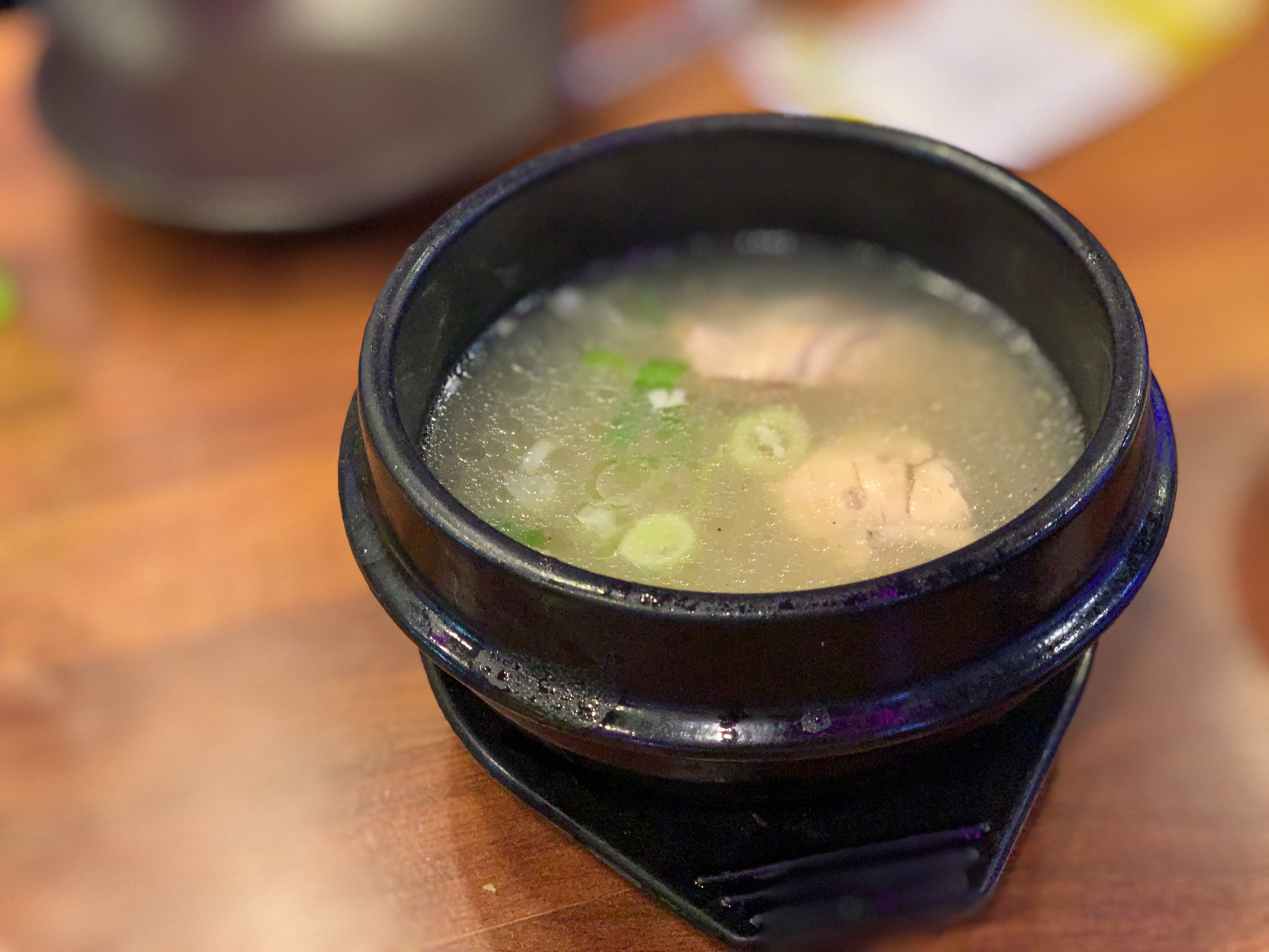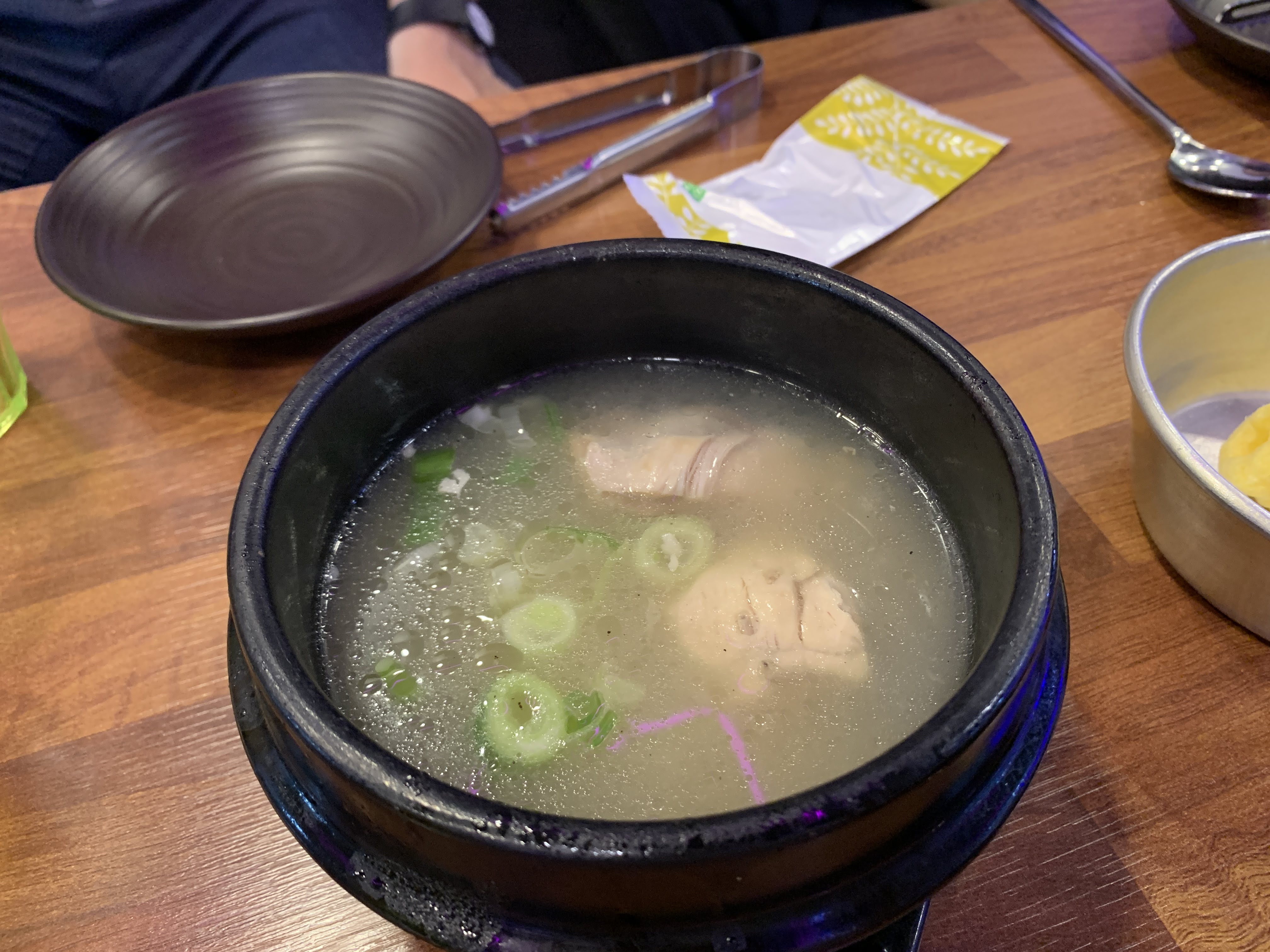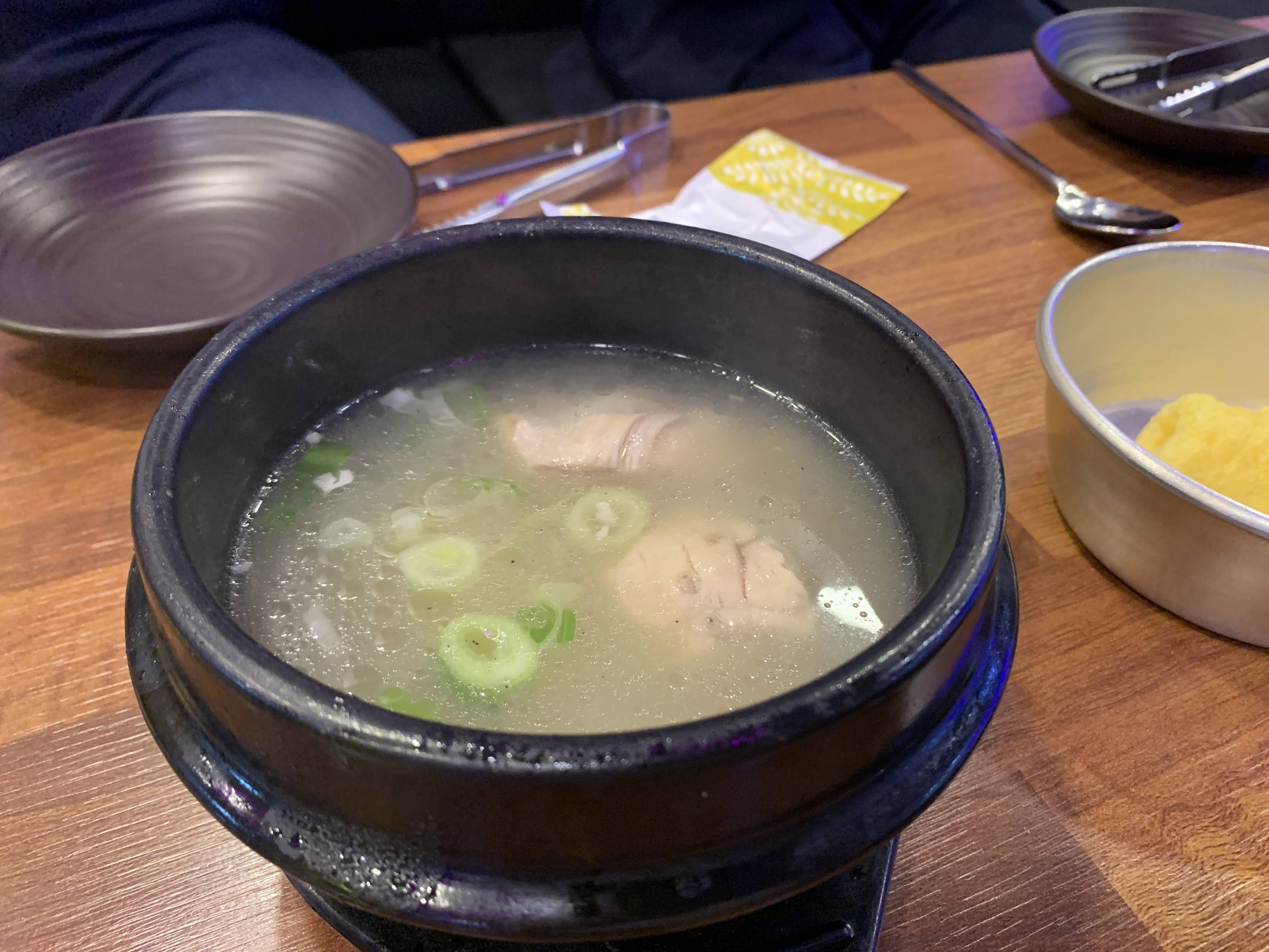 그리고 치킨이 나오기 전에 이 닭 사골국을 주는데 ... 이게 진짜 미쳤다.