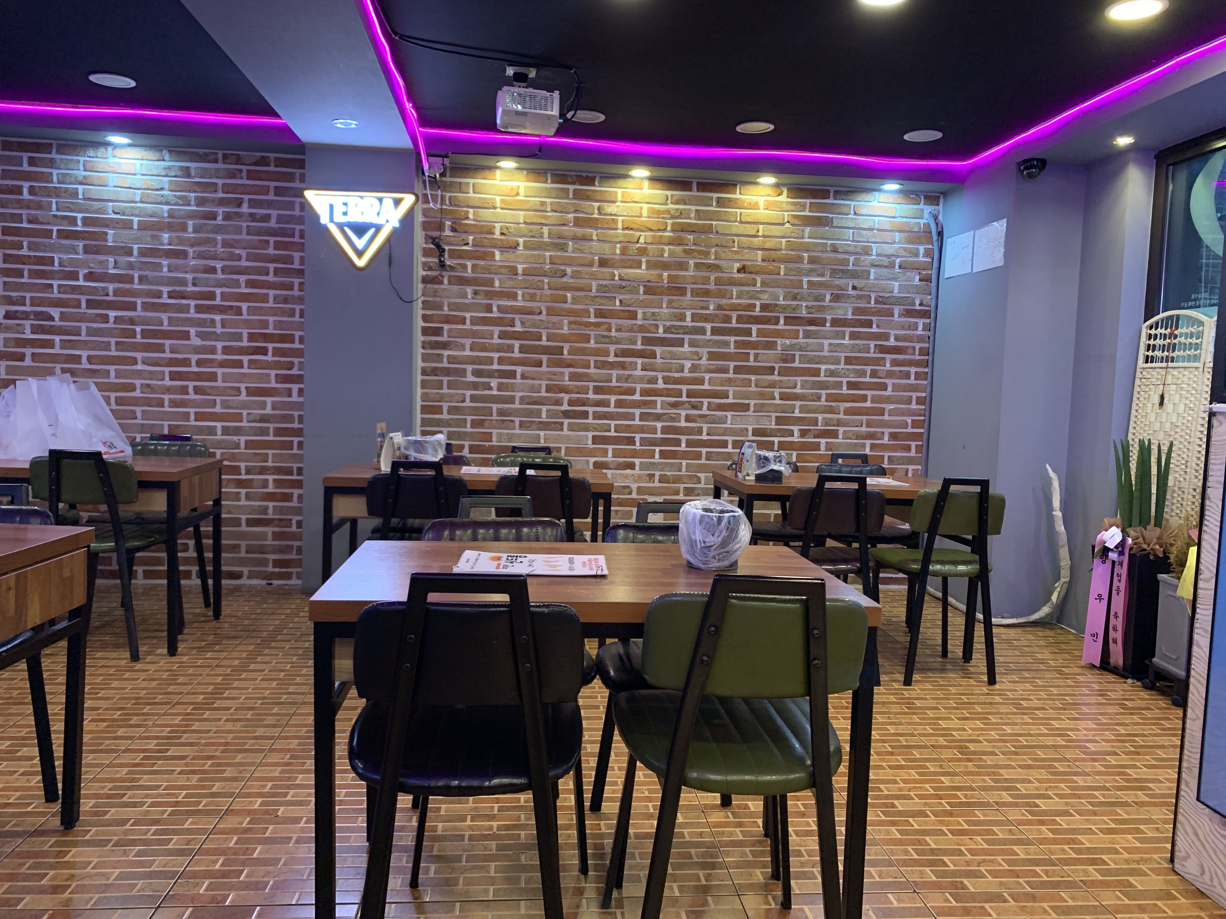 뭐 매장 안은 이런 느낌인데 동네 치킨집 치고는 꽤나 고급스럽다.